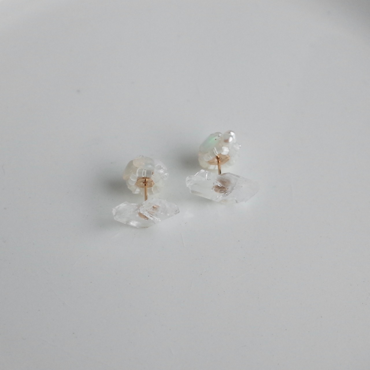 ふぞろい天然石ピアス / ファーデンクォーツ3 / オパールキャッチ / 14kgf