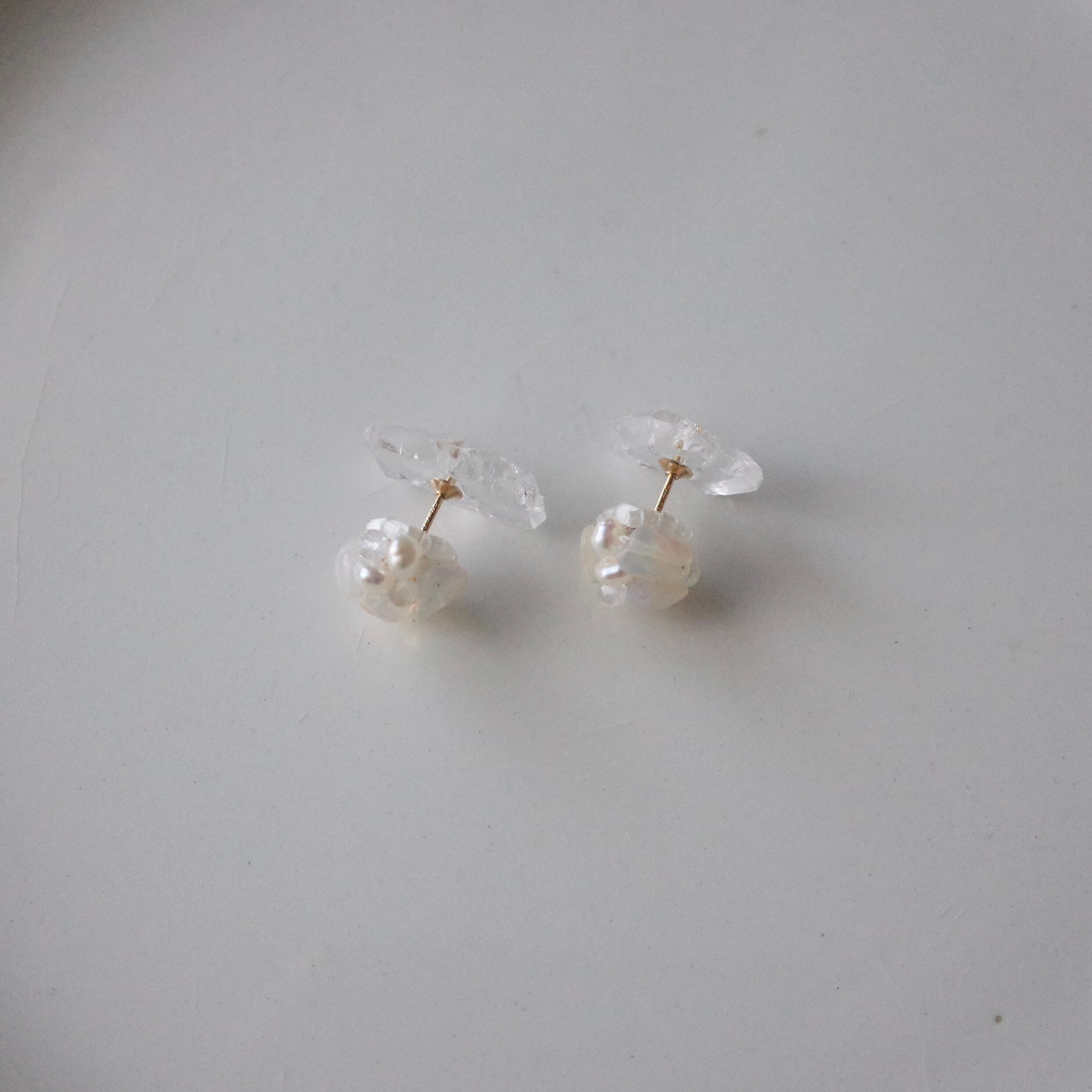 ドイツ語で『糸』を意味するファーデンクォーツの原石をピアスに仕上げました。