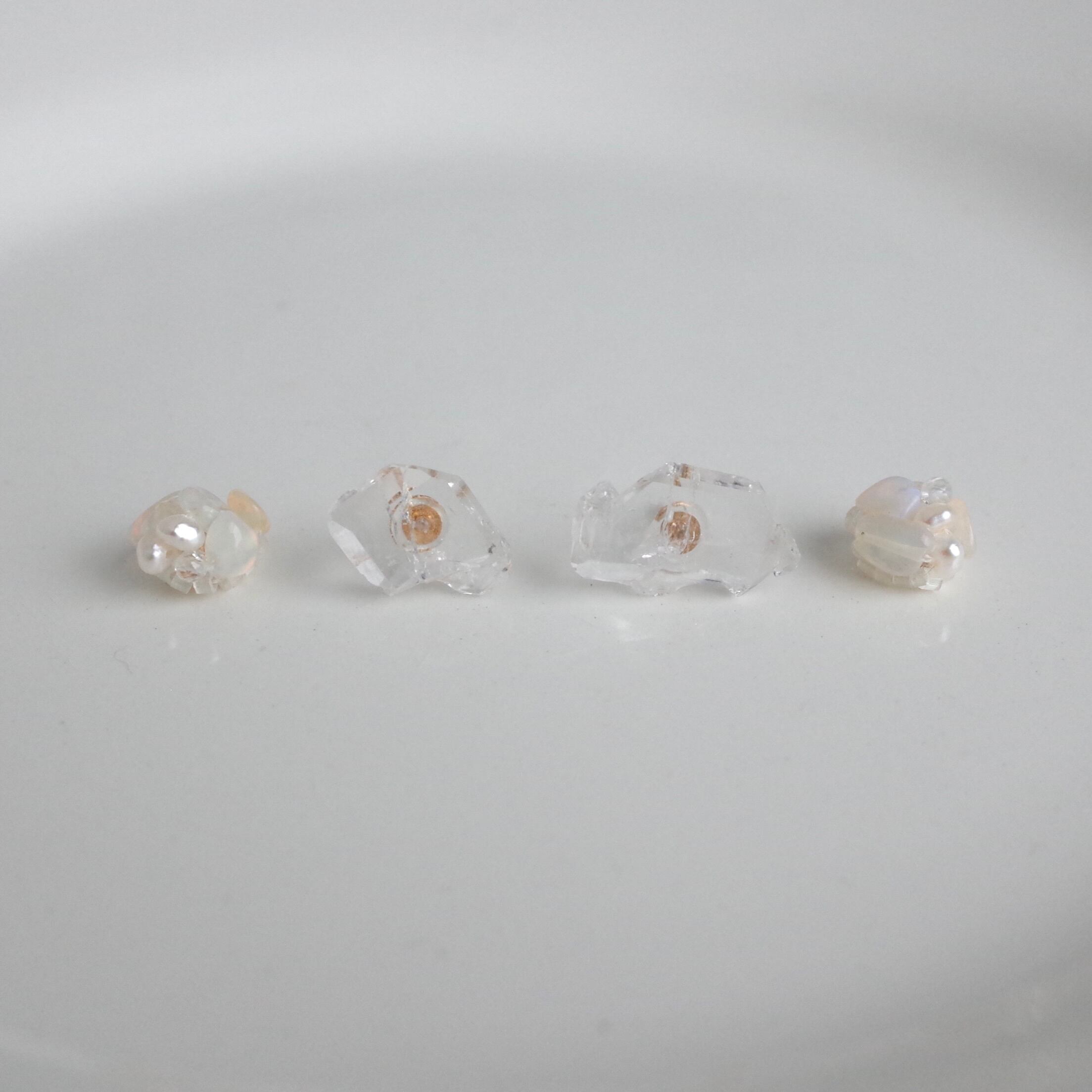 キャッチは編んで作成しているため、キャッチの穴以外にピアスの芯が入る場合があります。
