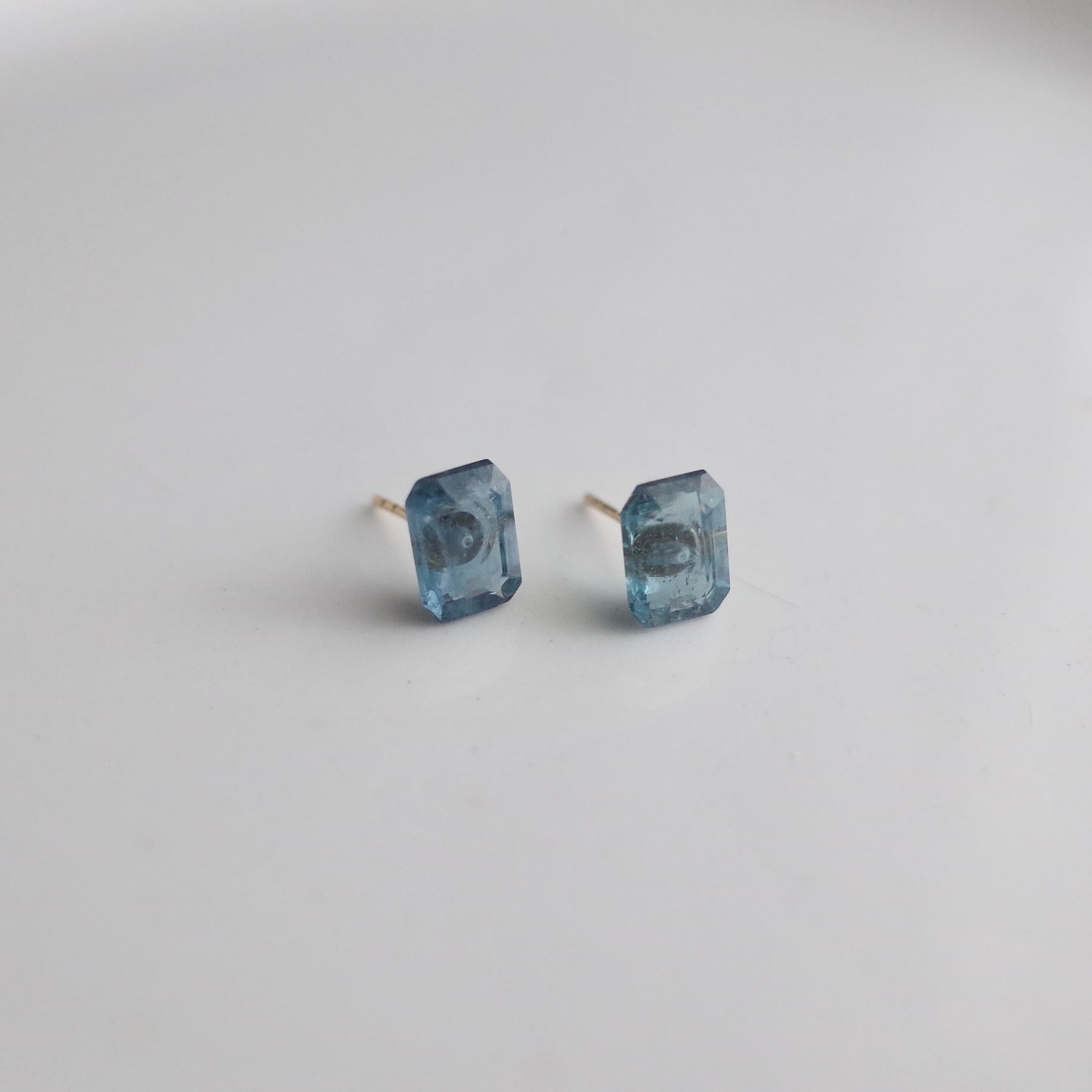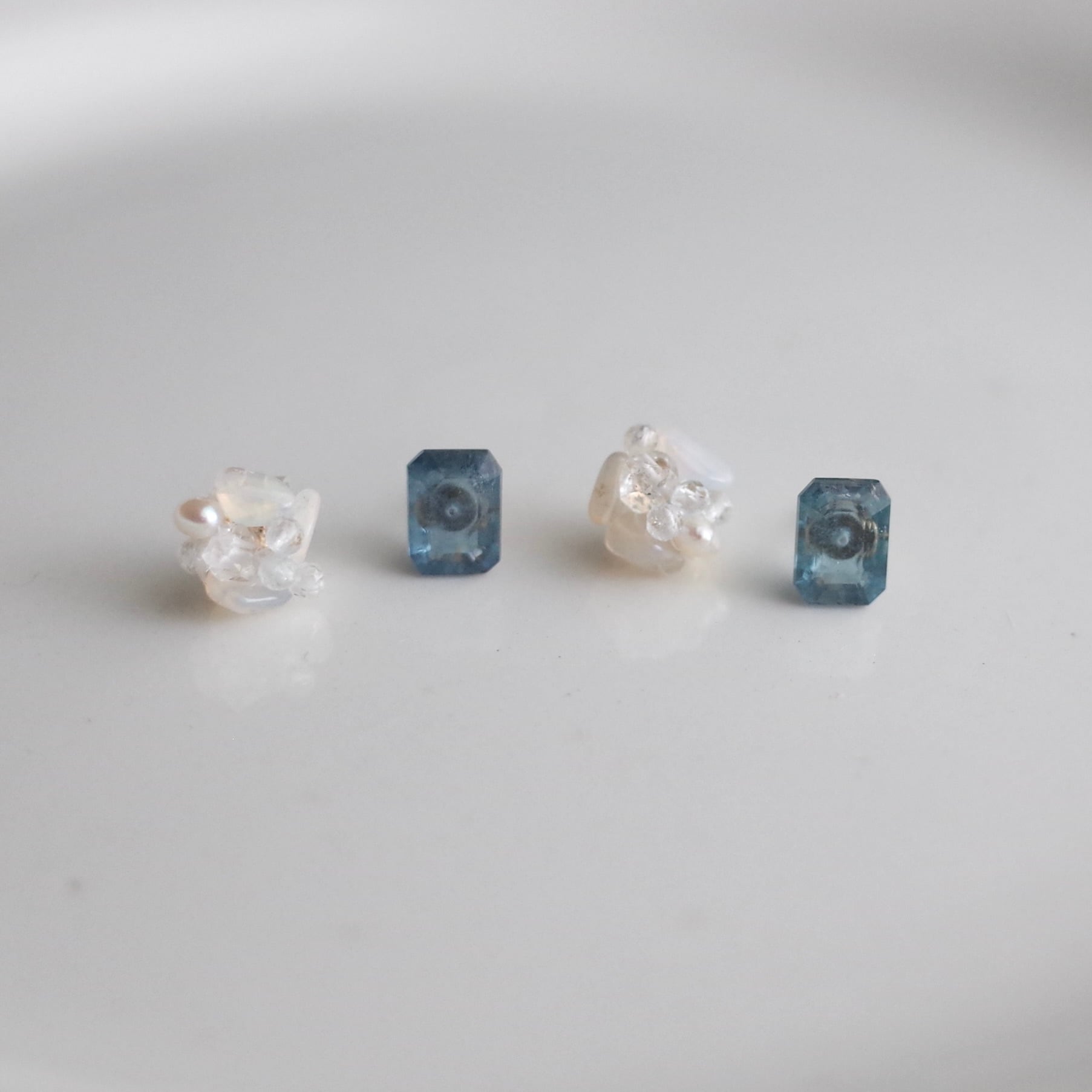 深いインディゴブルーの中に、静かにたたずむようなカイヤナイトをピアスに仕上げました。