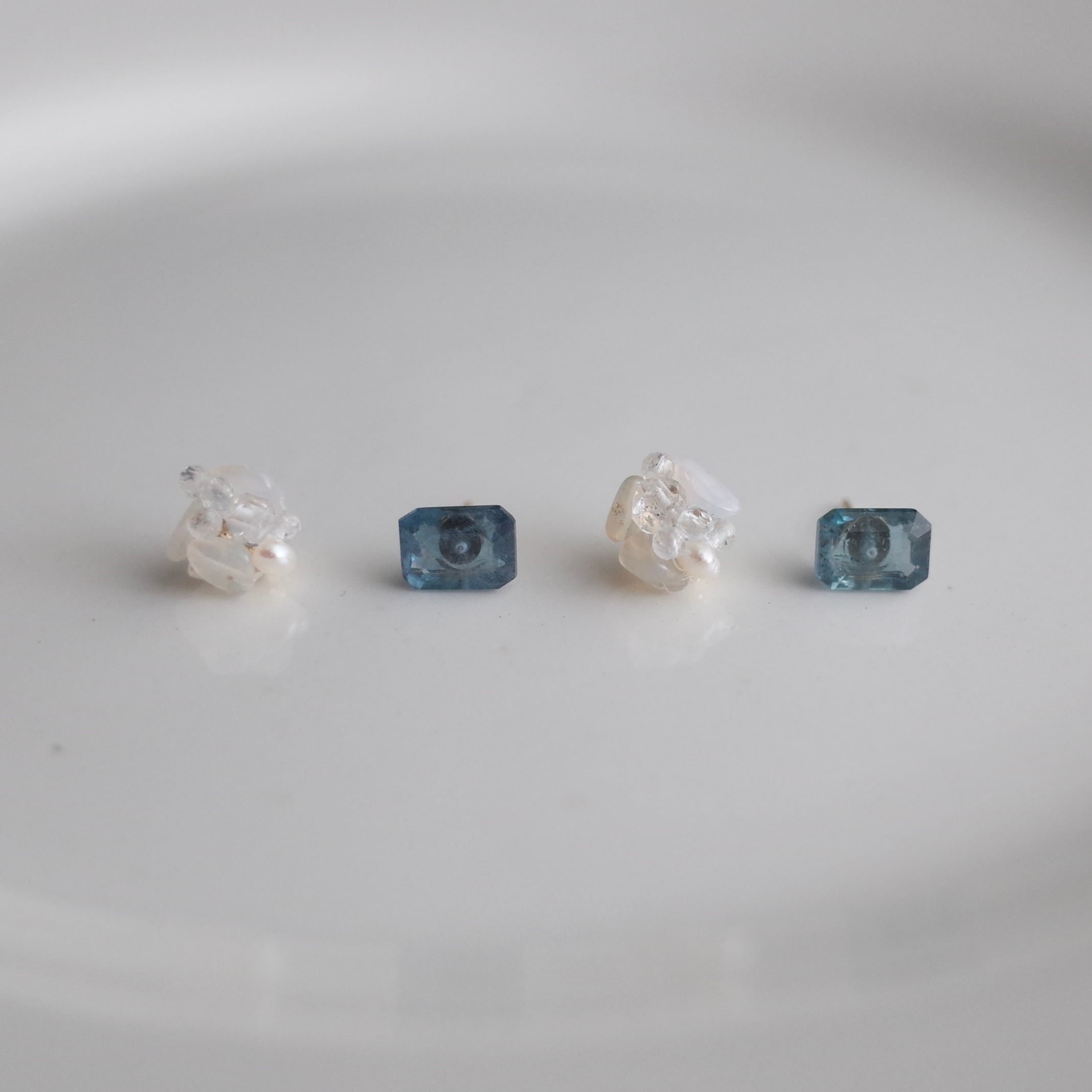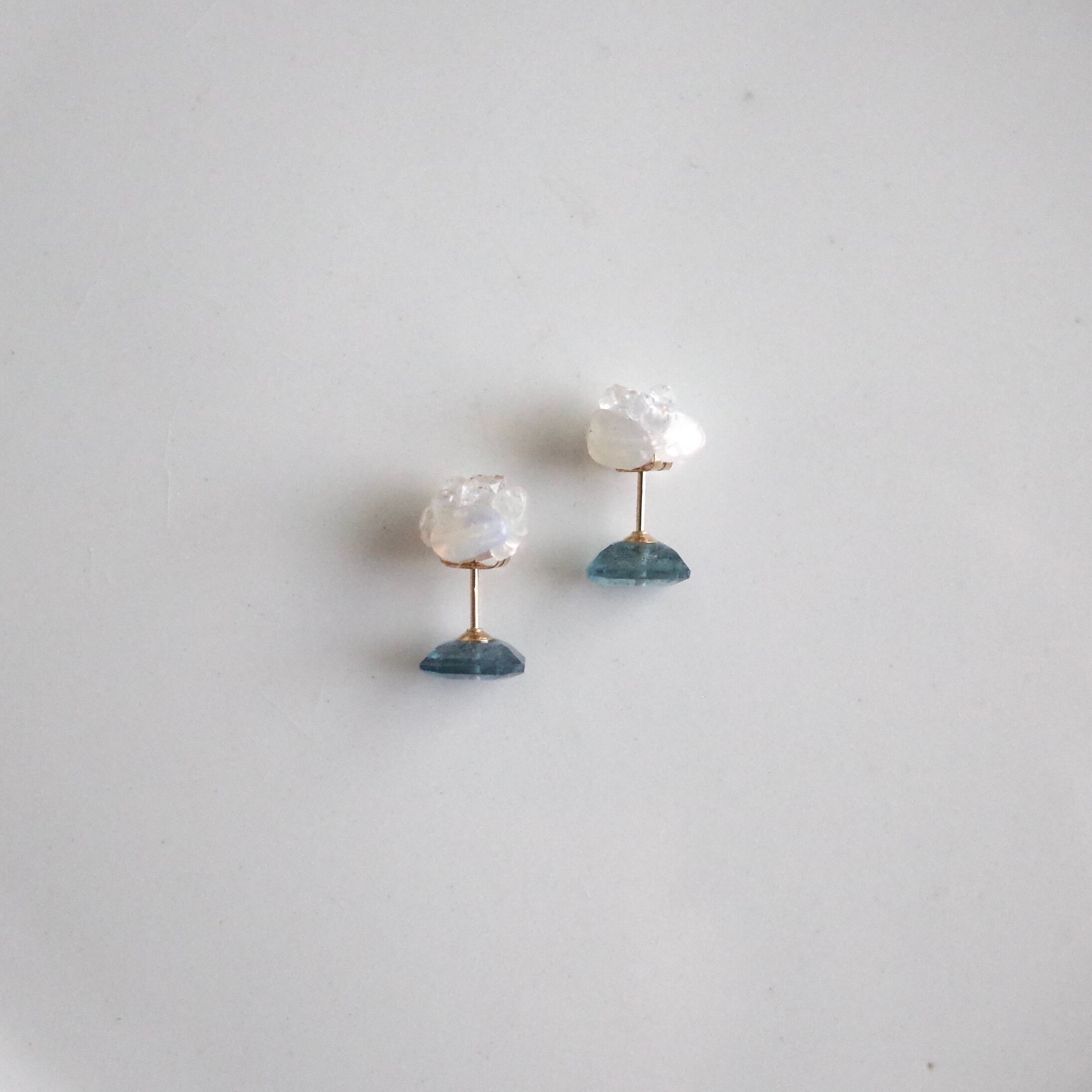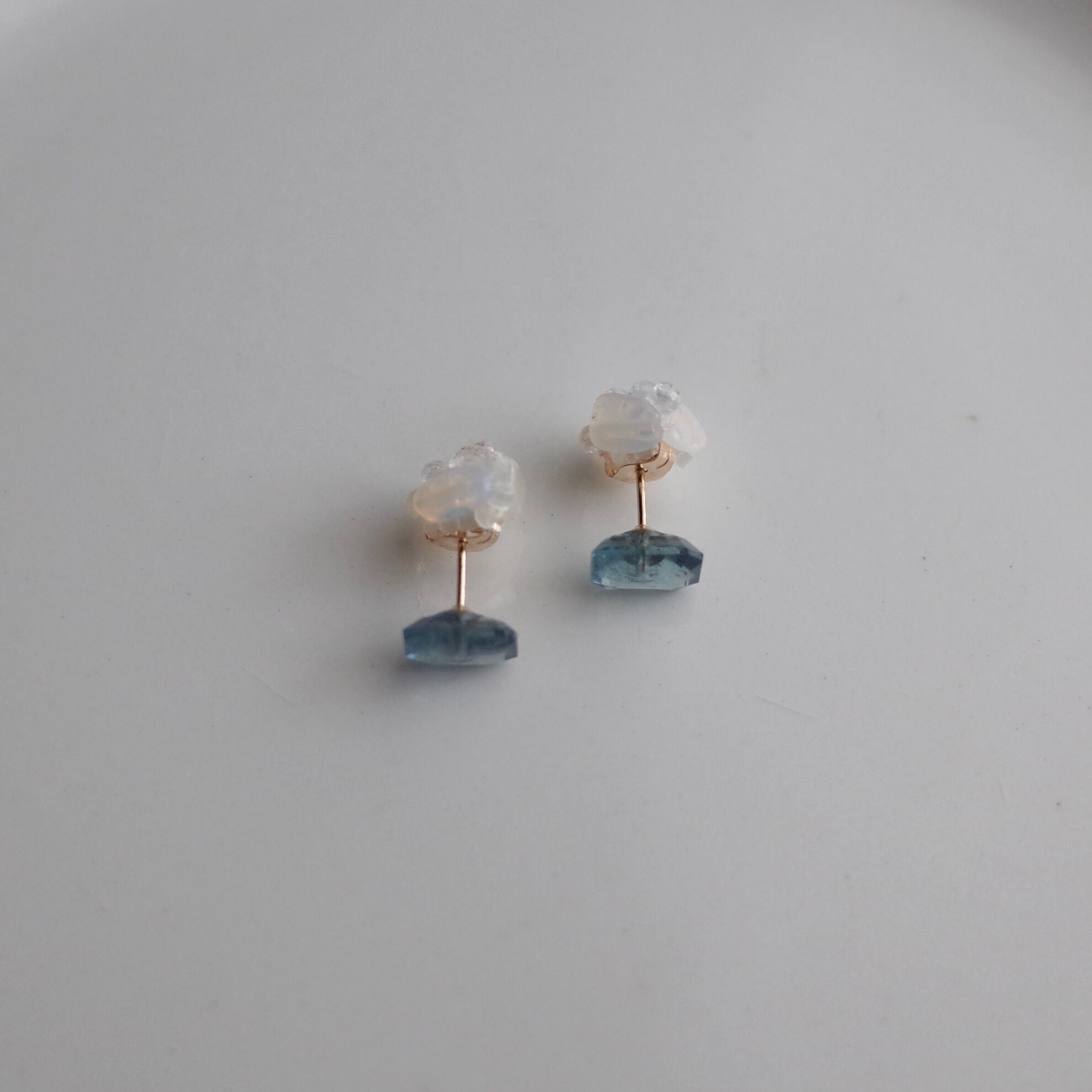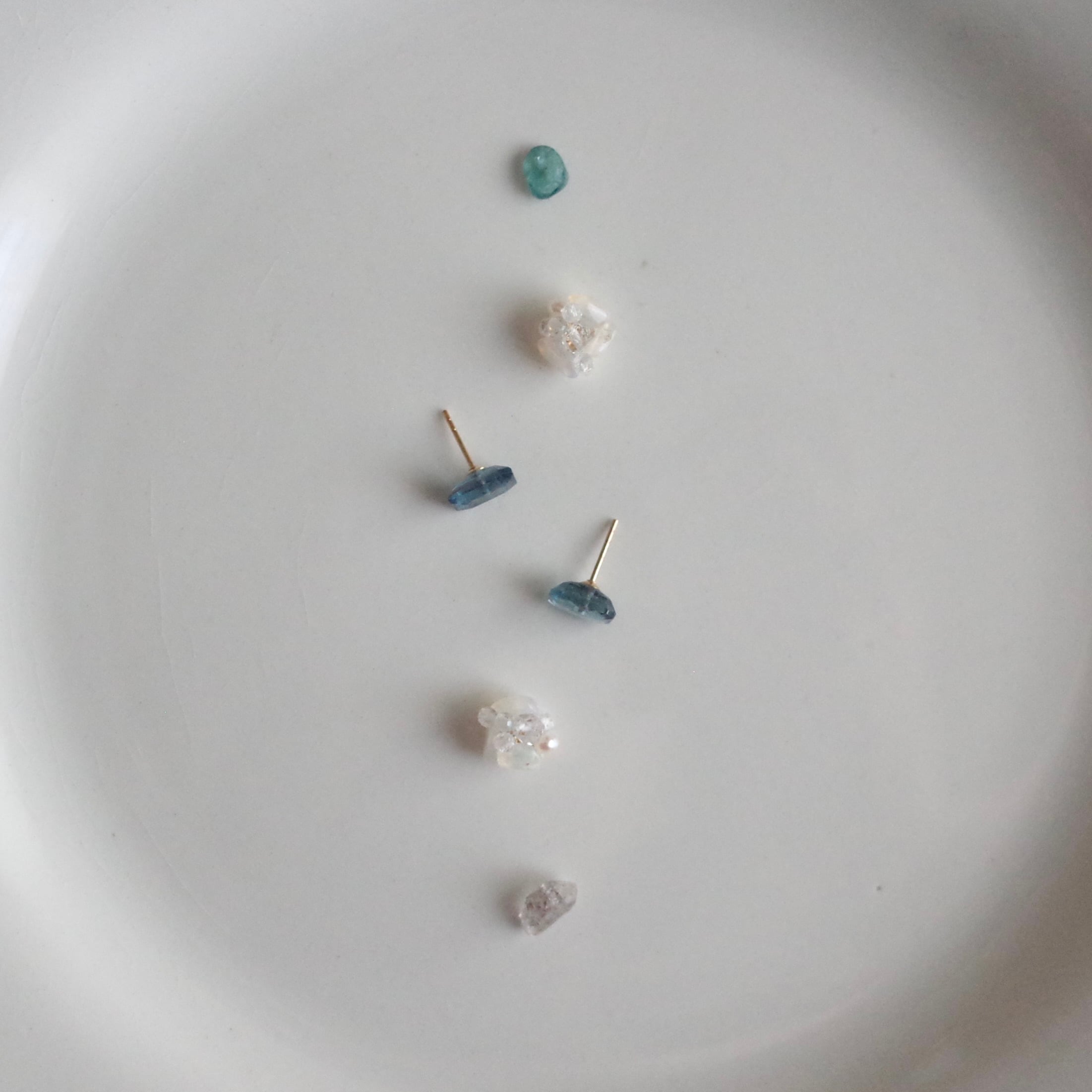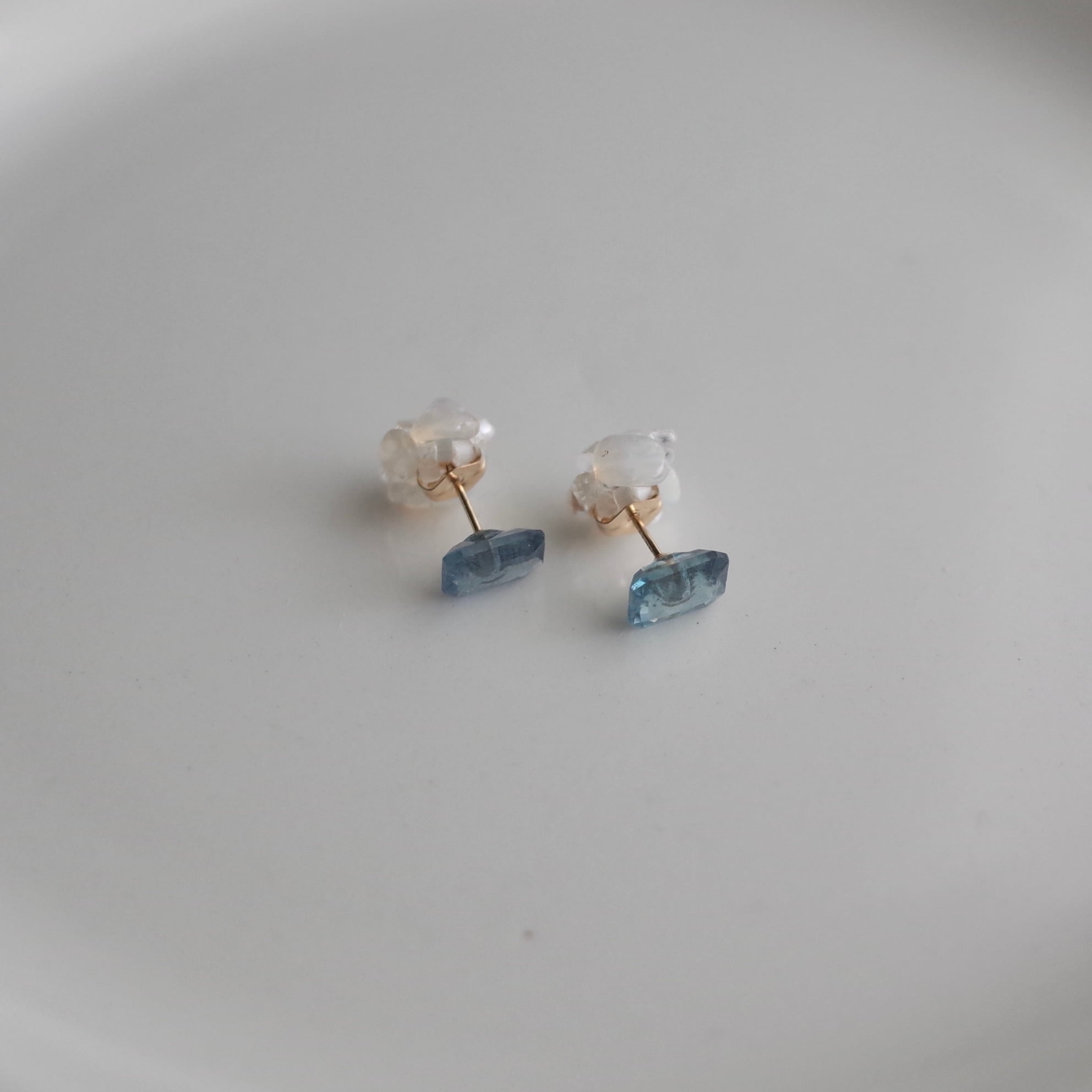 ふぞろい天然石ピアス / インディゴブルーカイヤナイト / オパールとハーキマーダイヤモンドキャッチ / 14kgf