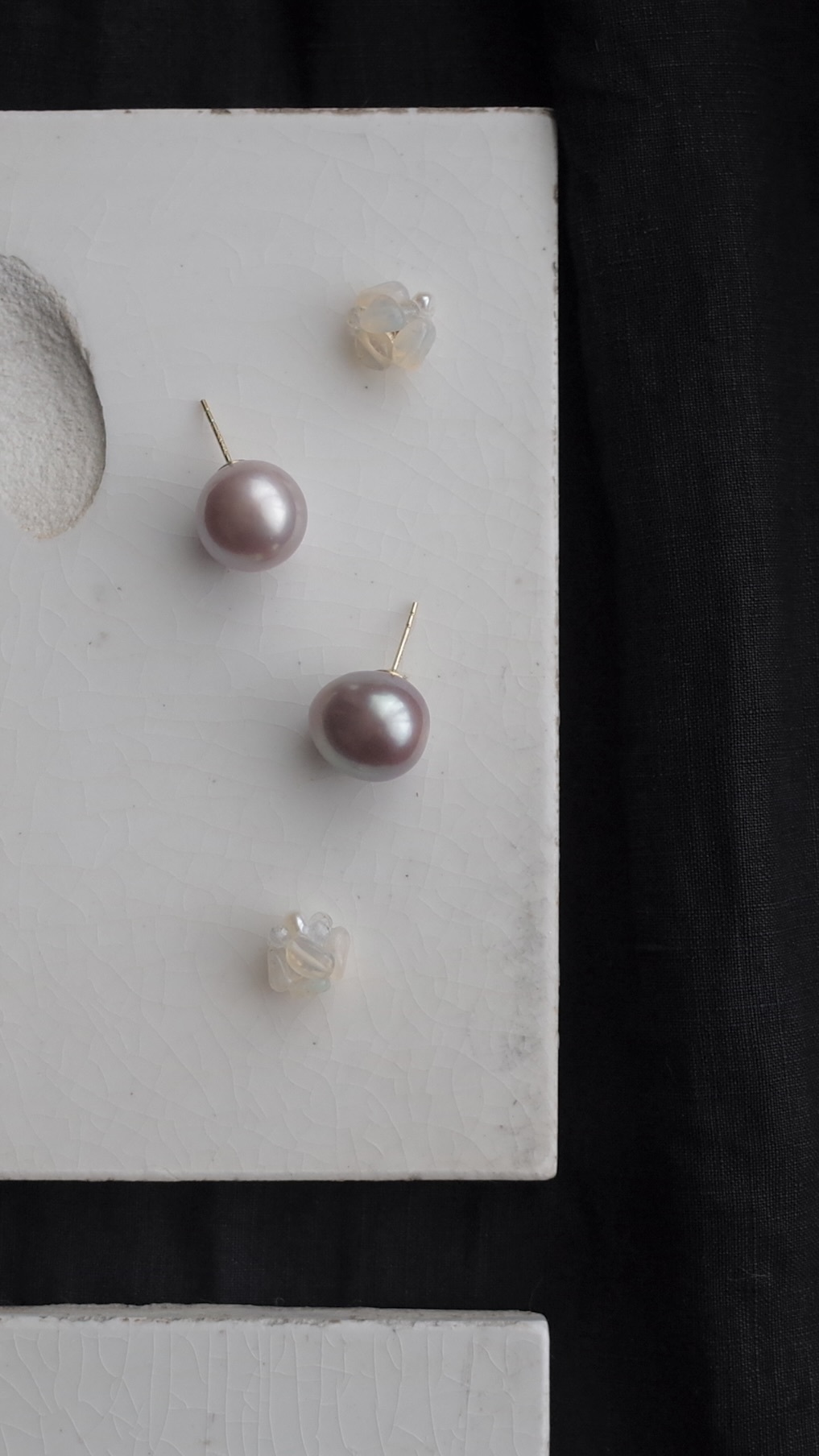 ふぞろい天然石ピアス / ラベンダーバロックパール / オパールキャッチ / 14kgf
