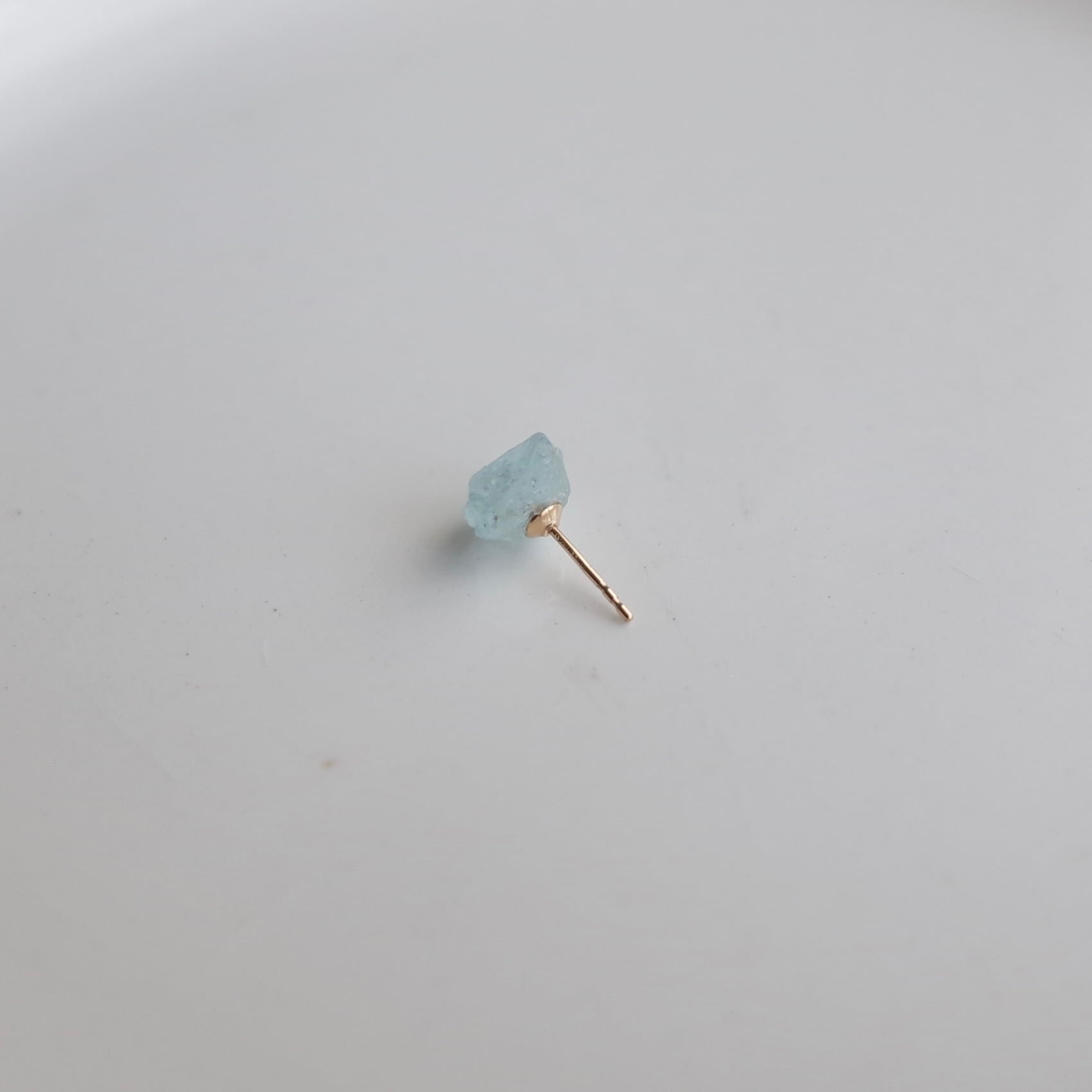 淡い水色が爽やかなアクアマリン原石をピアスに仕上げました。