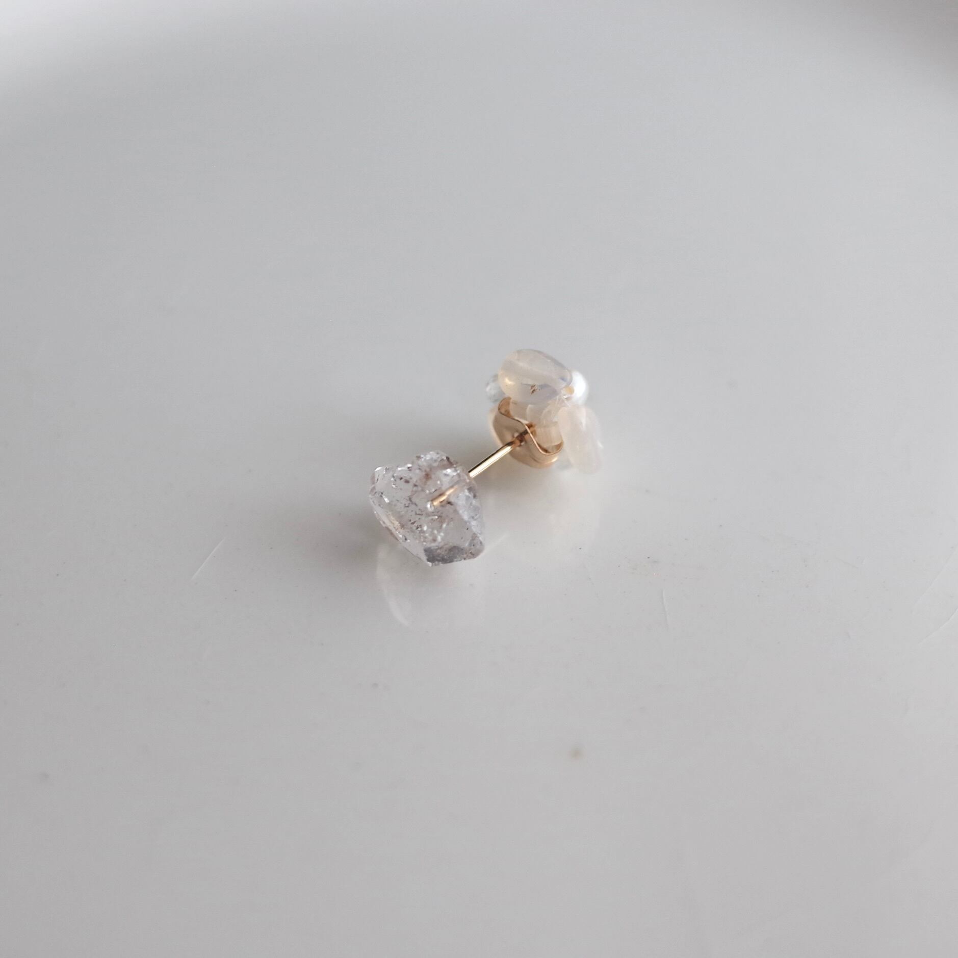 [ シングル ] ふぞろい天然石ピアス / ダイヤモンドクォーツ2 / オパールキャッチ / 14kgf