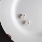 イヤリングパーツはなるべく小さいものを選んだので、華奢な印象で表からは極力見えないように仕上げております。