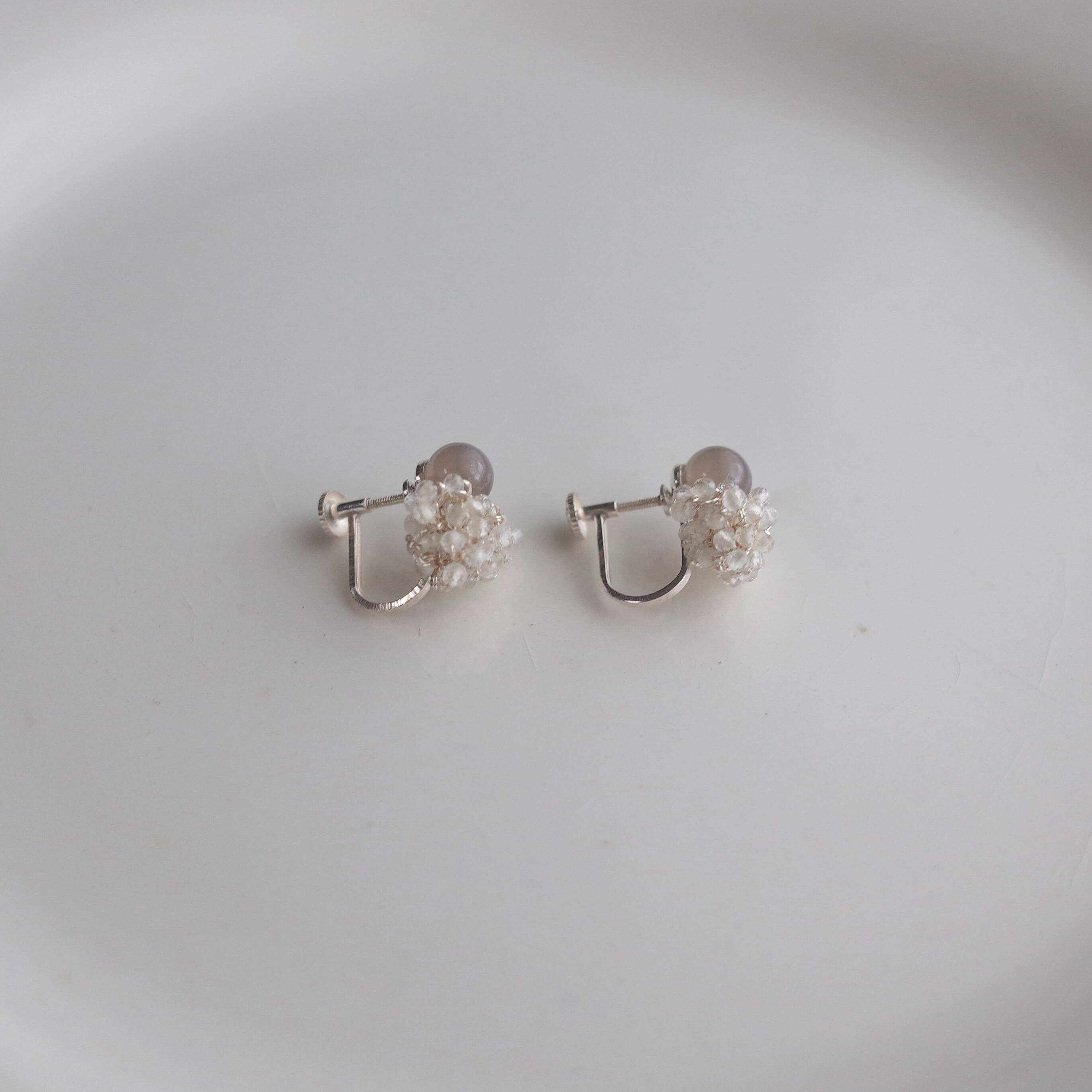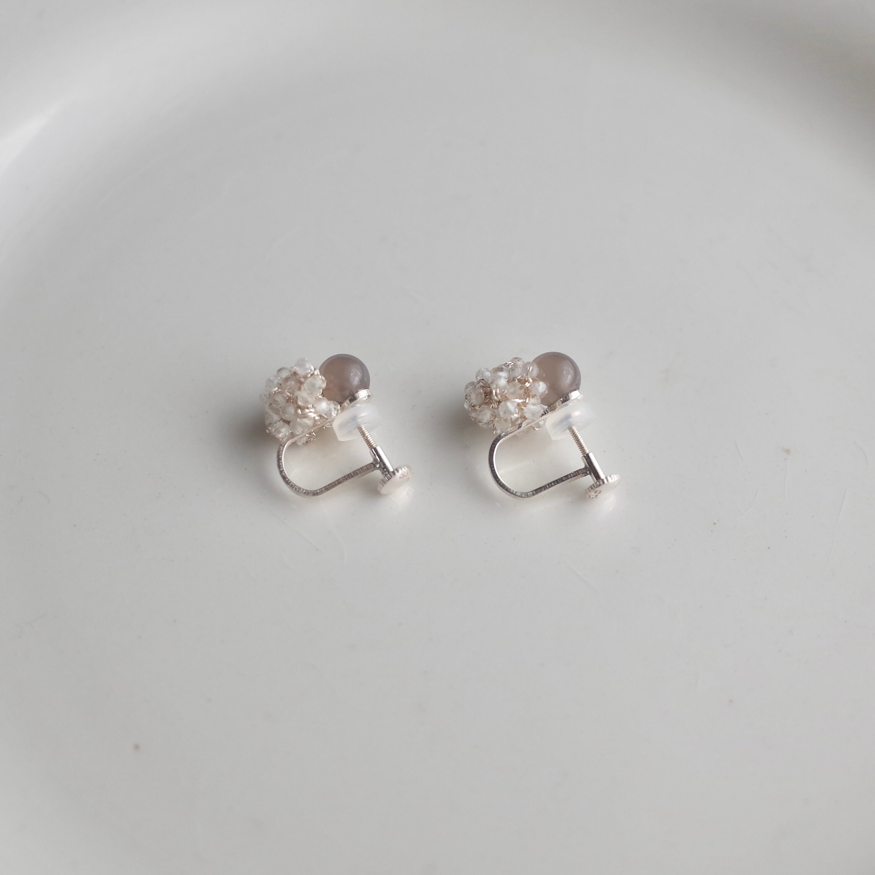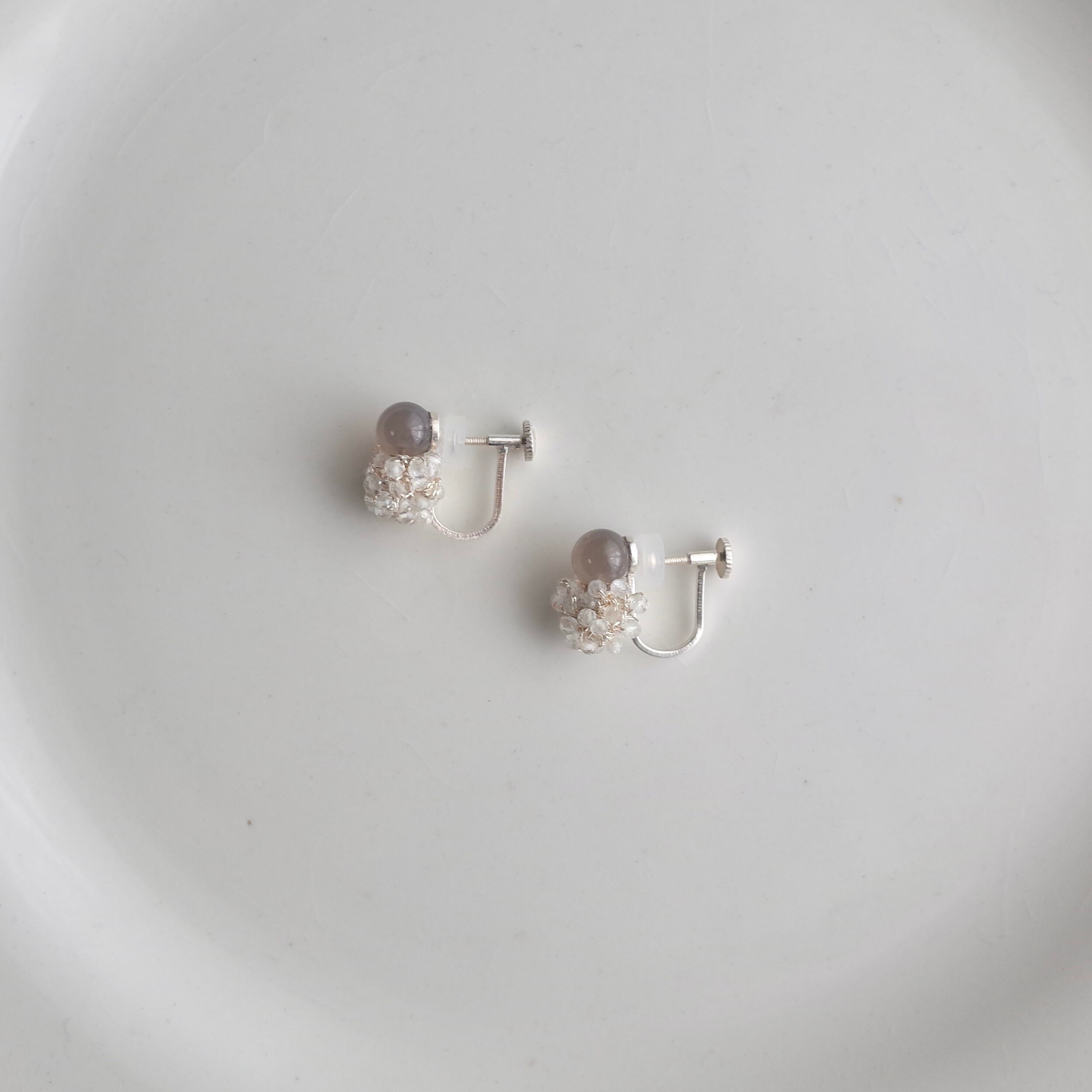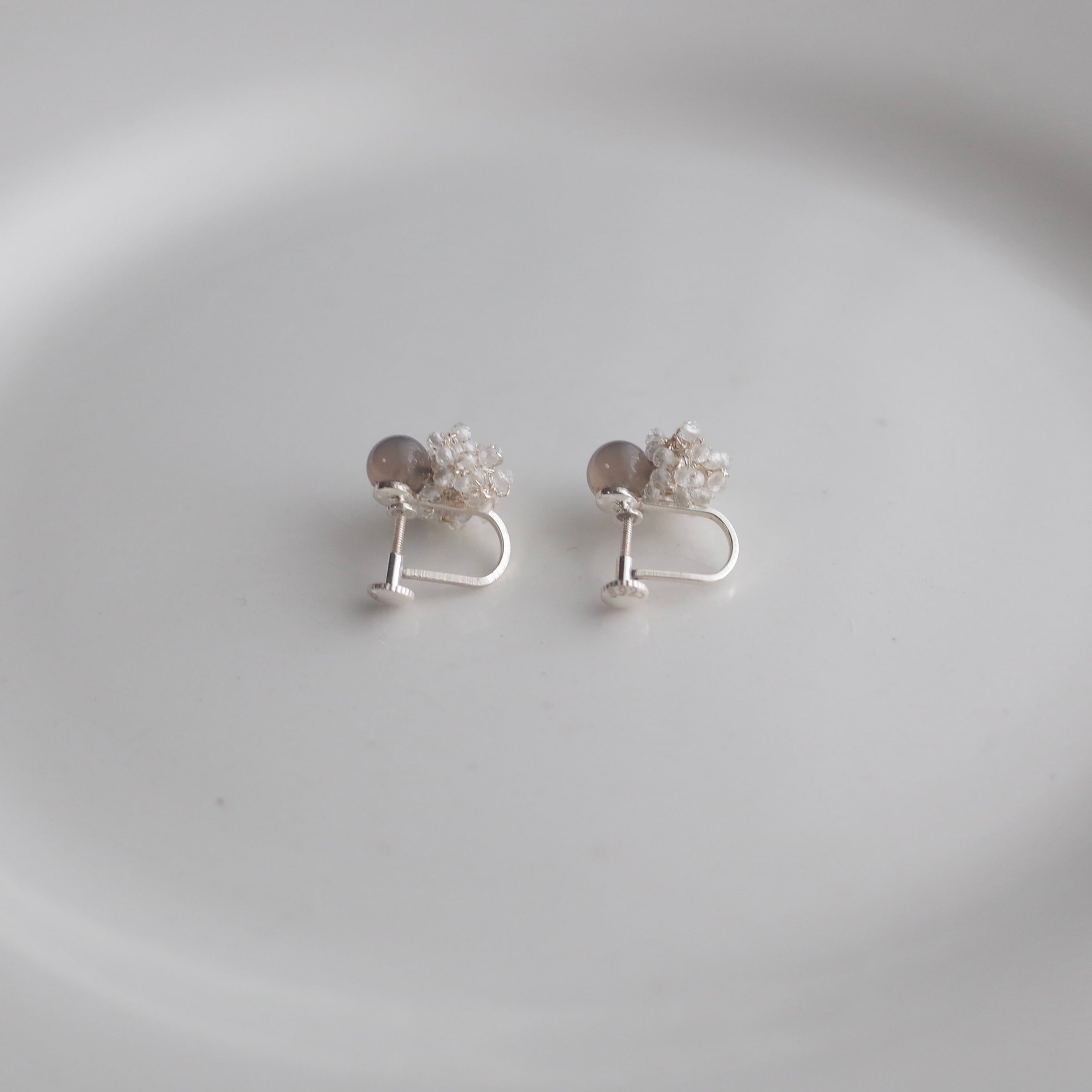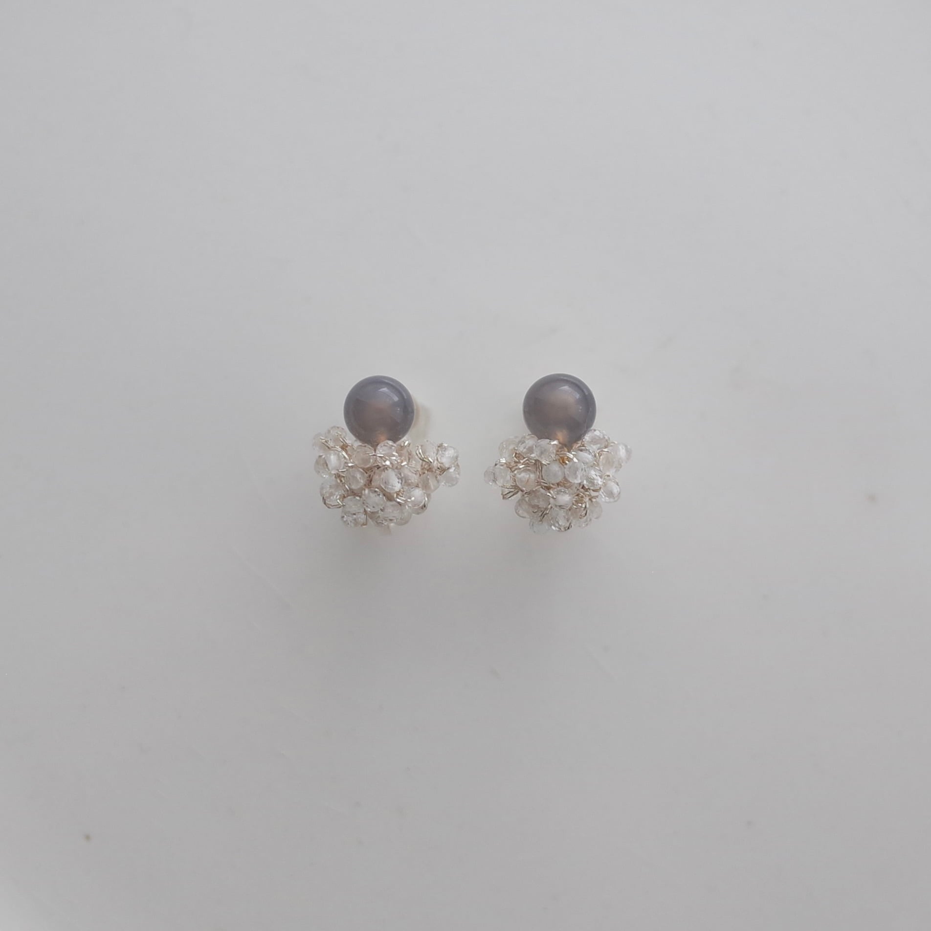 グレーオニキスとホワイトトパーズを組み合わせ、SILVER925製のイヤリングにて仕上げました。