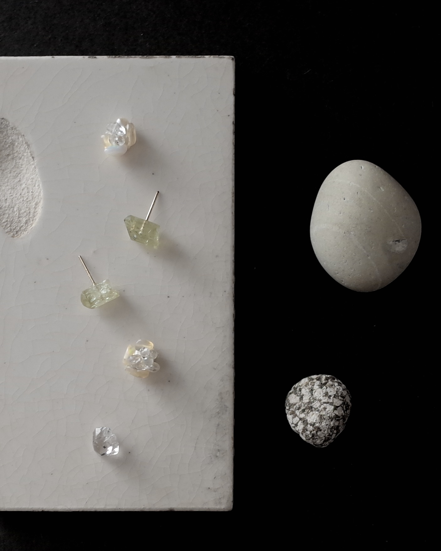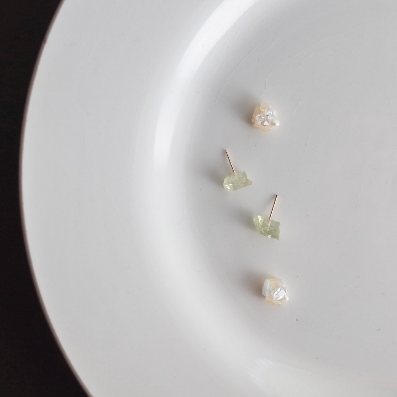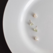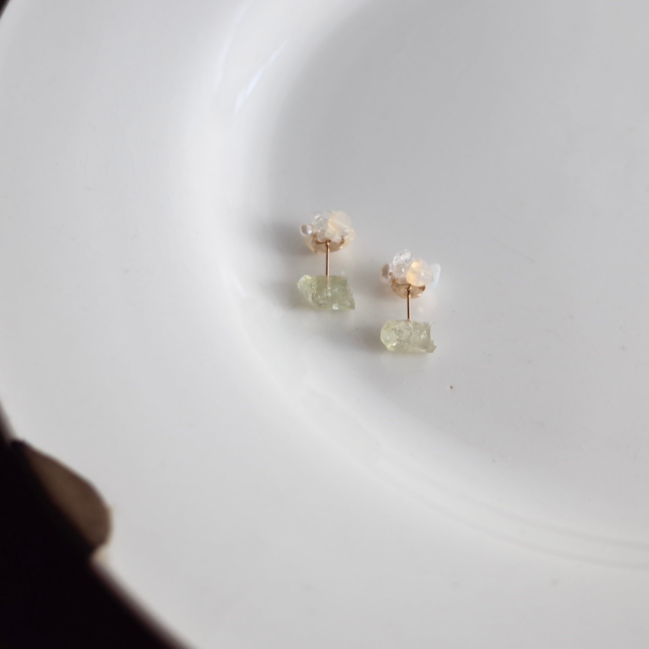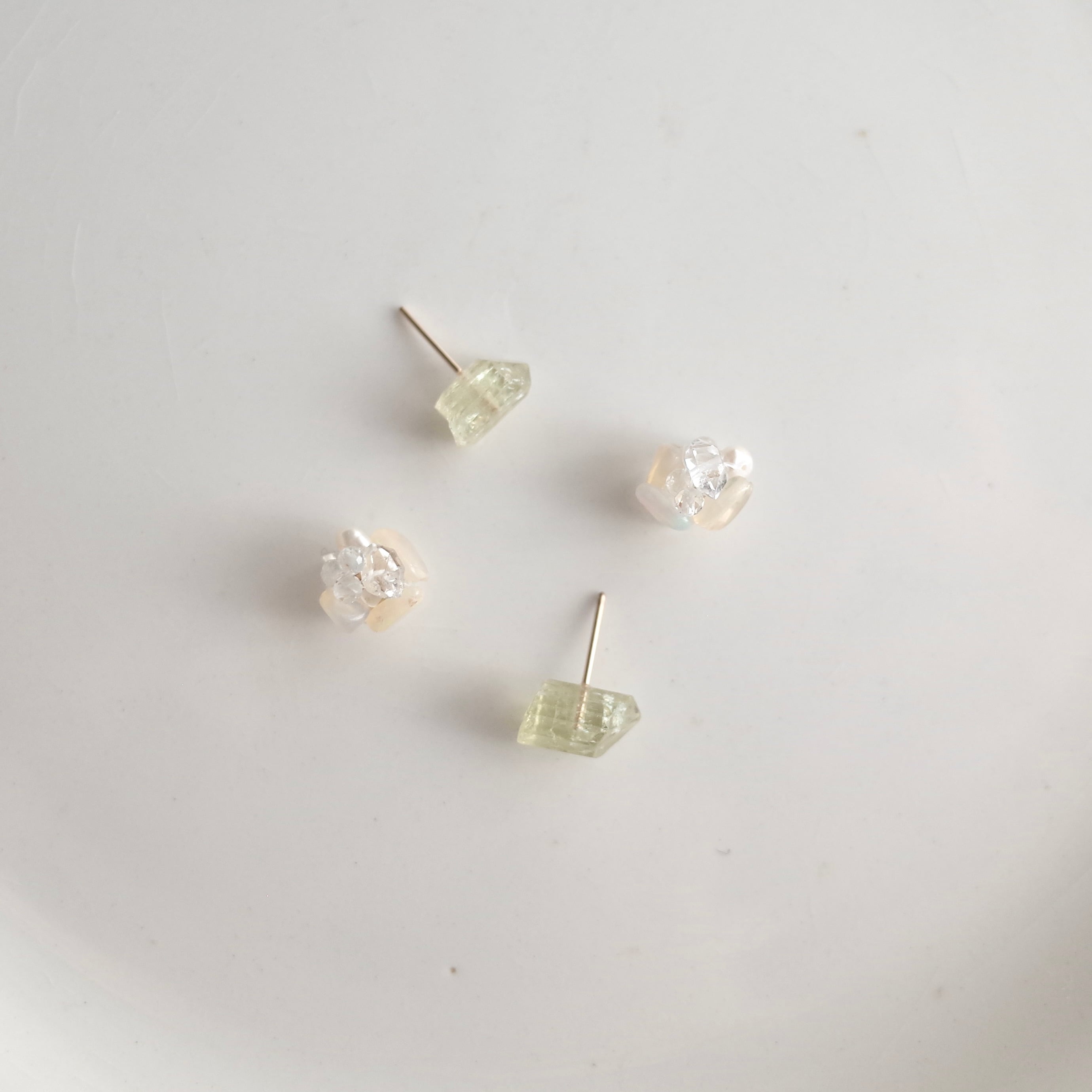 ふぞろい天然石ピアス / イエローアパタイト / オパールとハーキマーダイヤモンドキャッチ / 14kgf