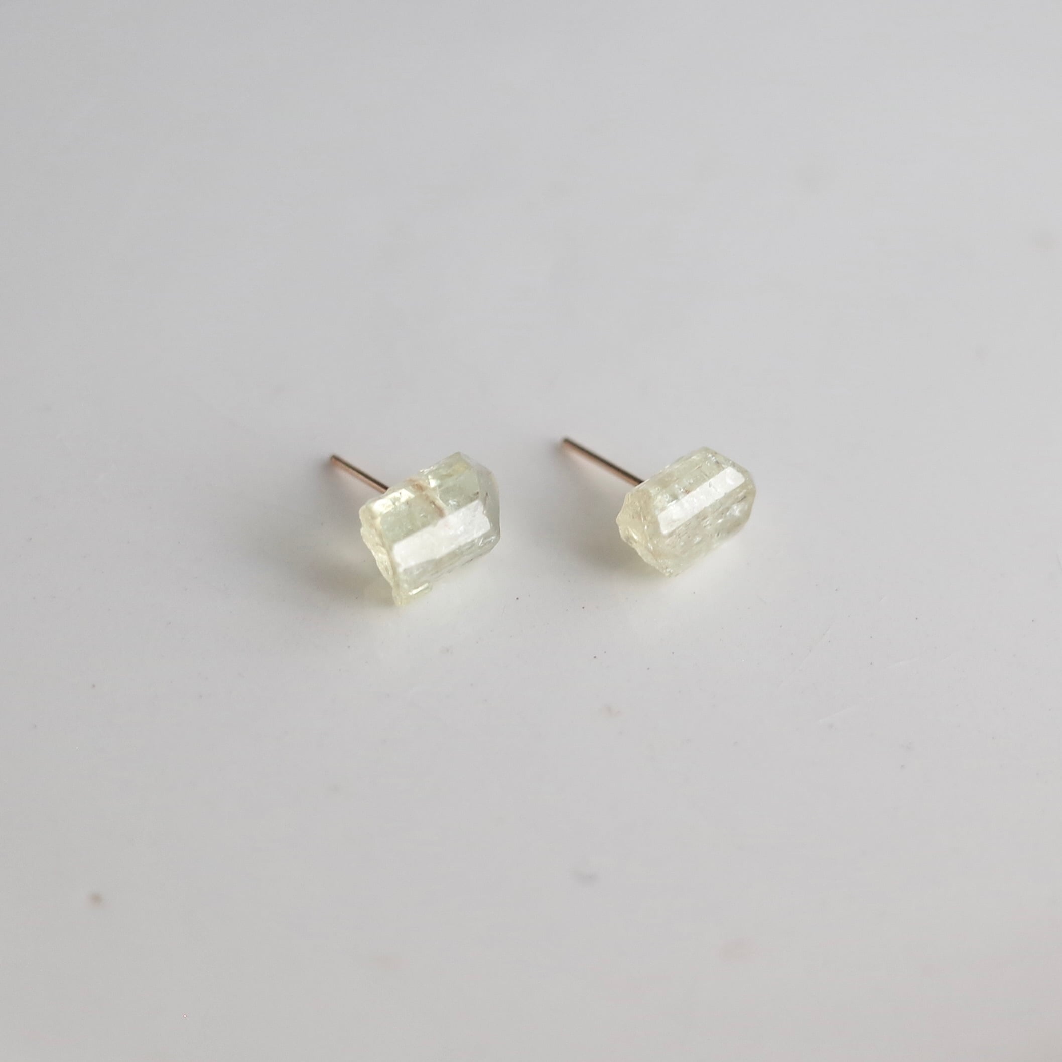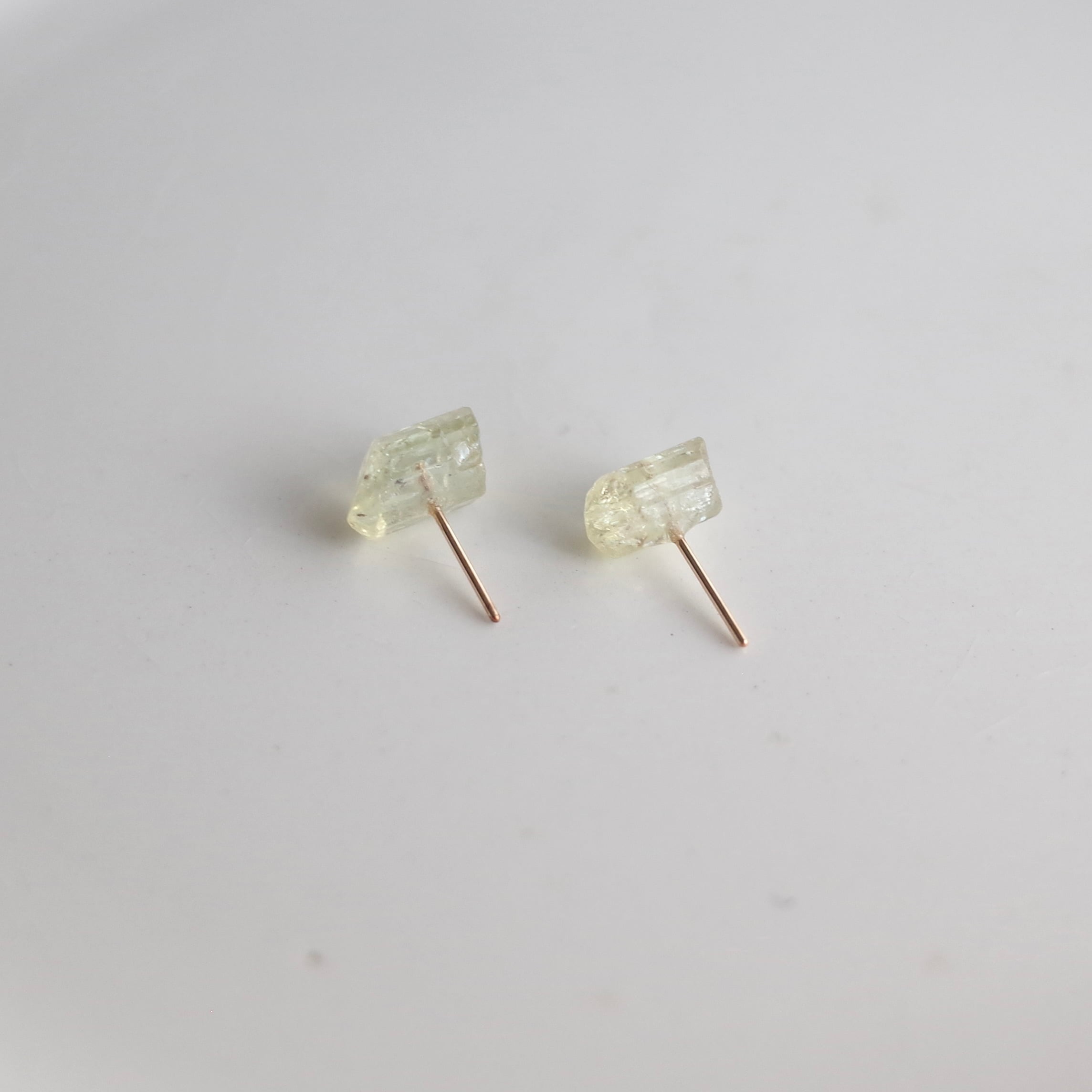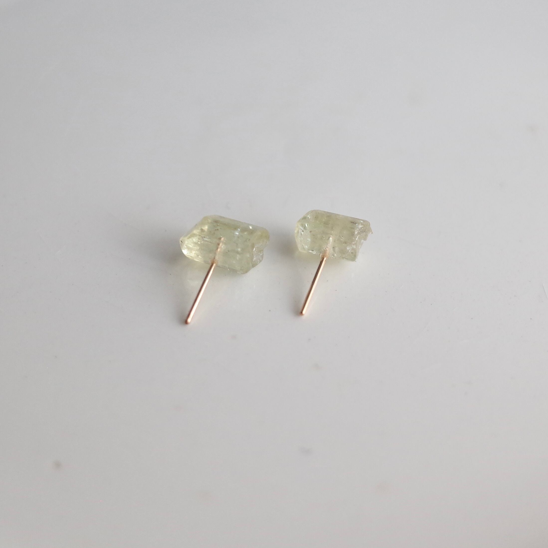 イエローアパタイトの原石をピアスに仕上げました。