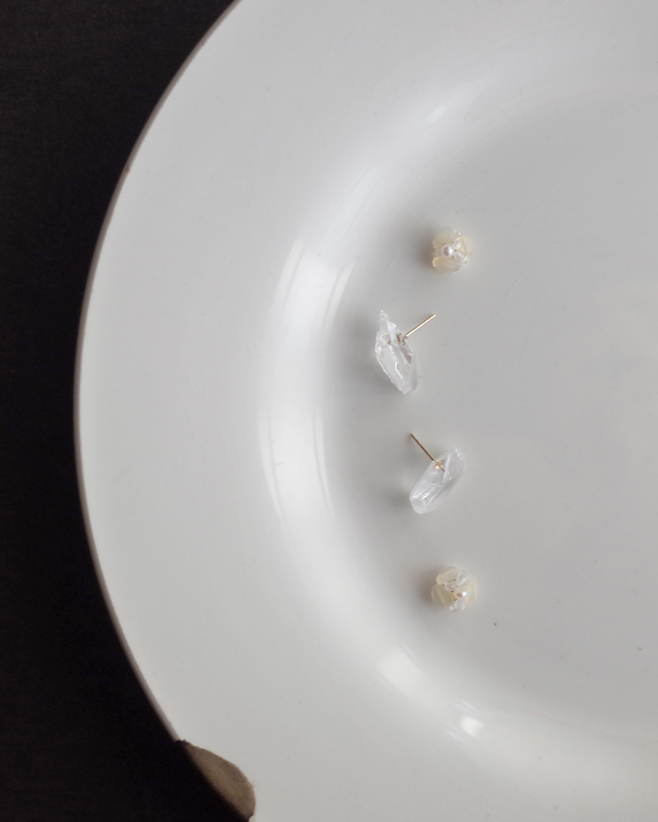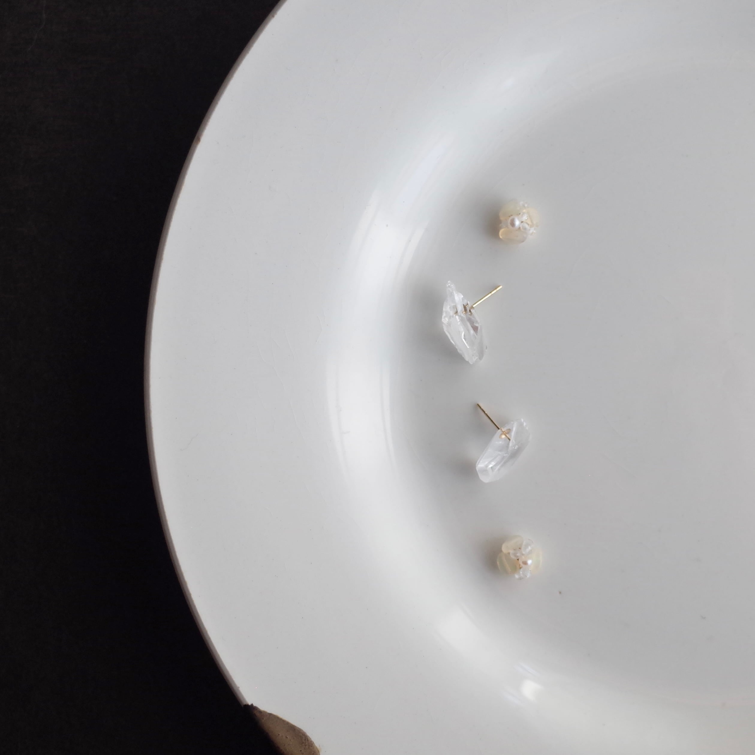 ドイツ語で『糸』を意味するファーデンクォーツの原石をピアスに仕上げました。