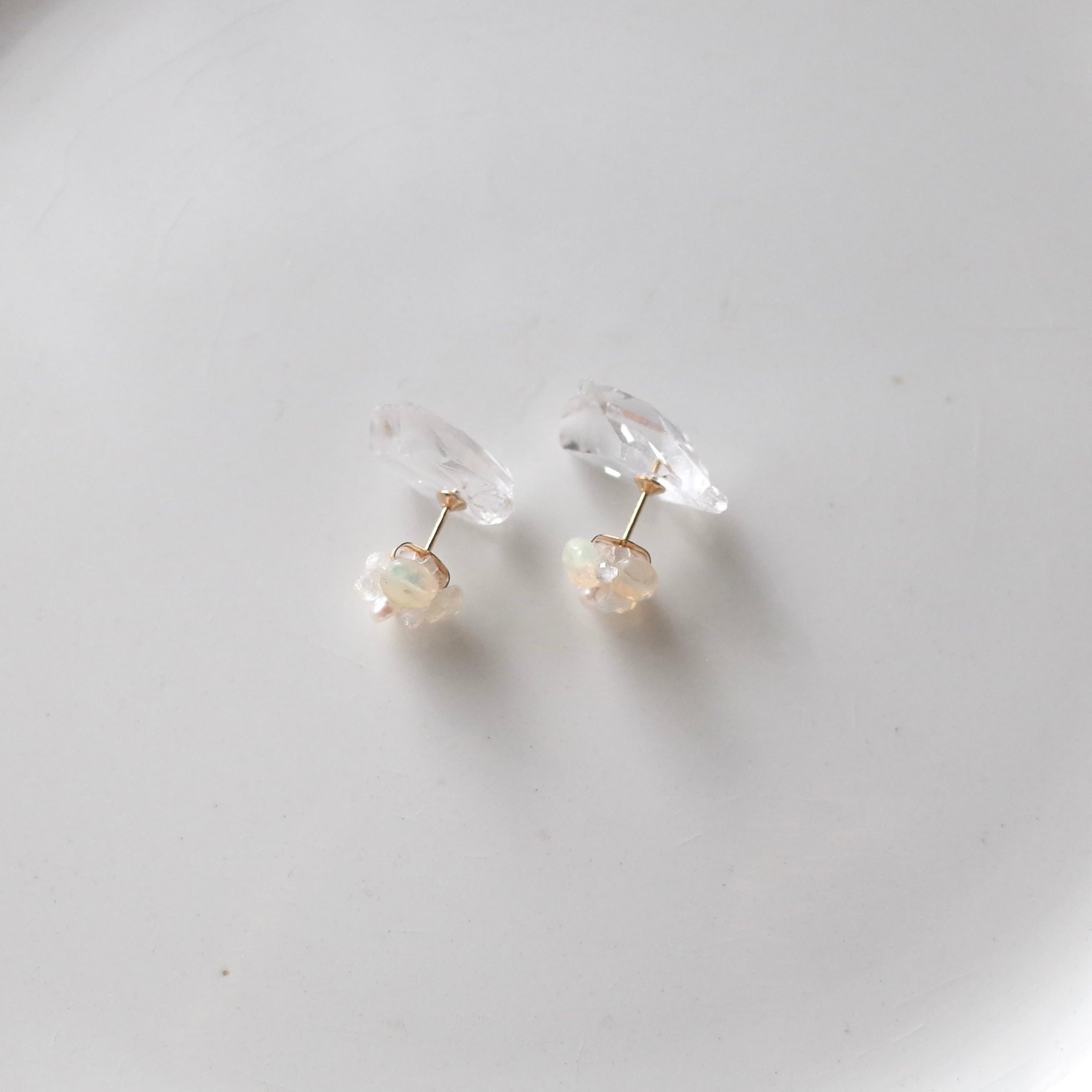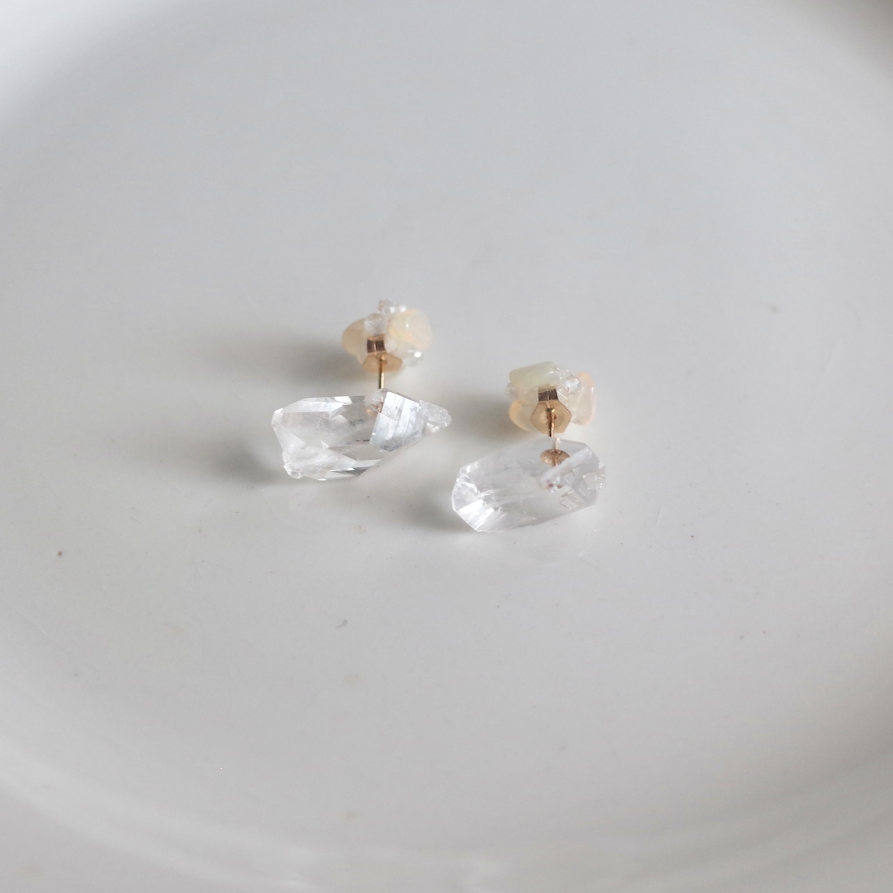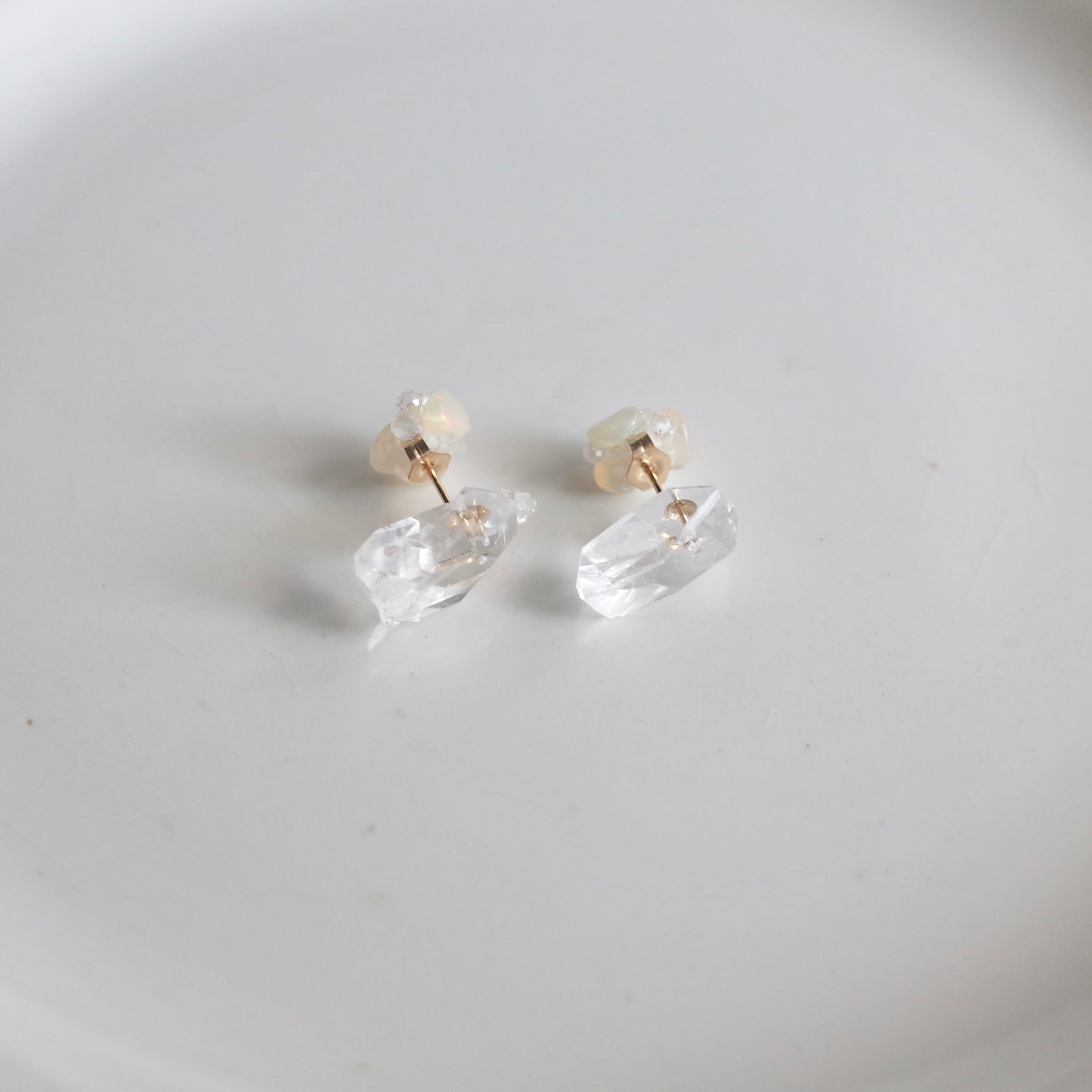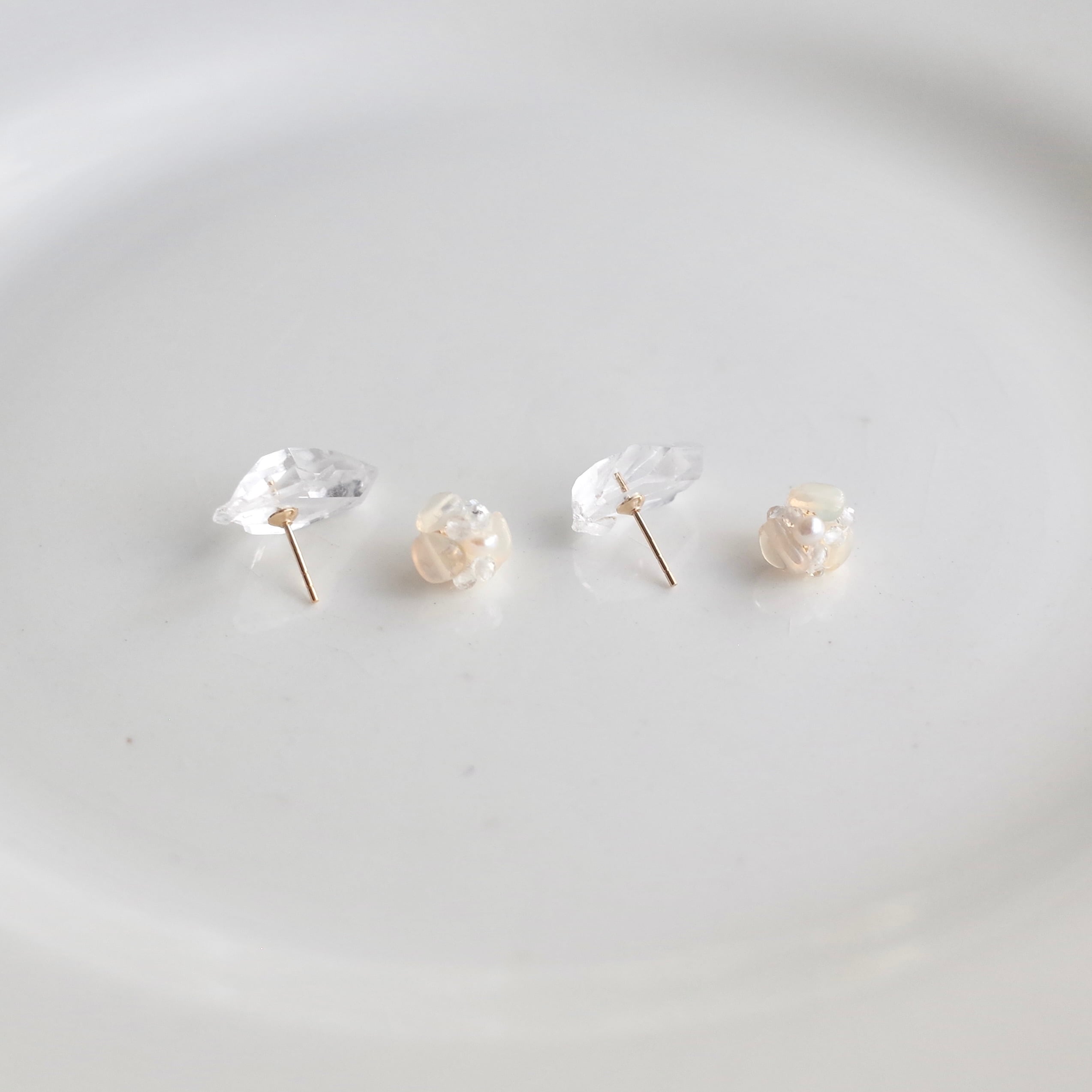 ふぞろい天然石ピアス / ファーデンクォーツ4 / オパールキャッチ / 14kgf