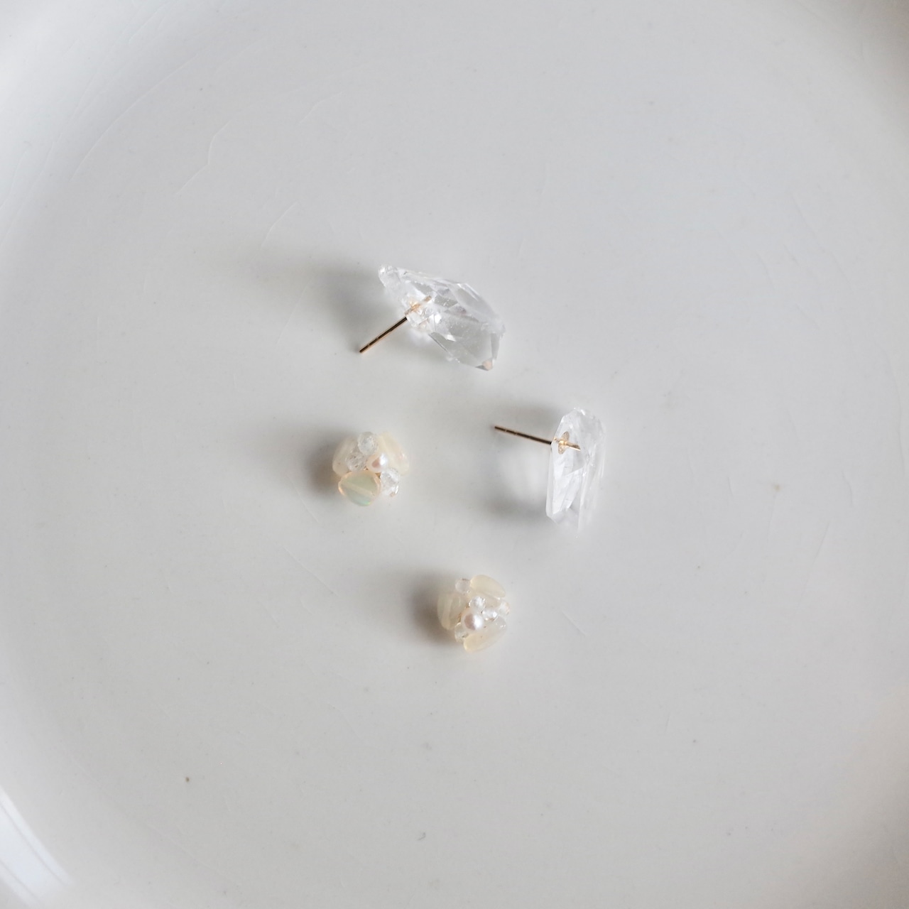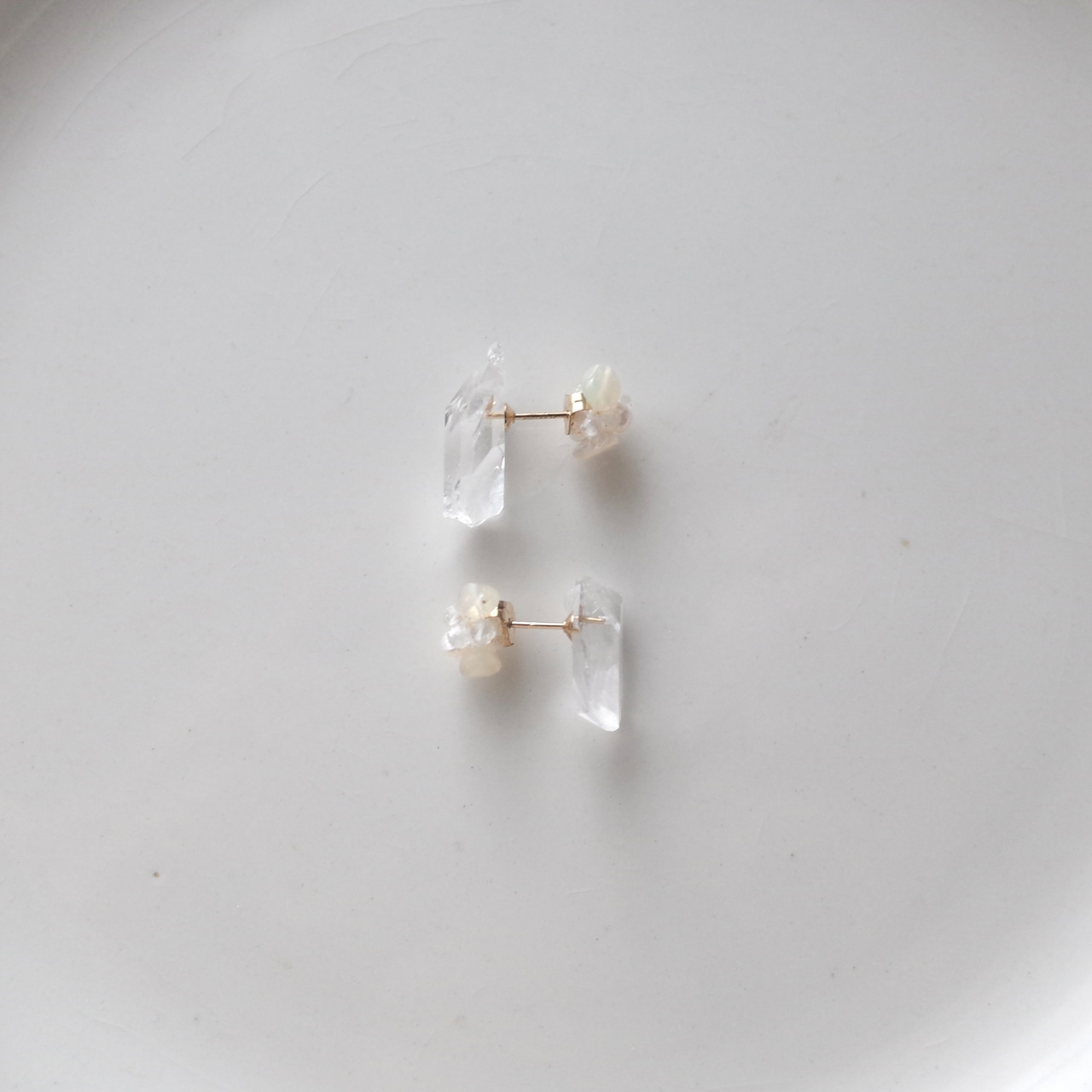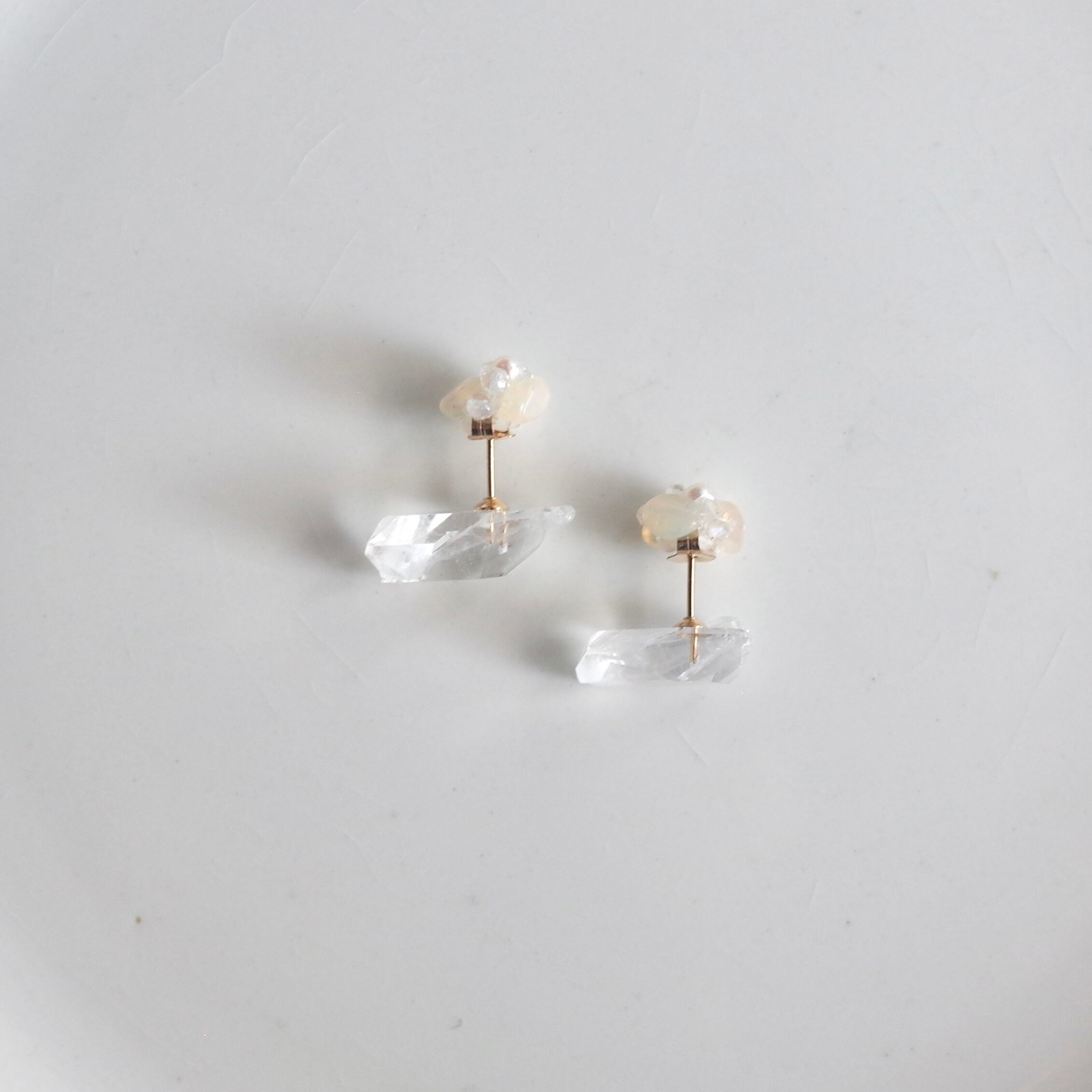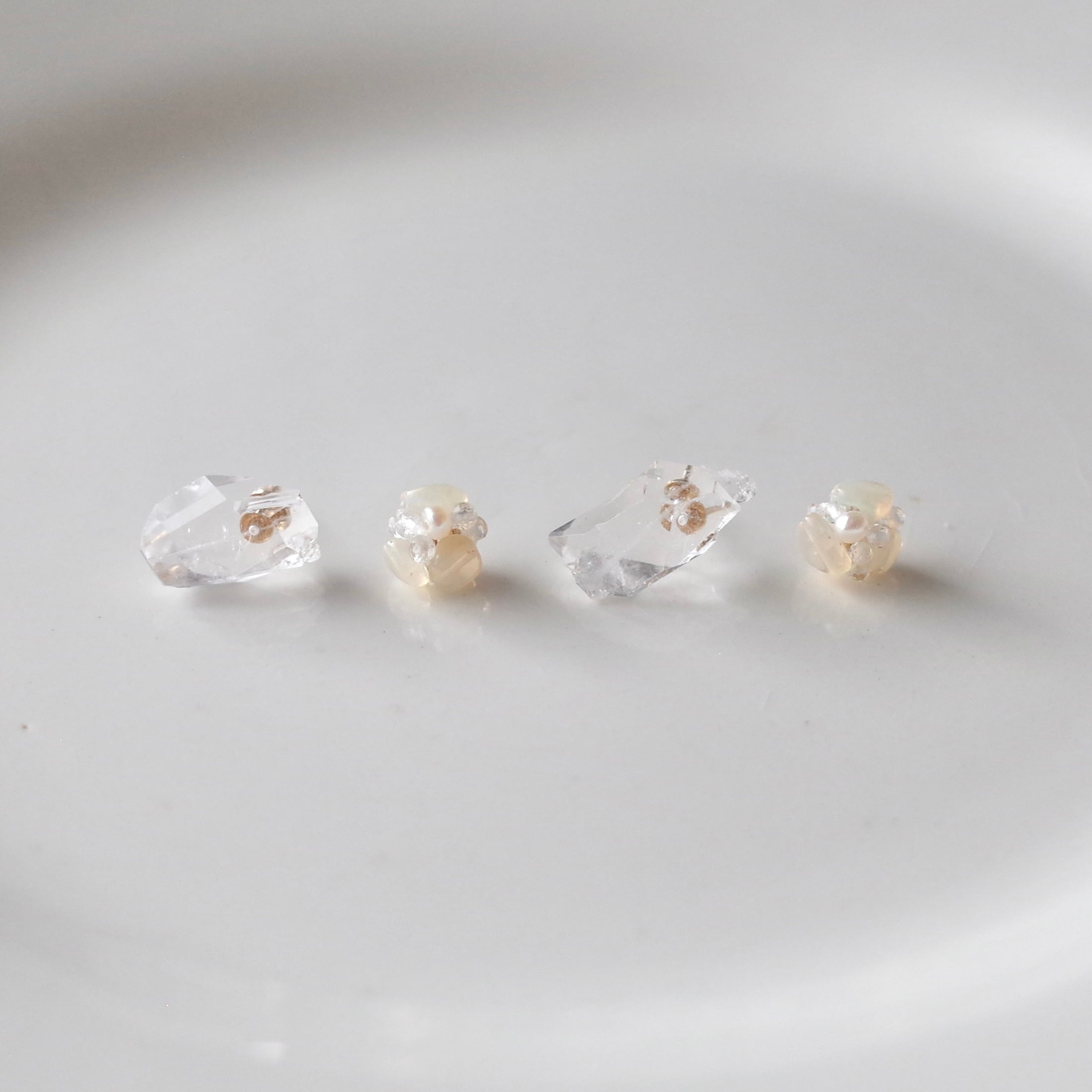 ふぞろい天然石ピアス / ファーデンクォーツ4 / オパールキャッチ / 14kgf