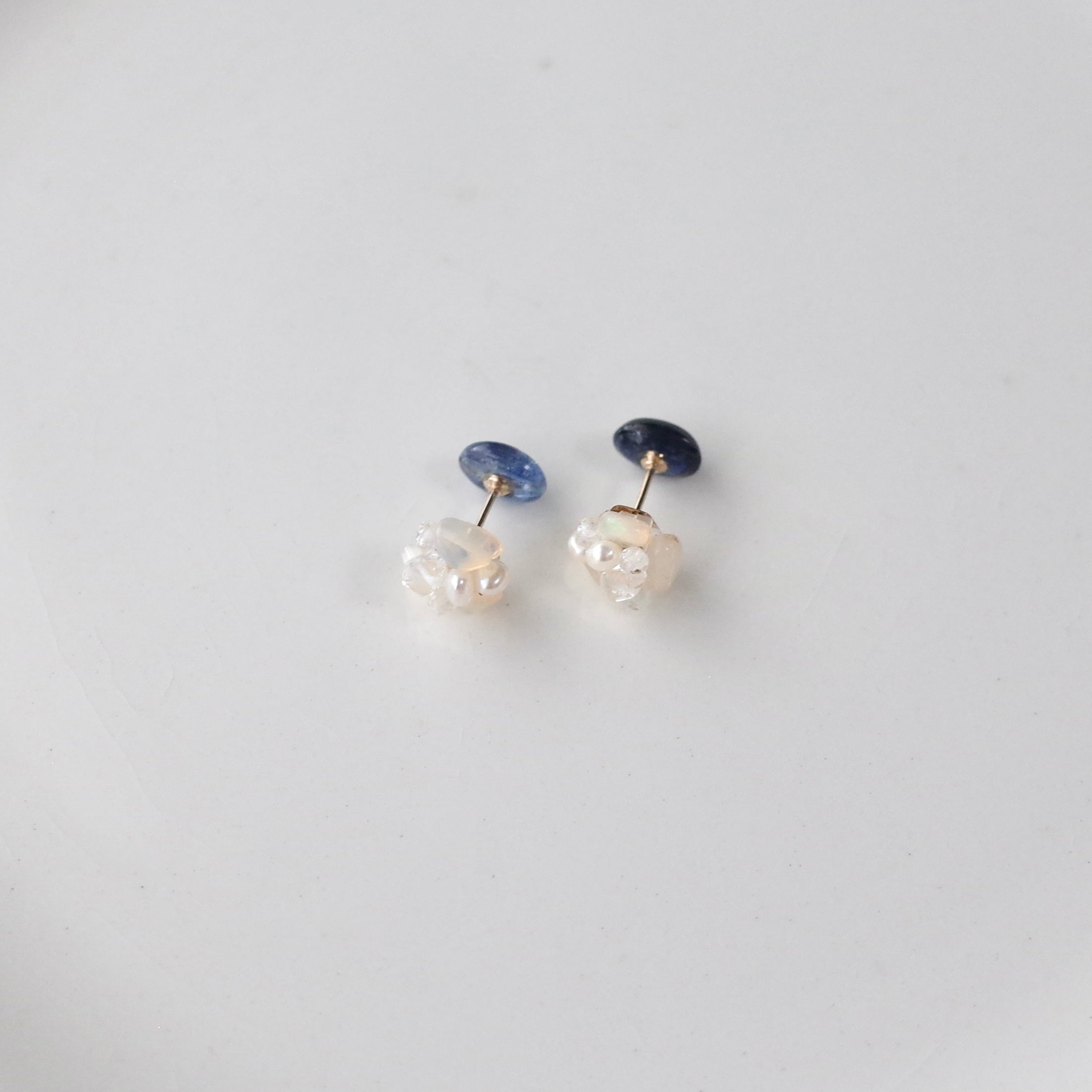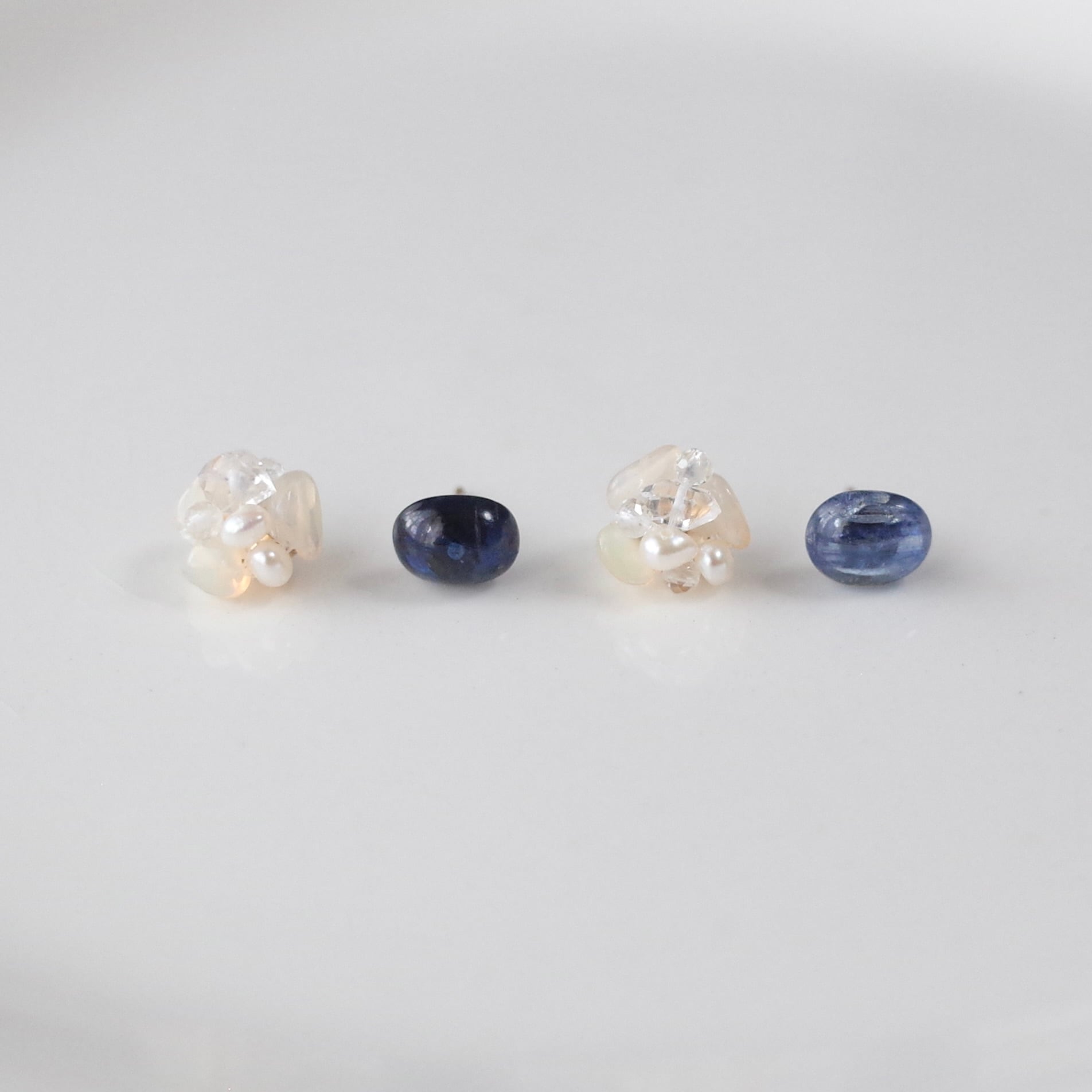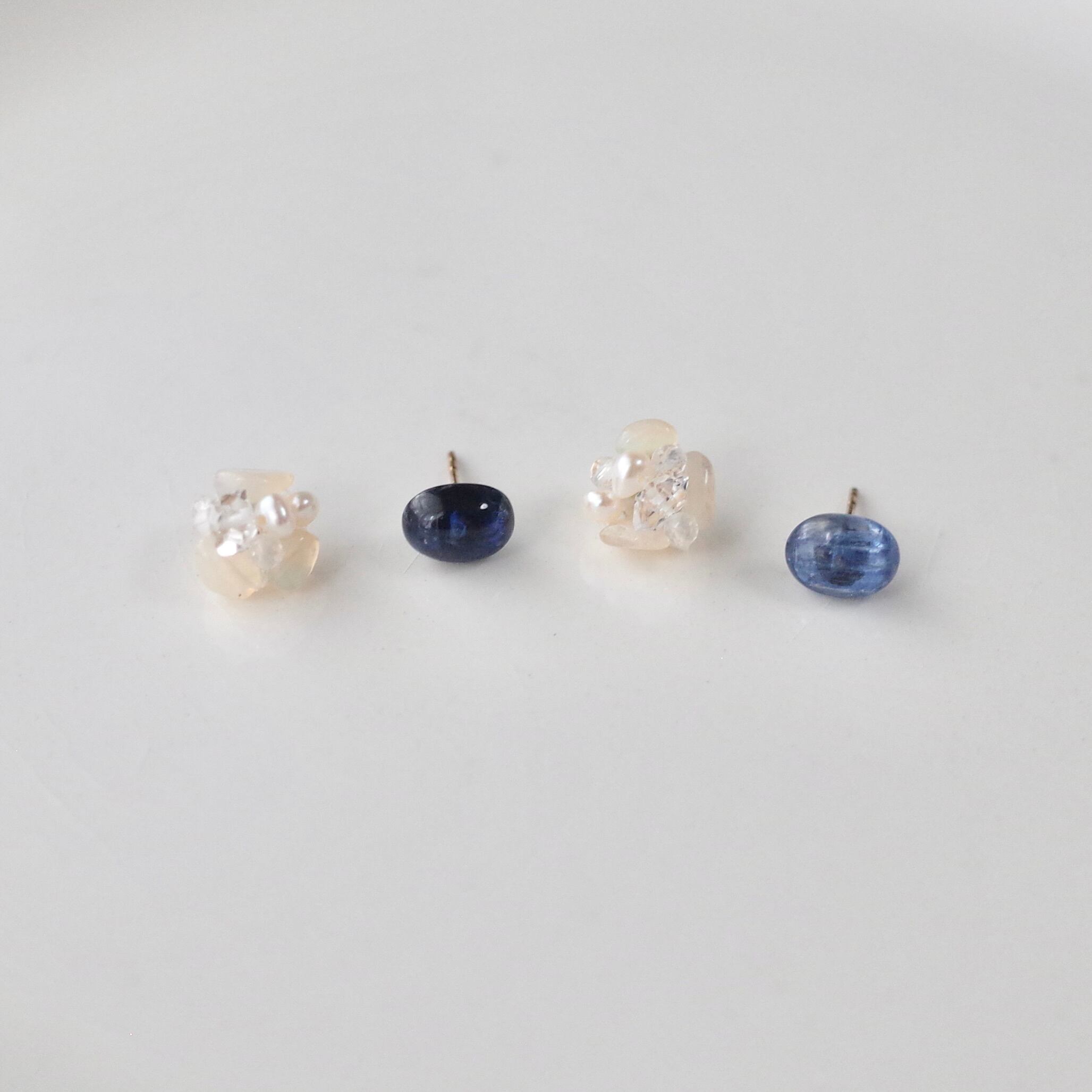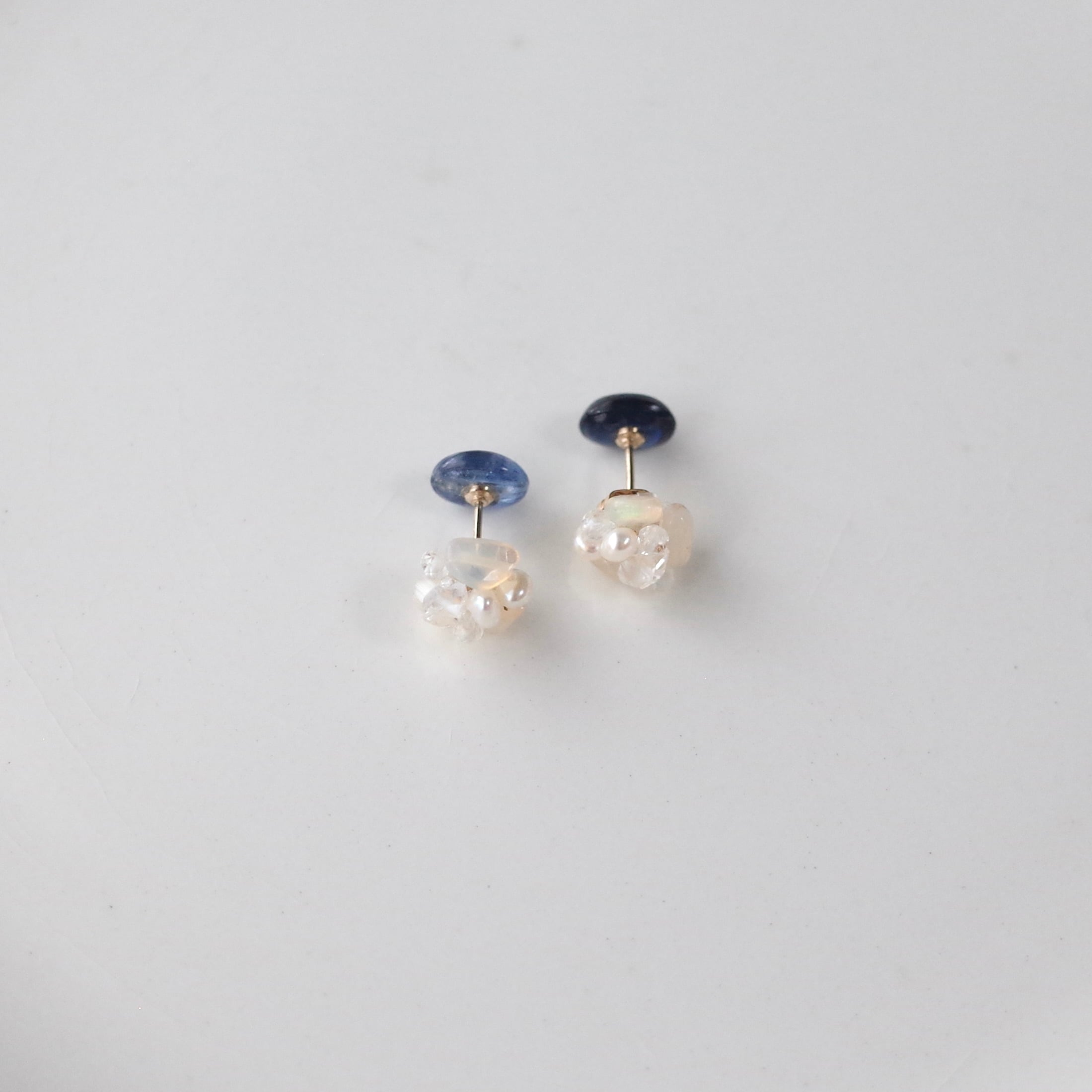ふぞろい天然石ピアス / カイヤナイト / オパールとハーキマーダイヤモンドキャッチ / 14kgf
