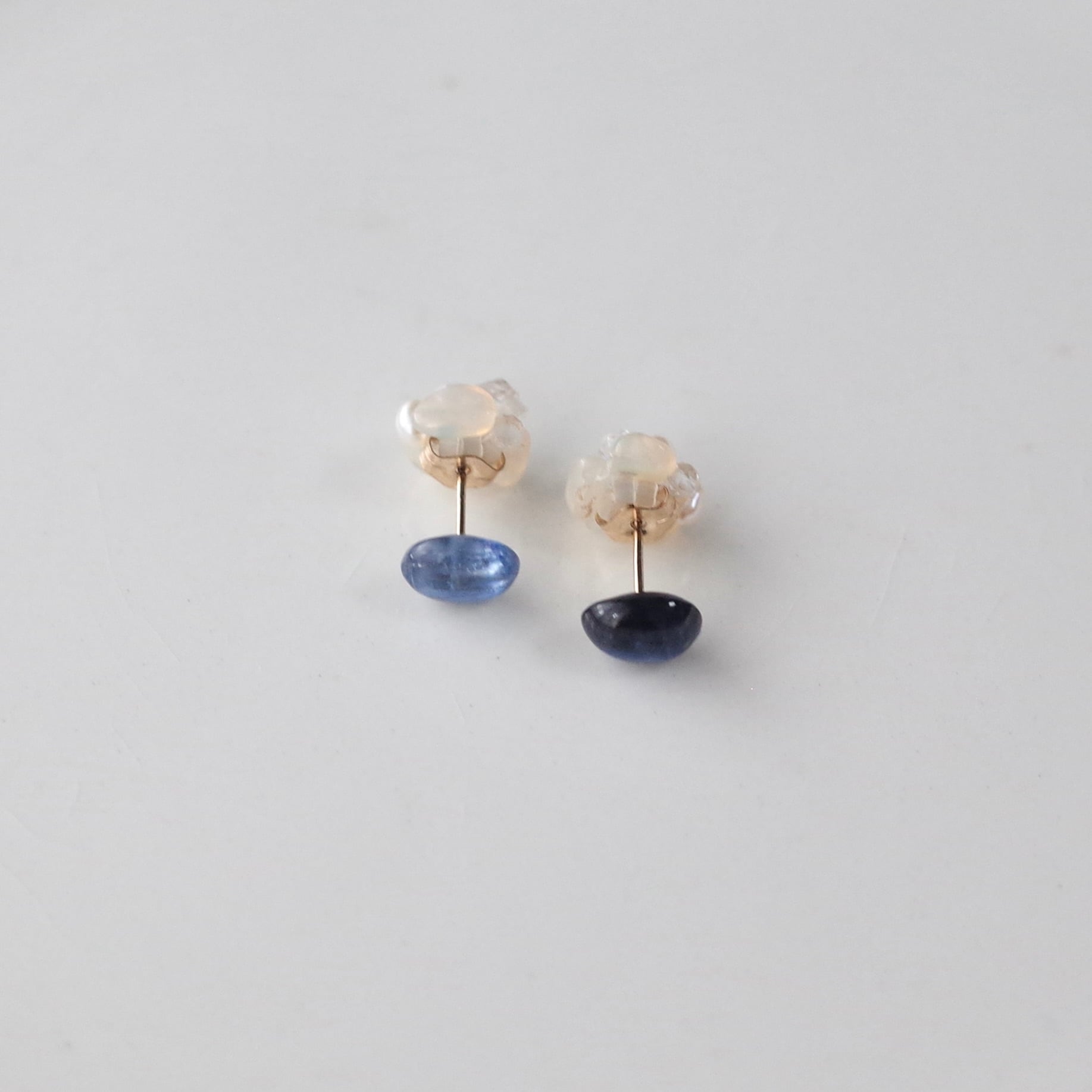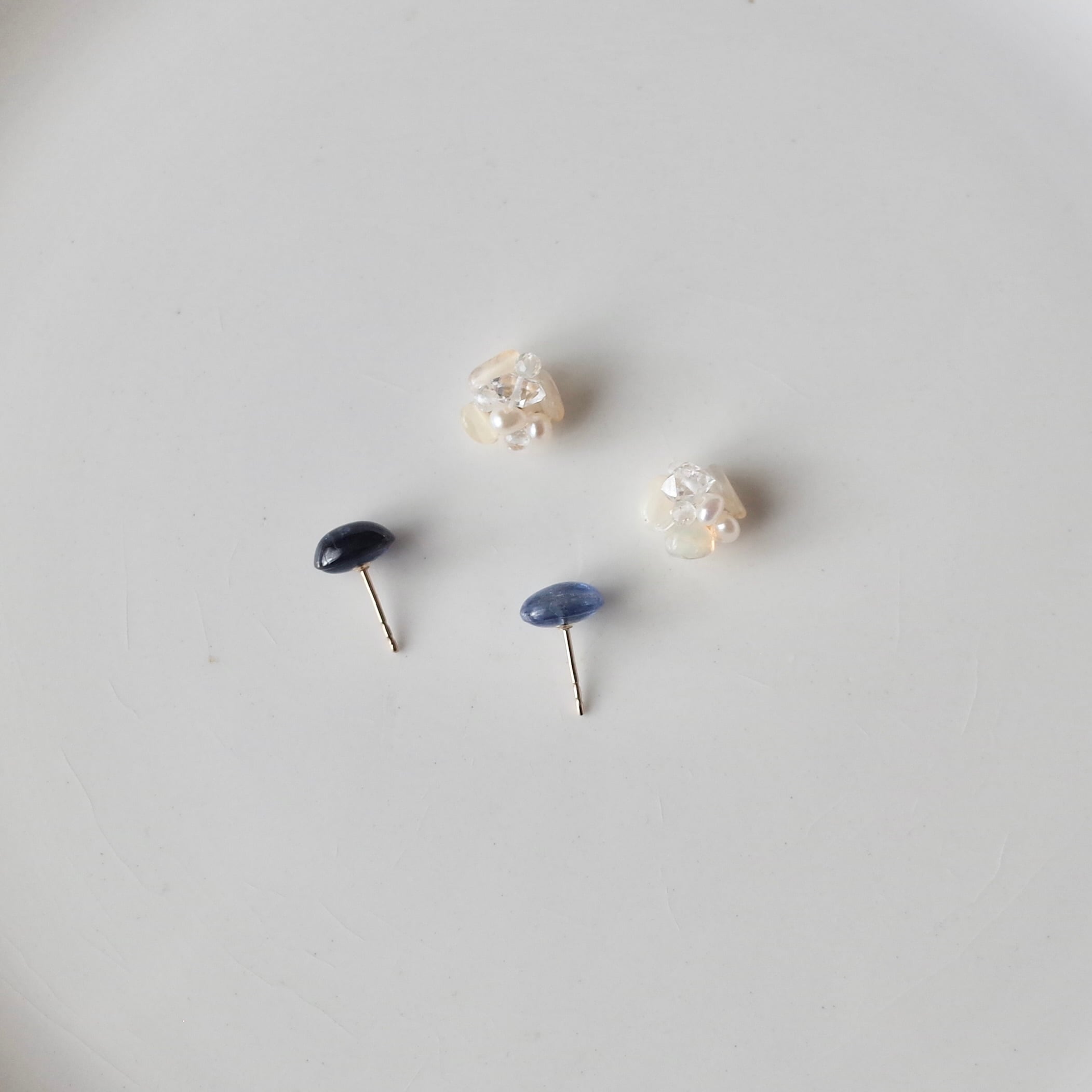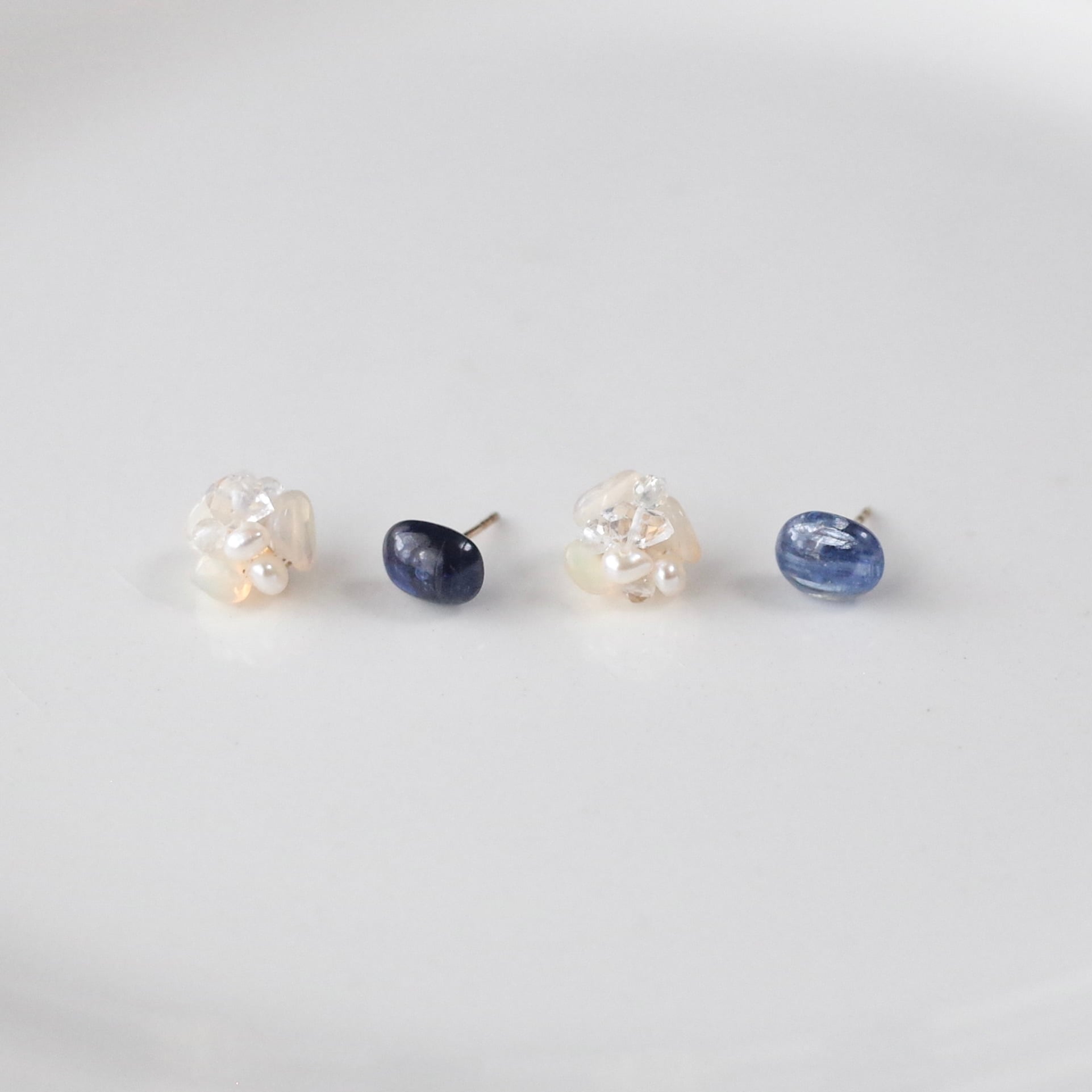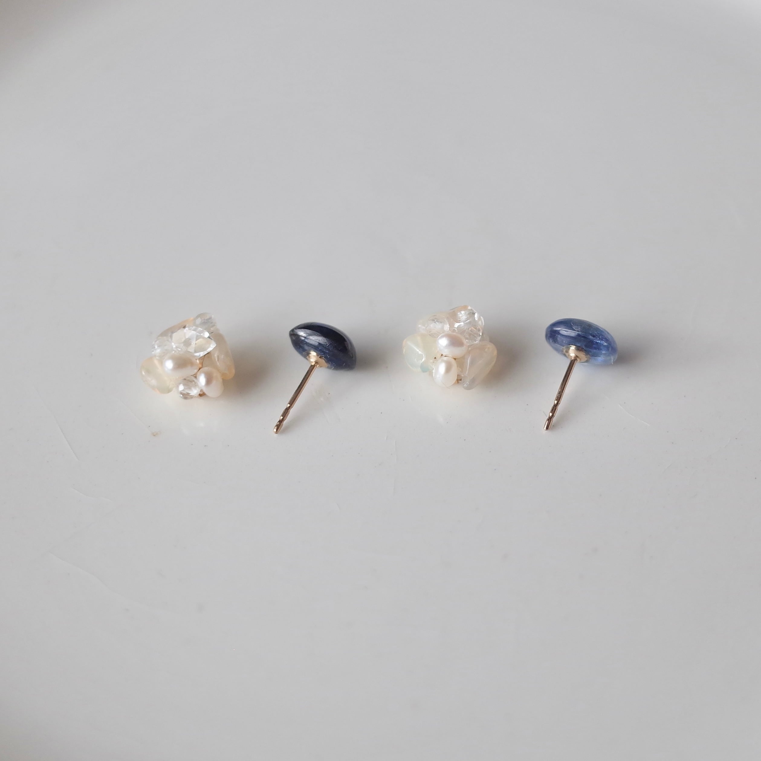 ふぞろい天然石ピアス / カイヤナイト / オパールとハーキマーダイヤモンドキャッチ / 14kgf