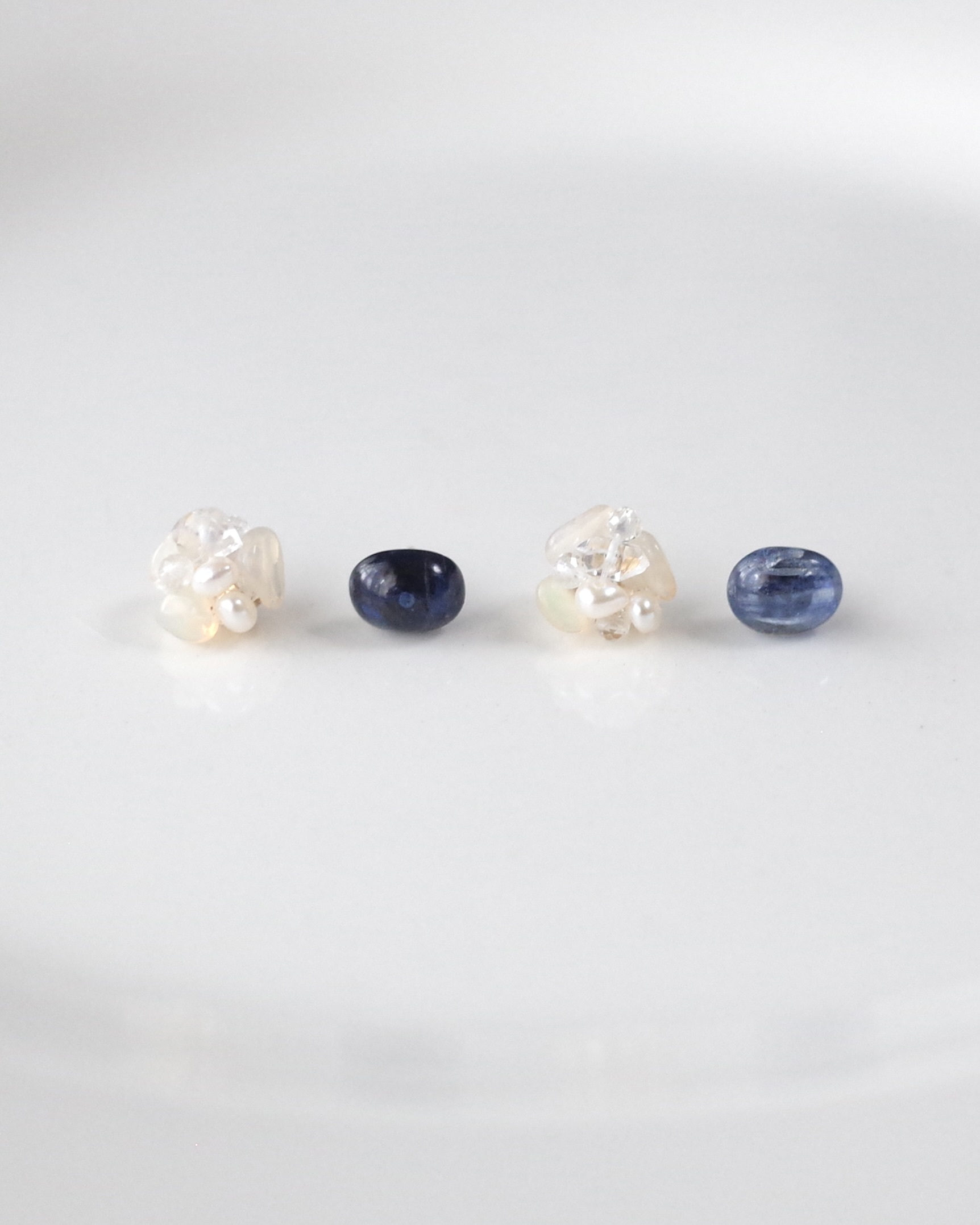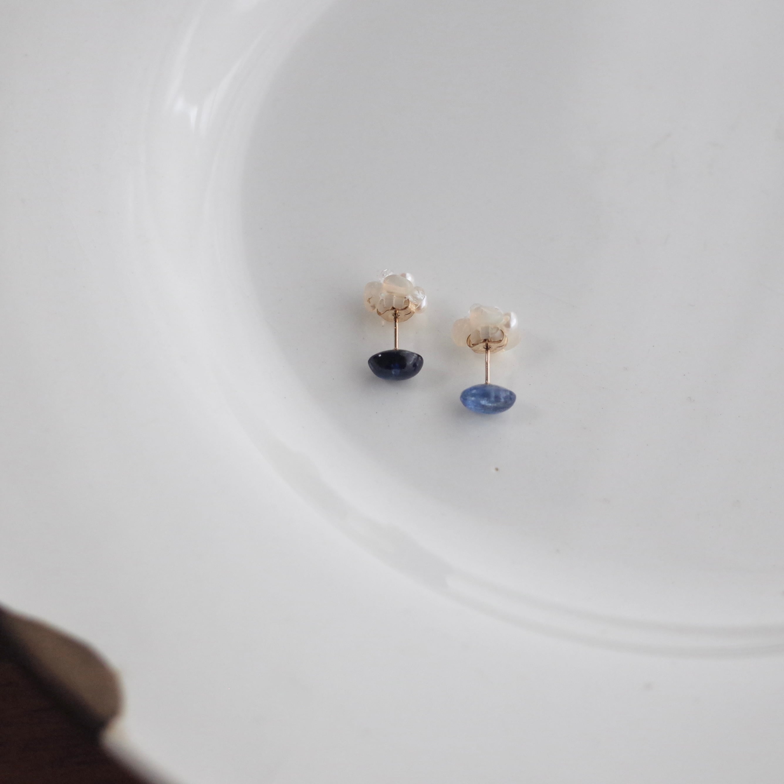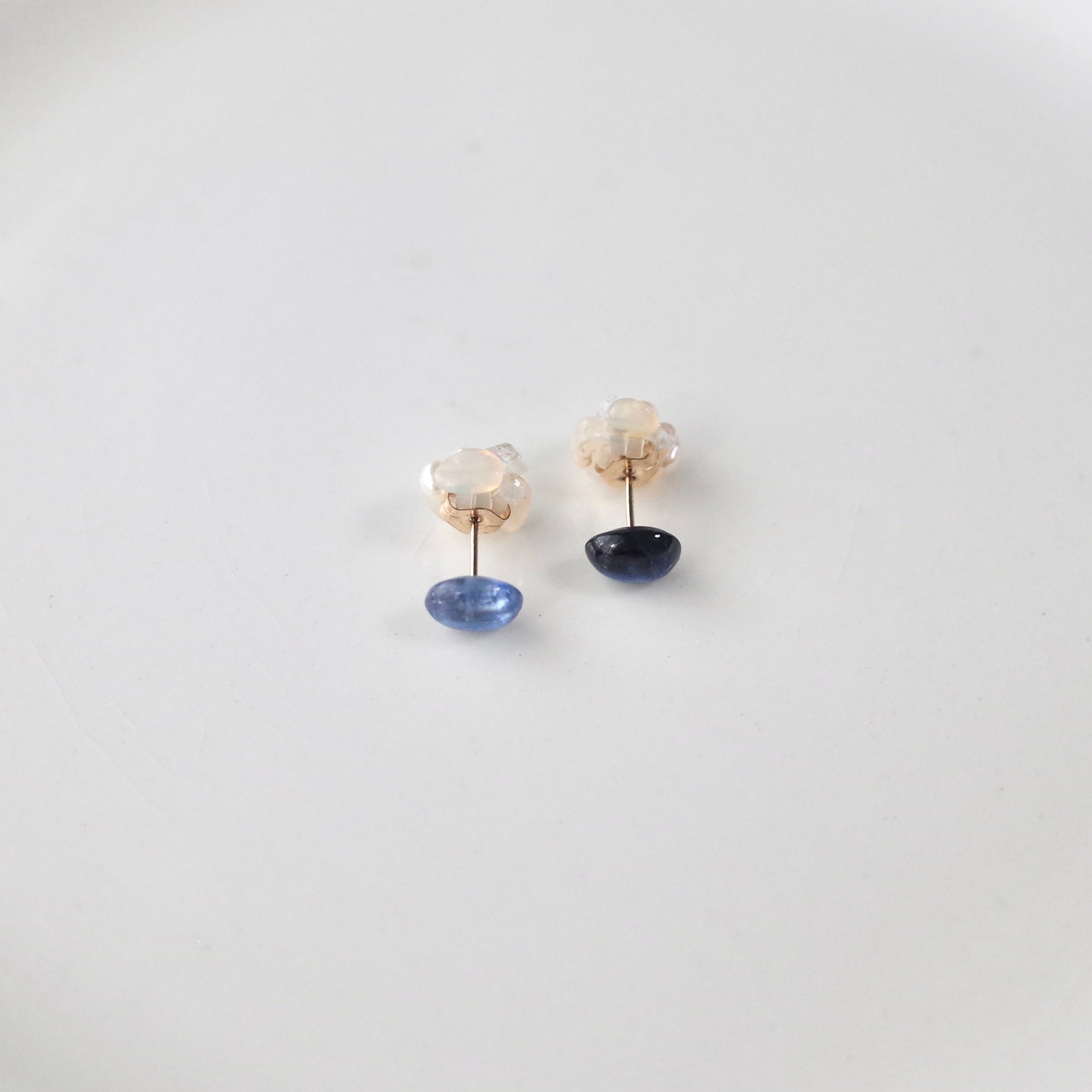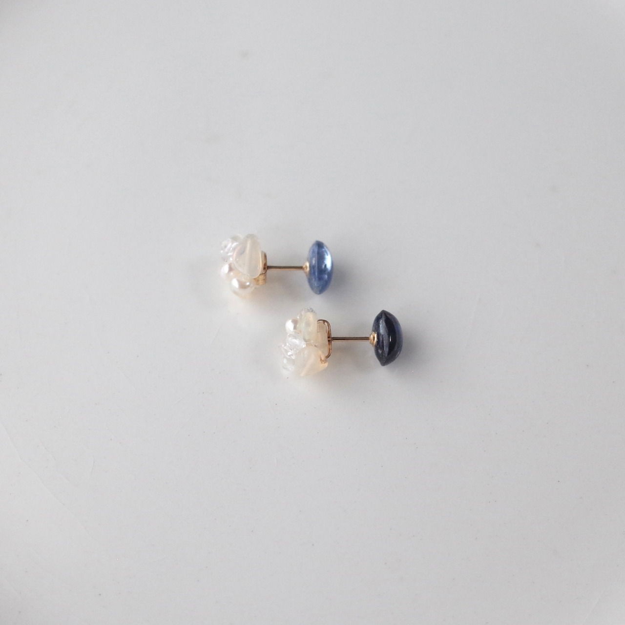 ふぞろい天然石ピアス / カイヤナイト / オパールとハーキマーダイヤモンドキャッチ / 14kgf