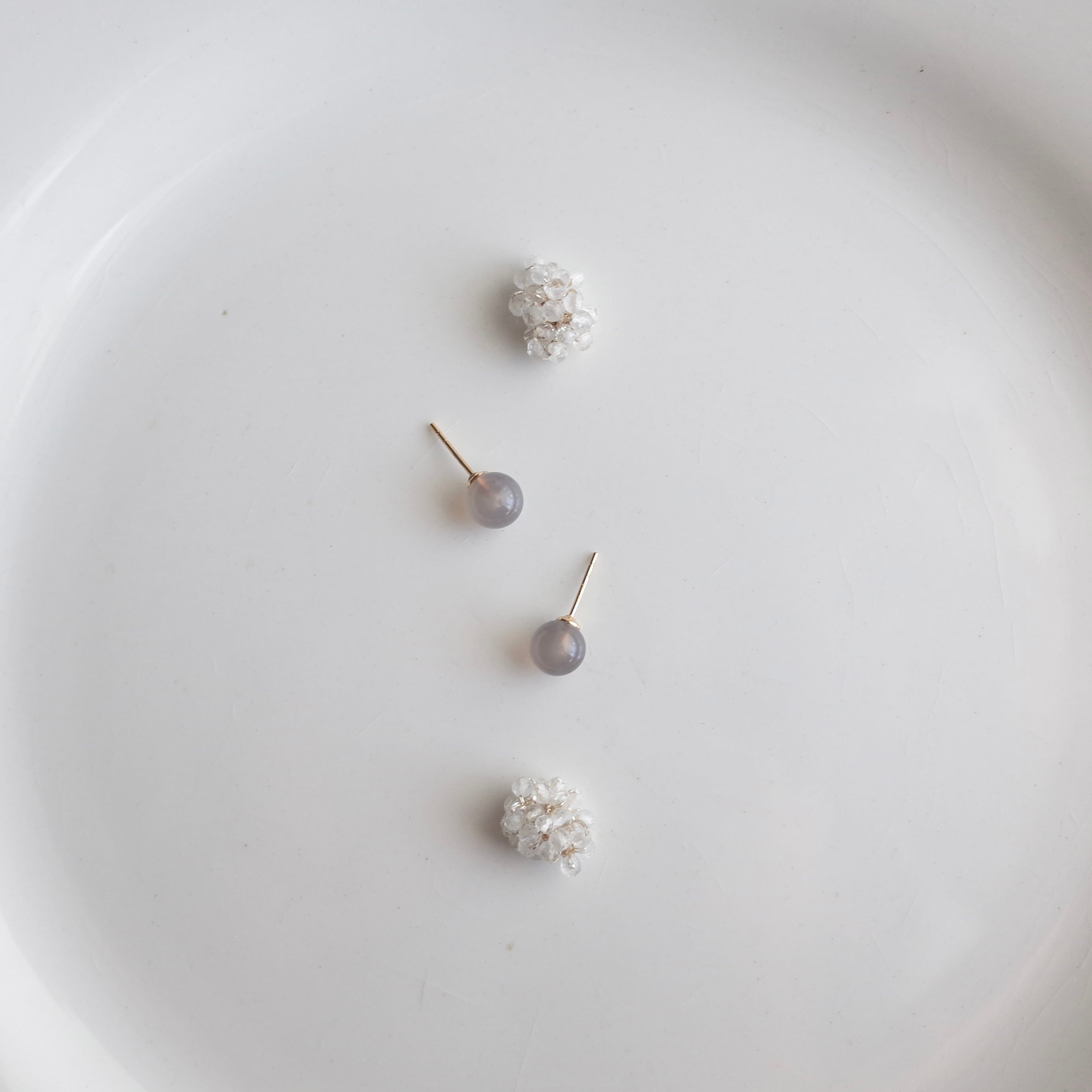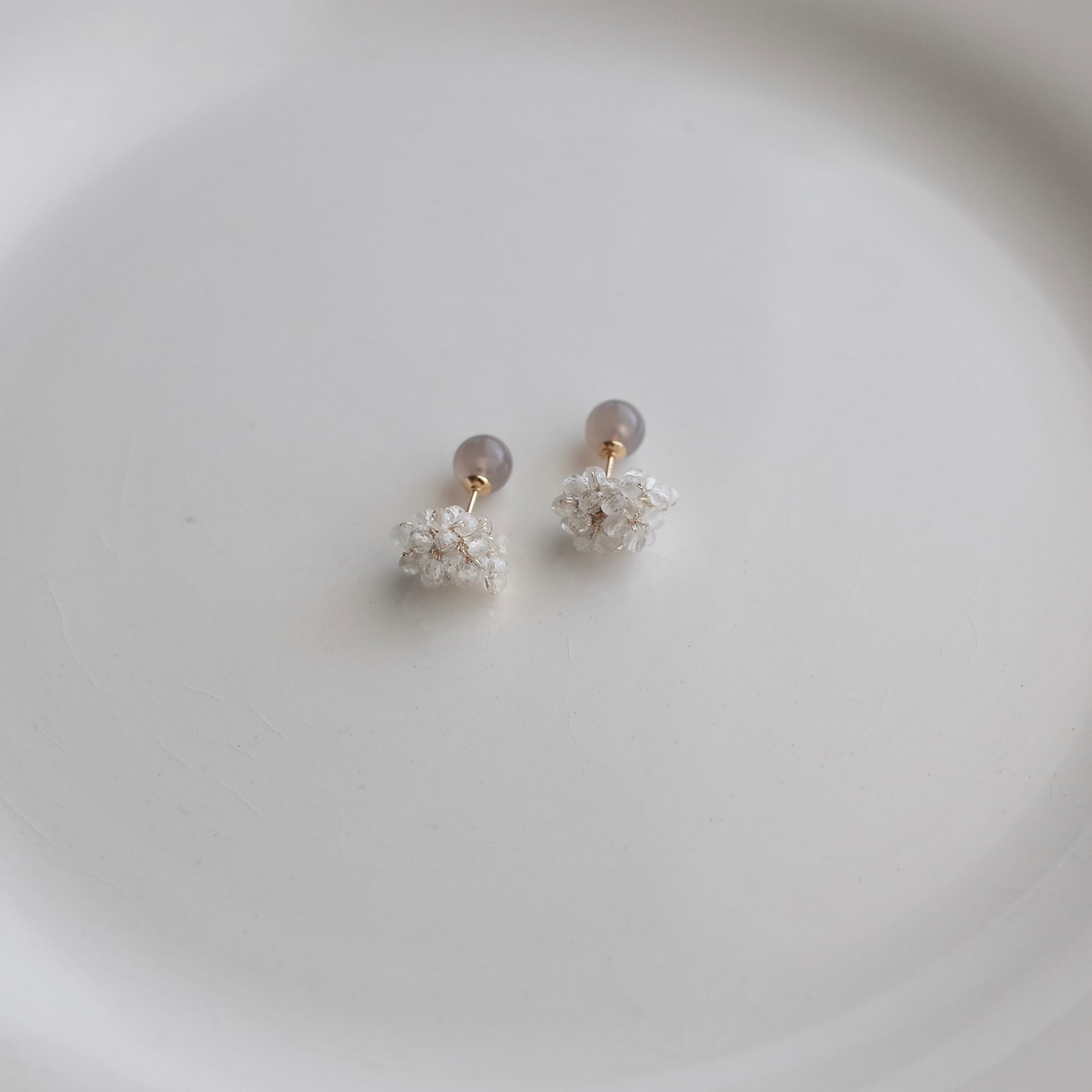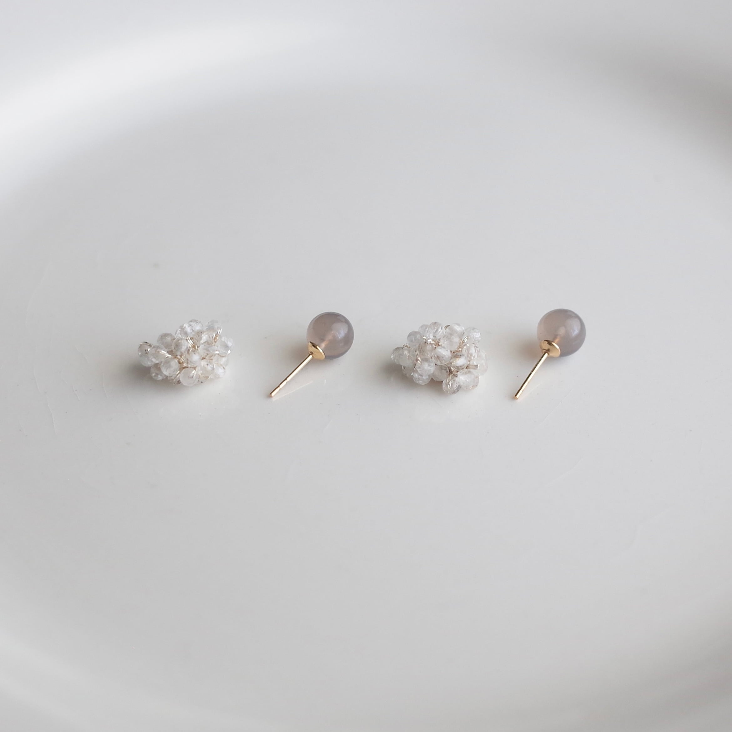 ふぞろい天然石ピアス / グレーオニキス / ホワイトトパーズキャッチ / 14kgf