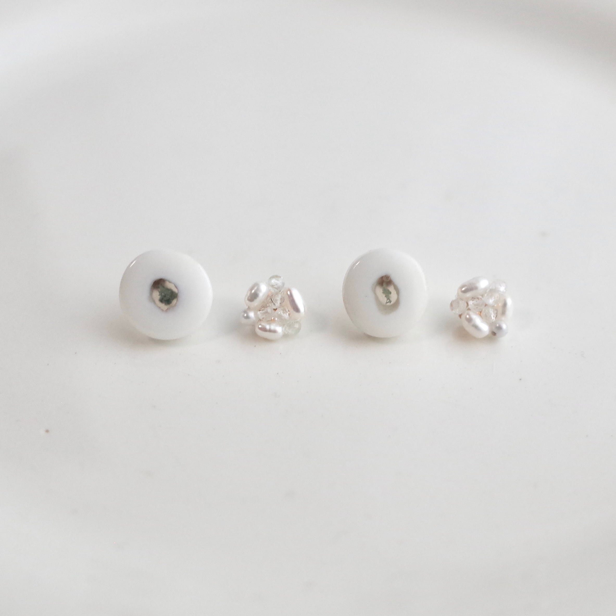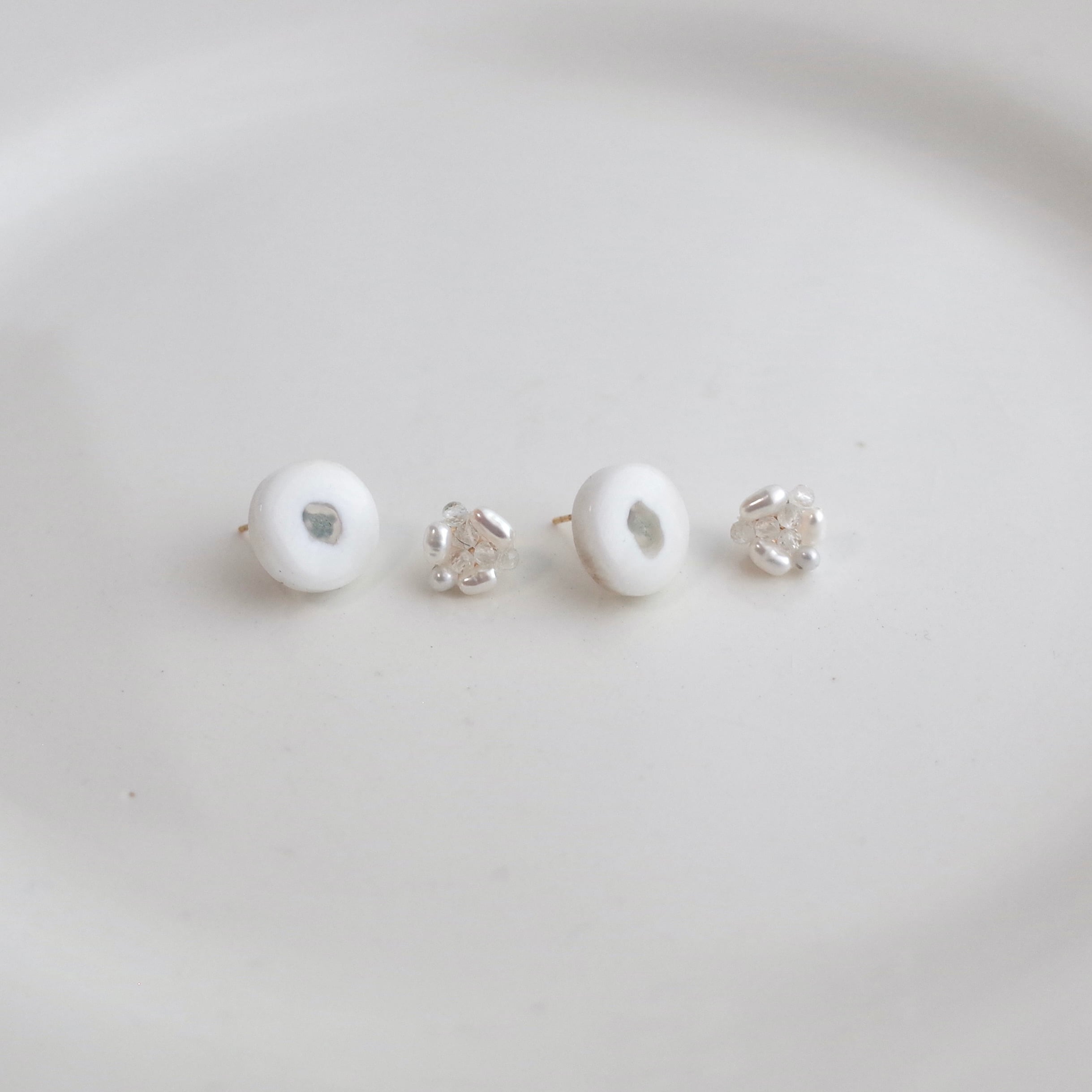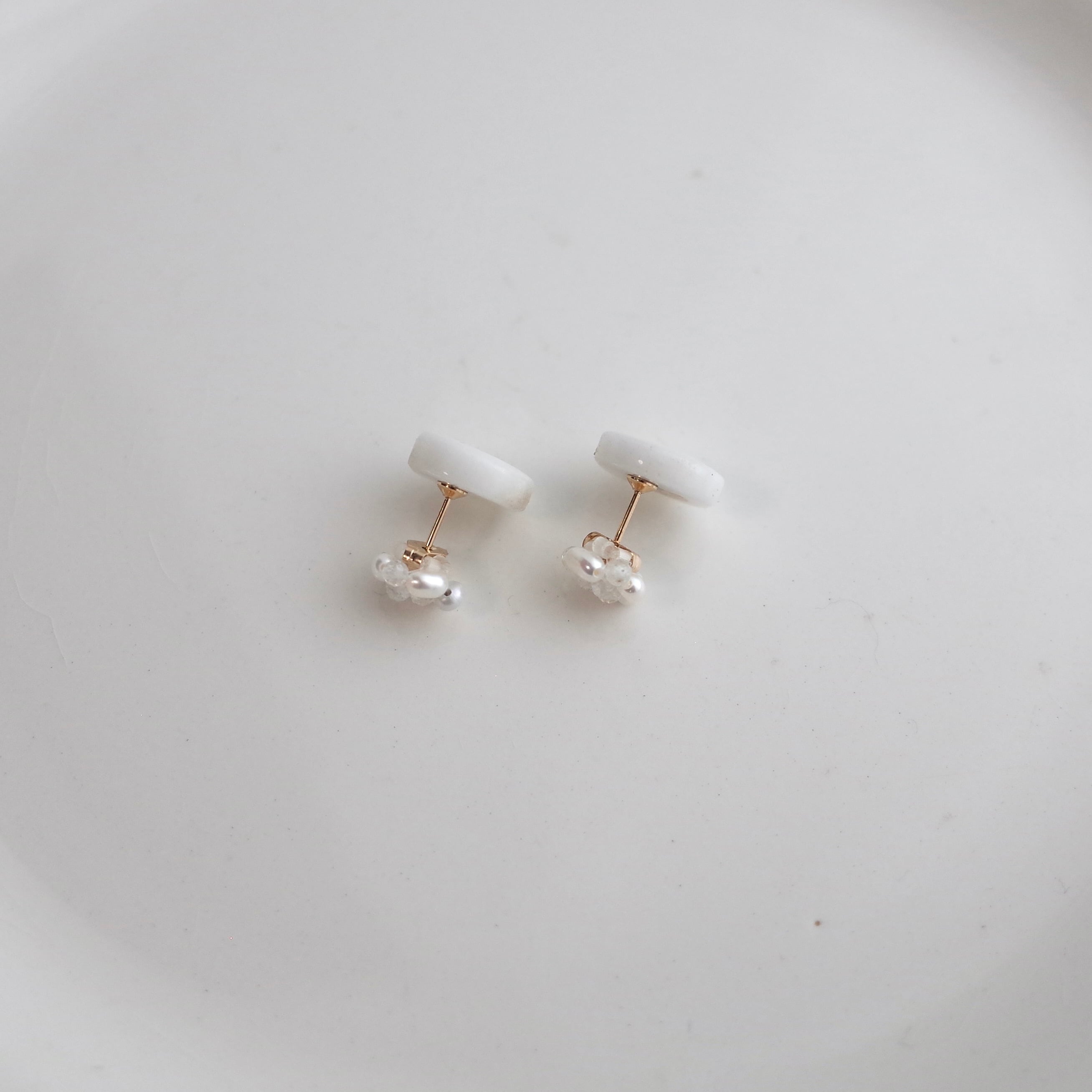 ふぞろい天然石ピアス / ソーラークォーツ / ホワイトパールキャッチ / 14kgf