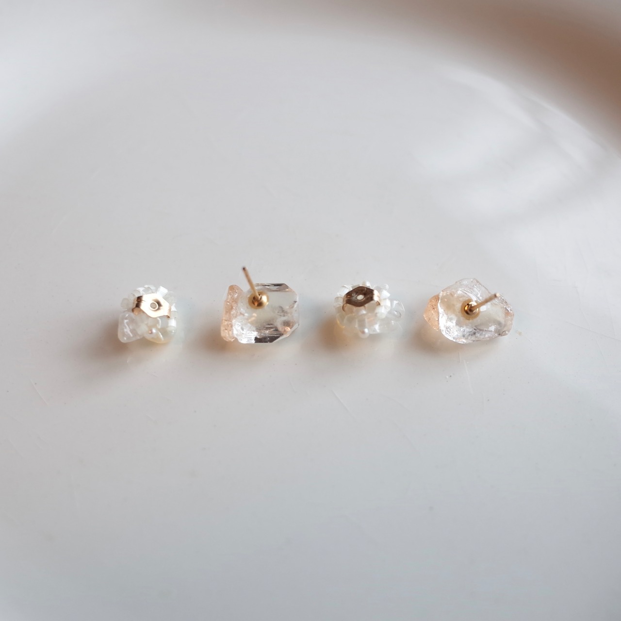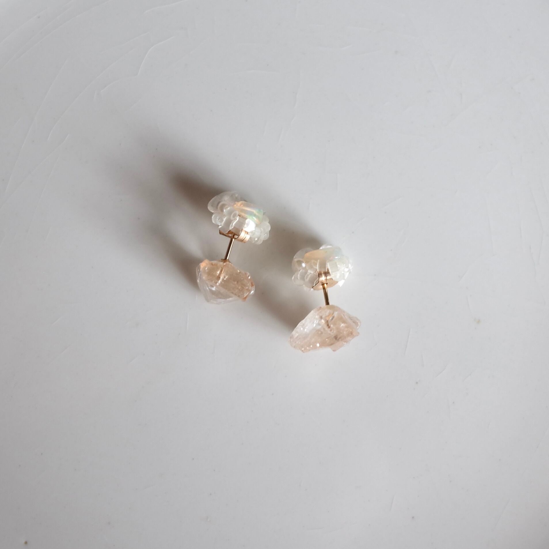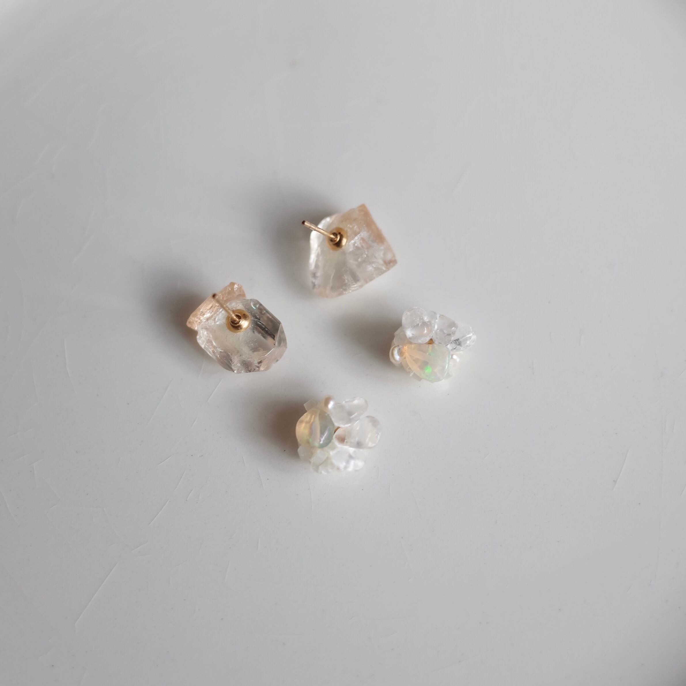 ふぞろい天然石ピアス / ホワイトトパーズ・インペリアルトパーズ / オパールキャッチ / 14kgf