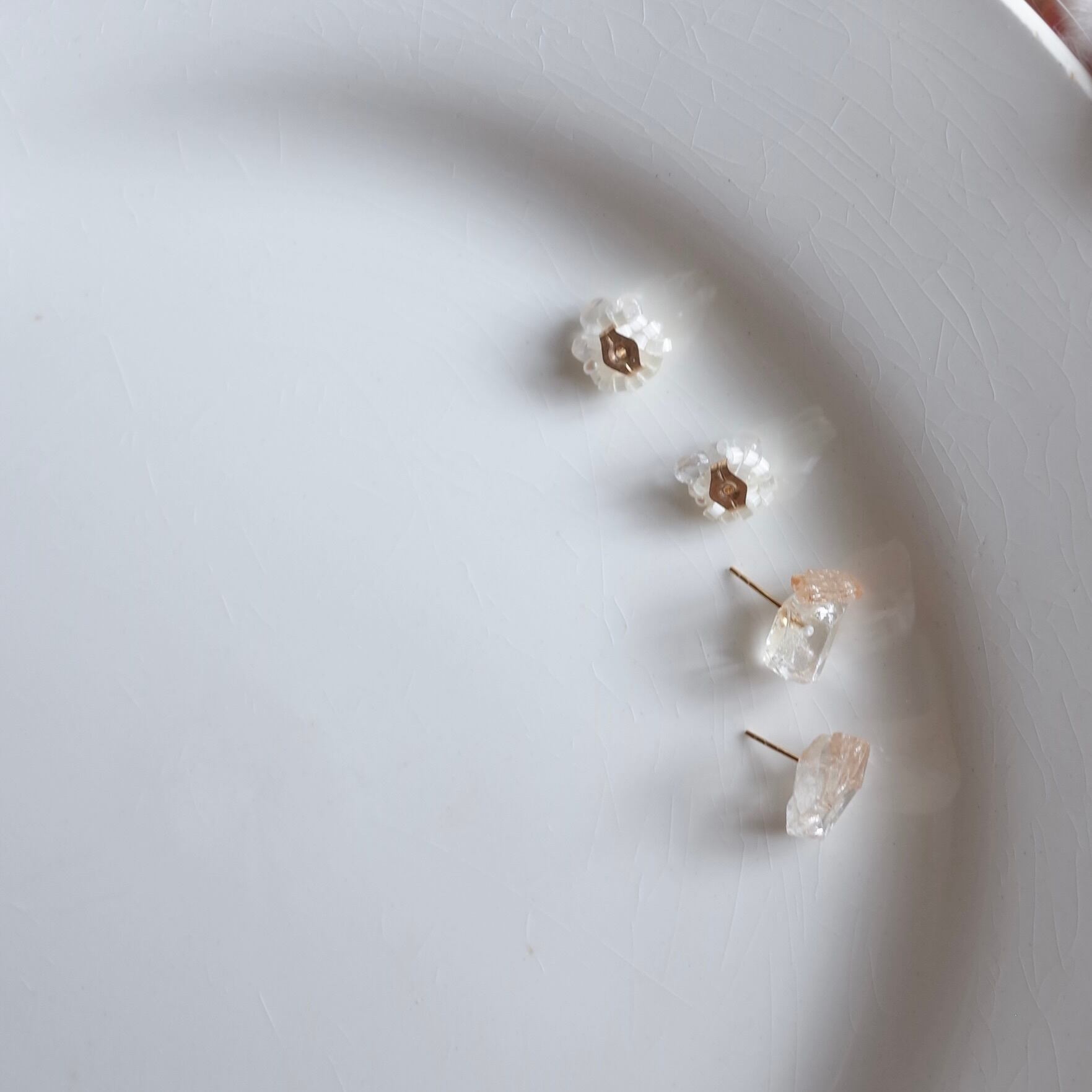 ホワイト × クリア × ピンクベージュ × クリアホワイト(オパールの遊色効果にてイエローやオレンジ・グリーンが浮かびます)