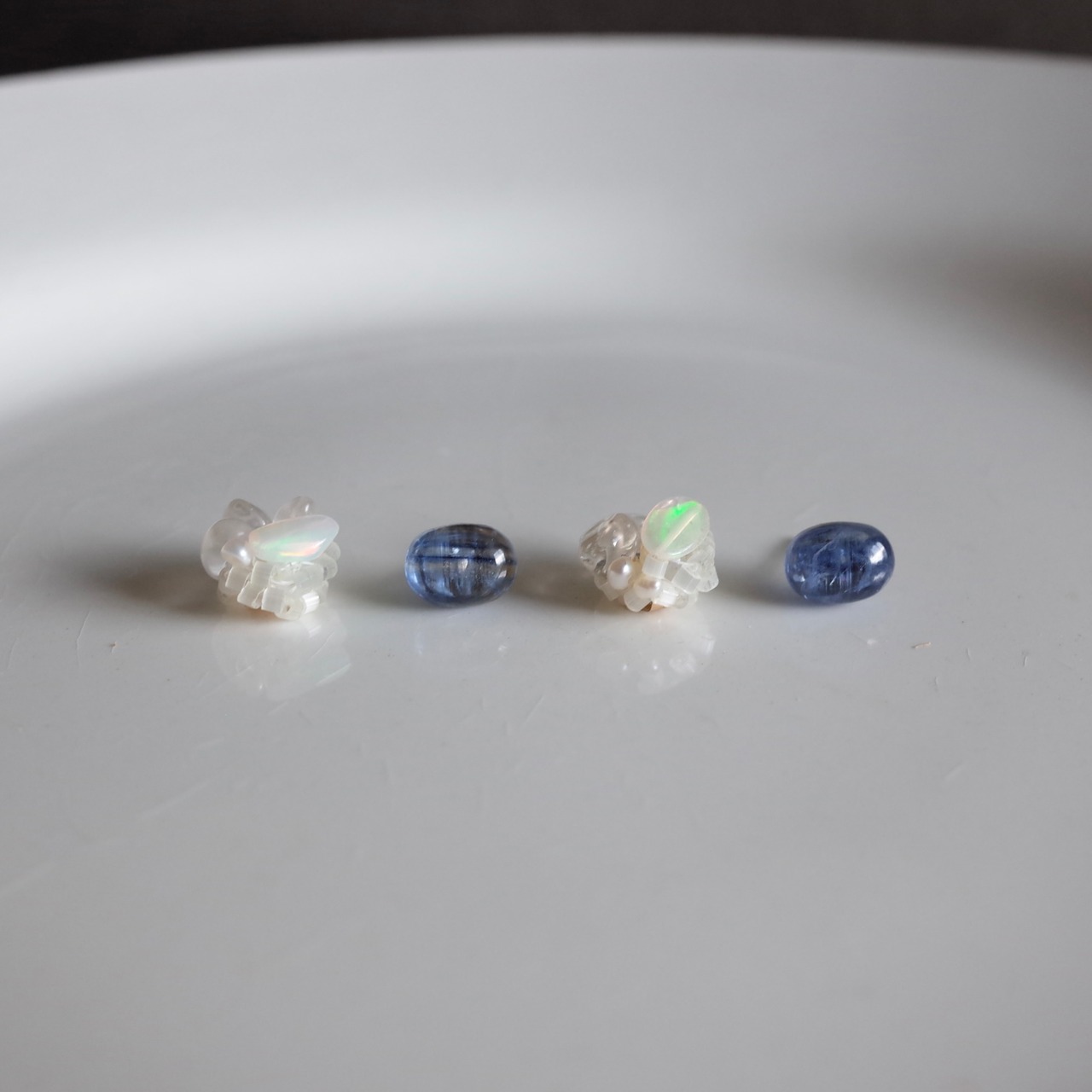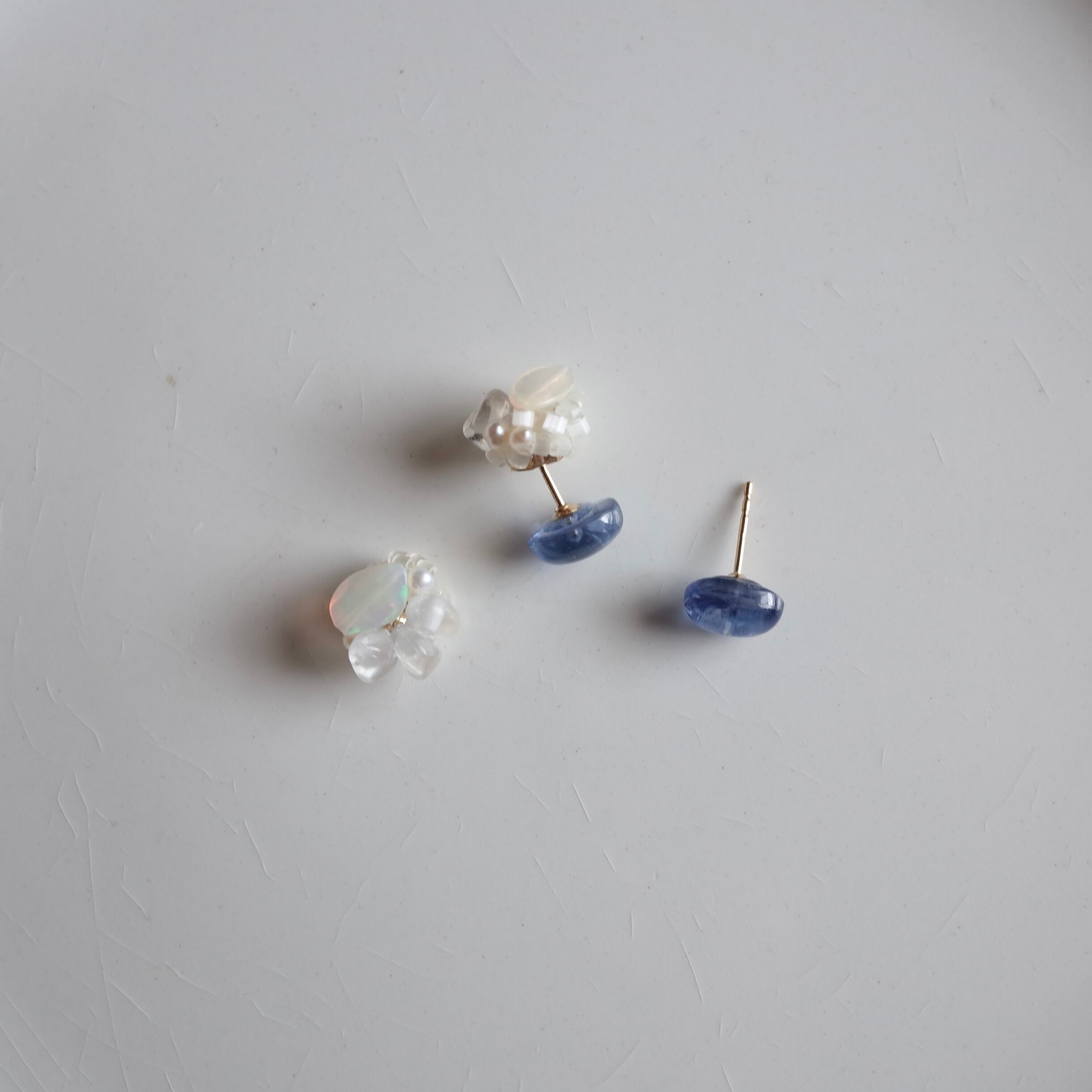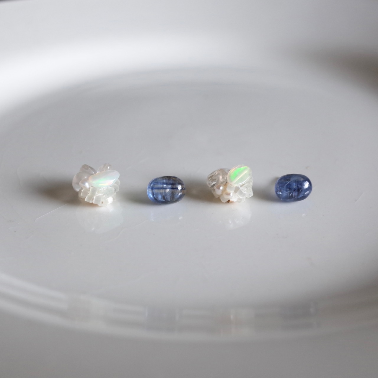 ふぞろい天然石ピアス / カイヤナイト / オパールキャッチ / 14kgf