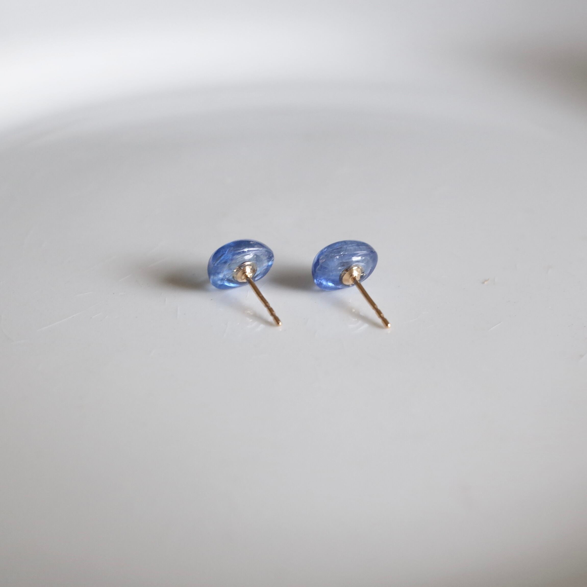 透明感のある深い海のようなブルーをしたネパール産天然カイヤナイトのピアス。