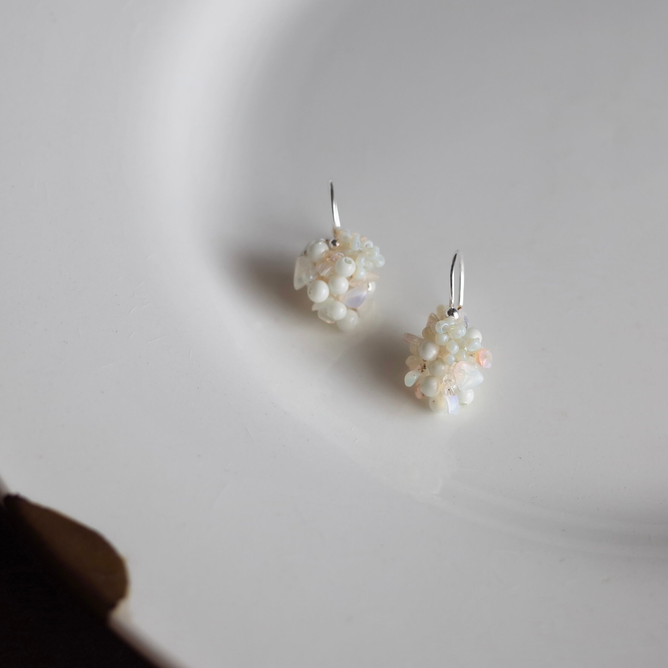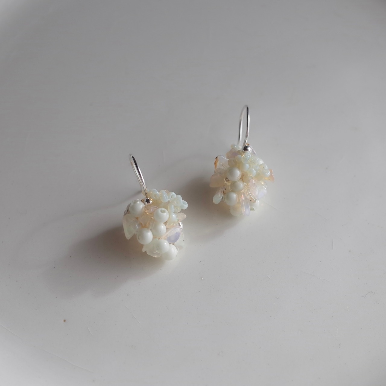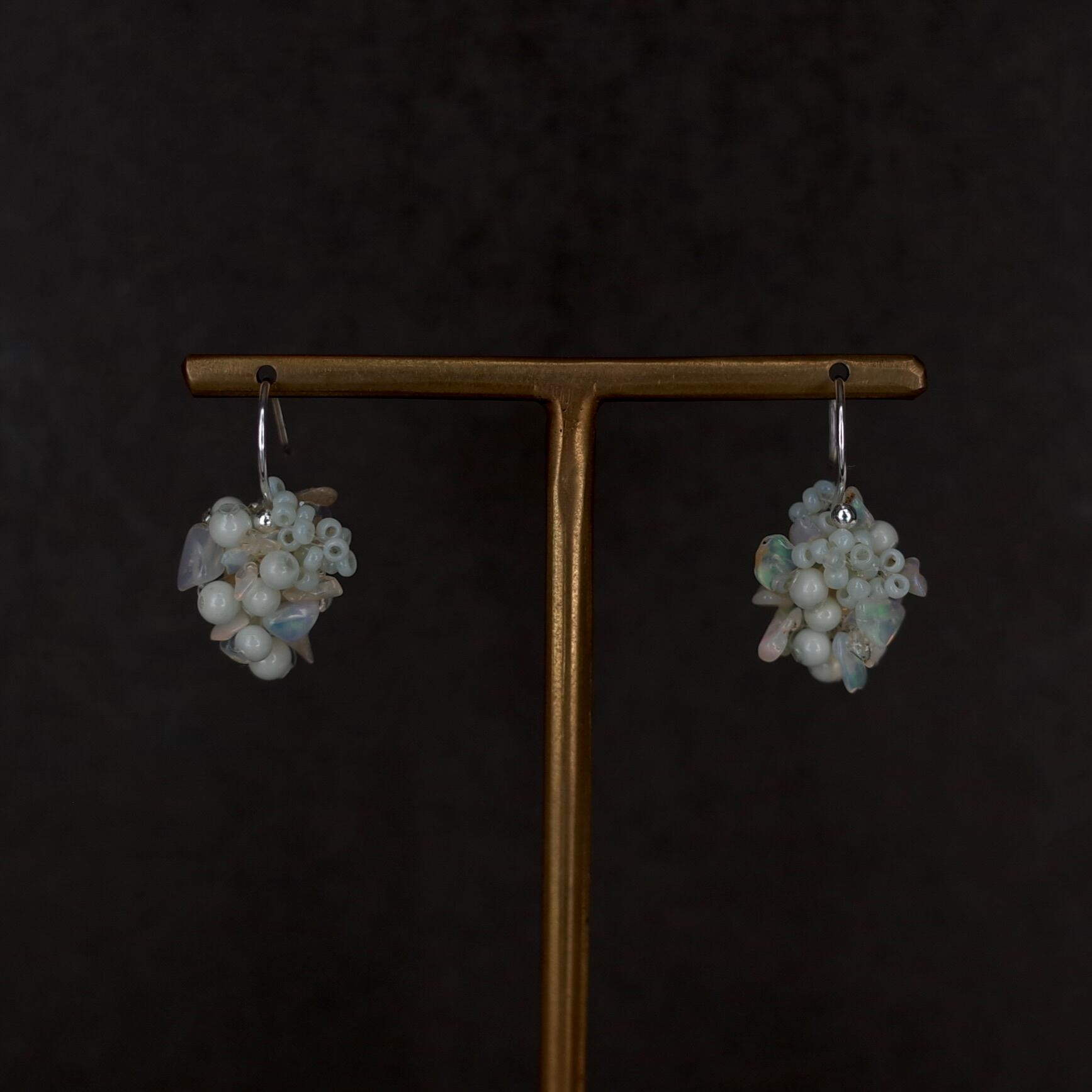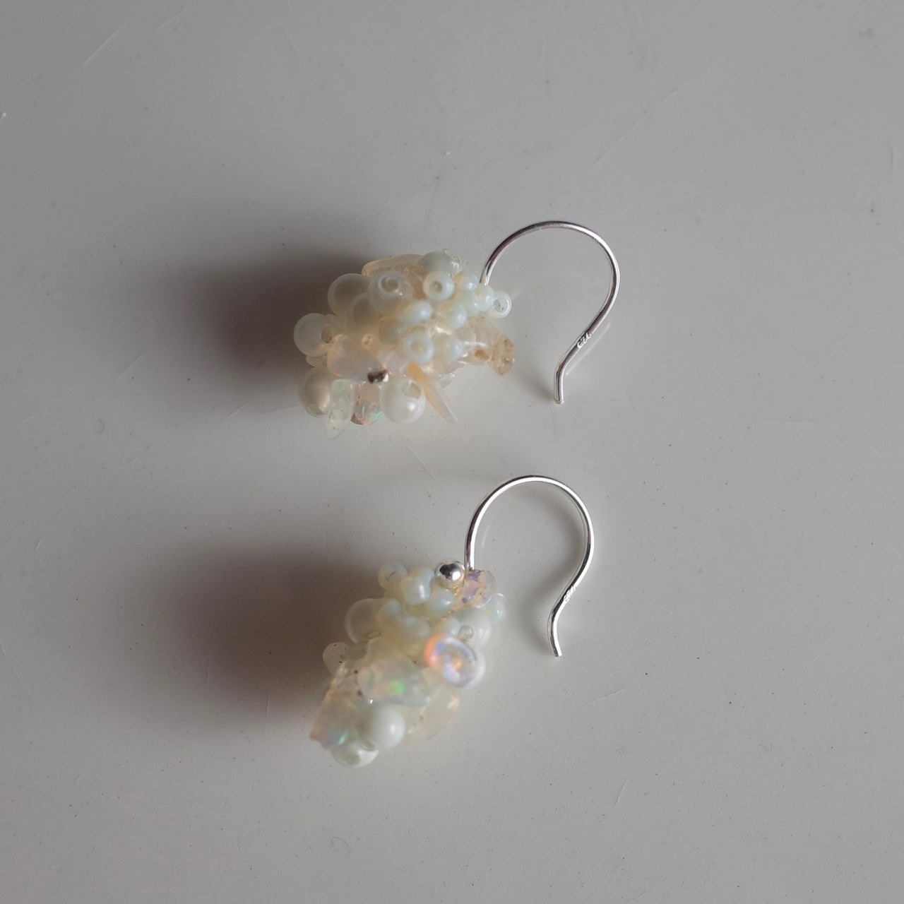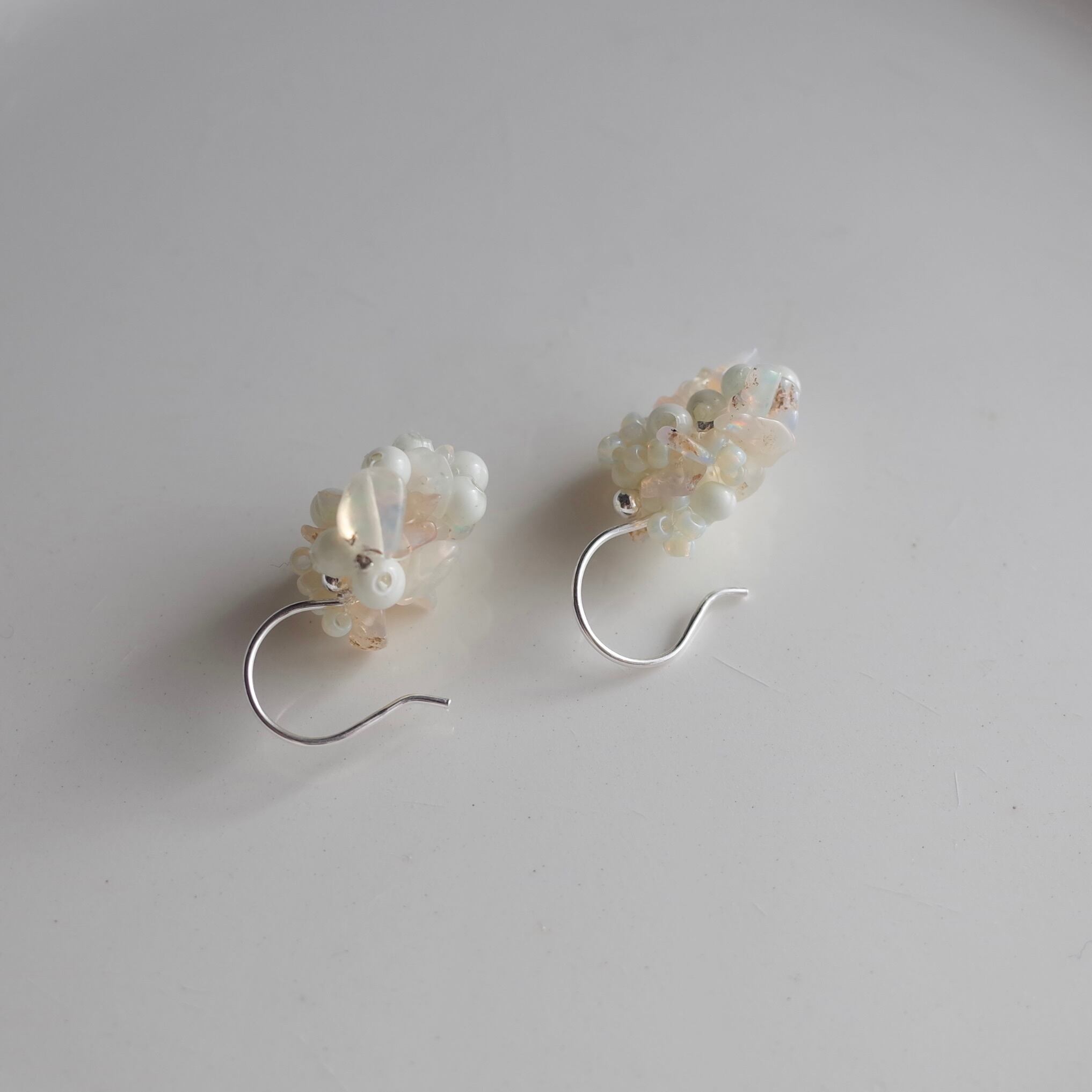 シンプルなフックピアスではありますが、ひとつひとつ形の違うオパールが集まり、優しく光を集めます。