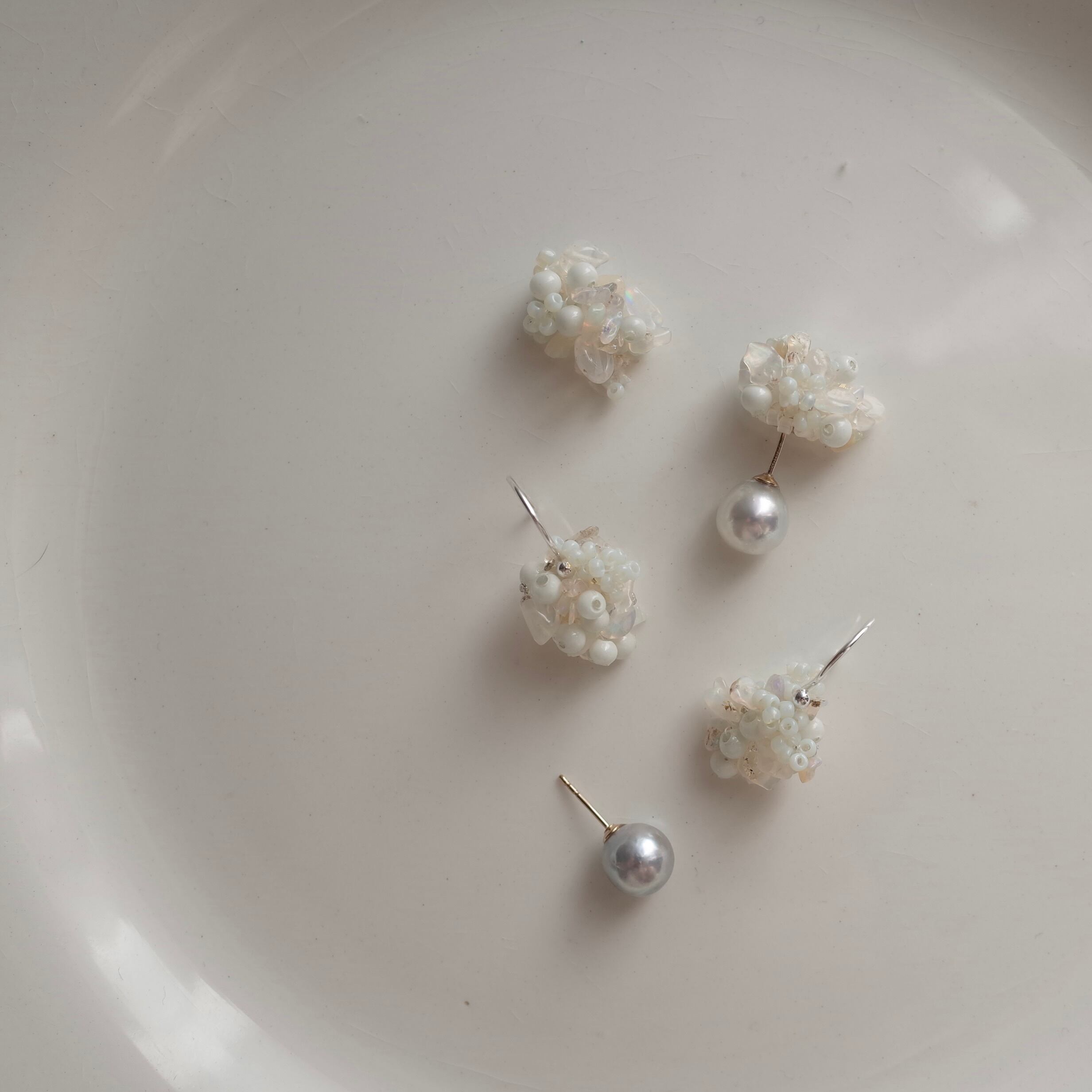 キャッチは編んで作成しているため、キャッチの穴以外にピアスの芯が入る場合があります。