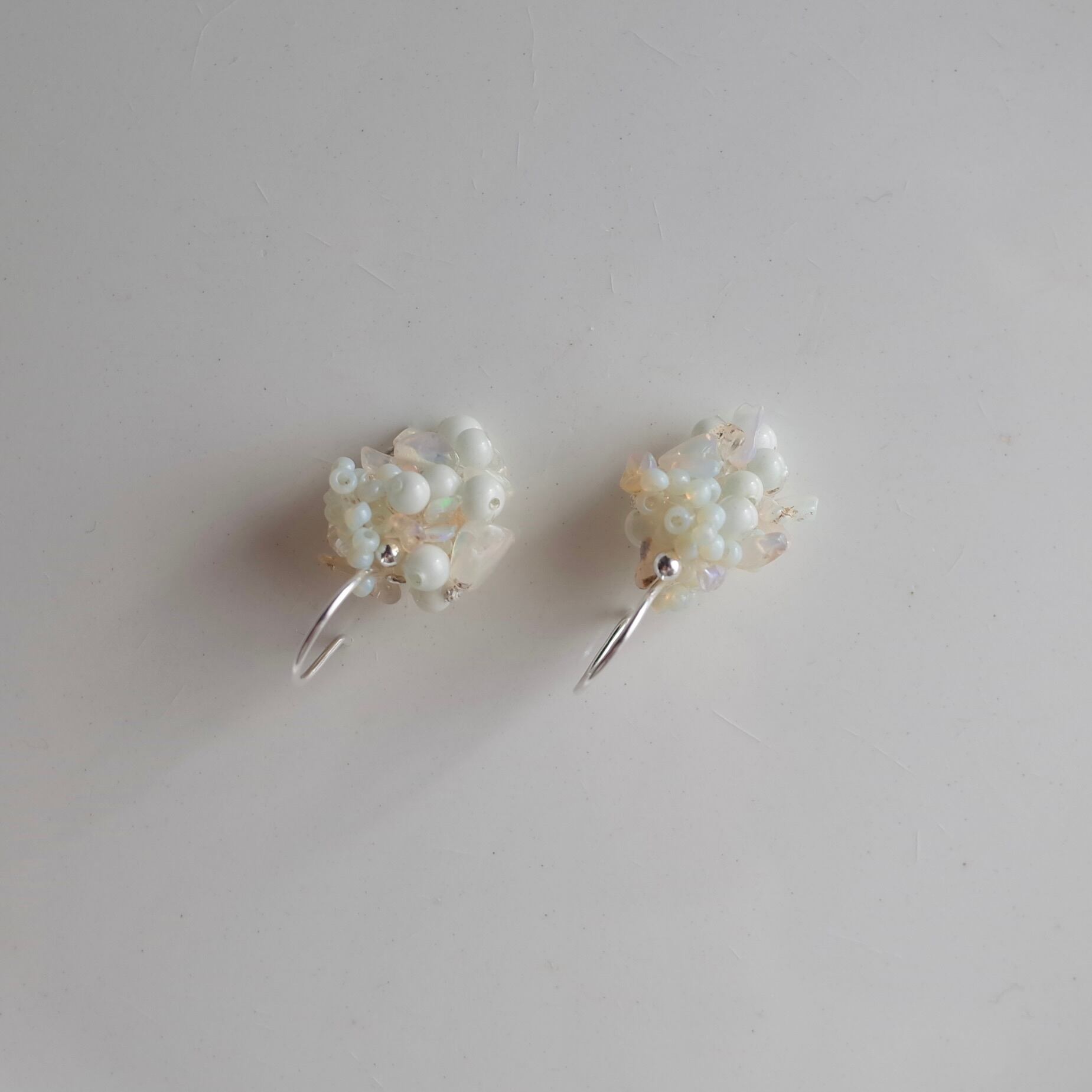ふぞろい彩霧フックピアス / オパール / ヴィンテージスフレビーズ / SILVER925