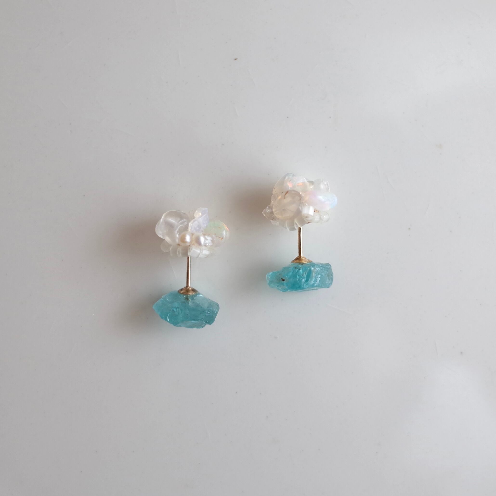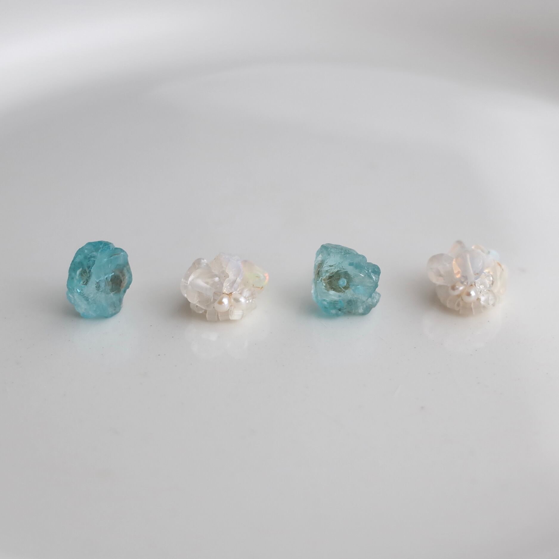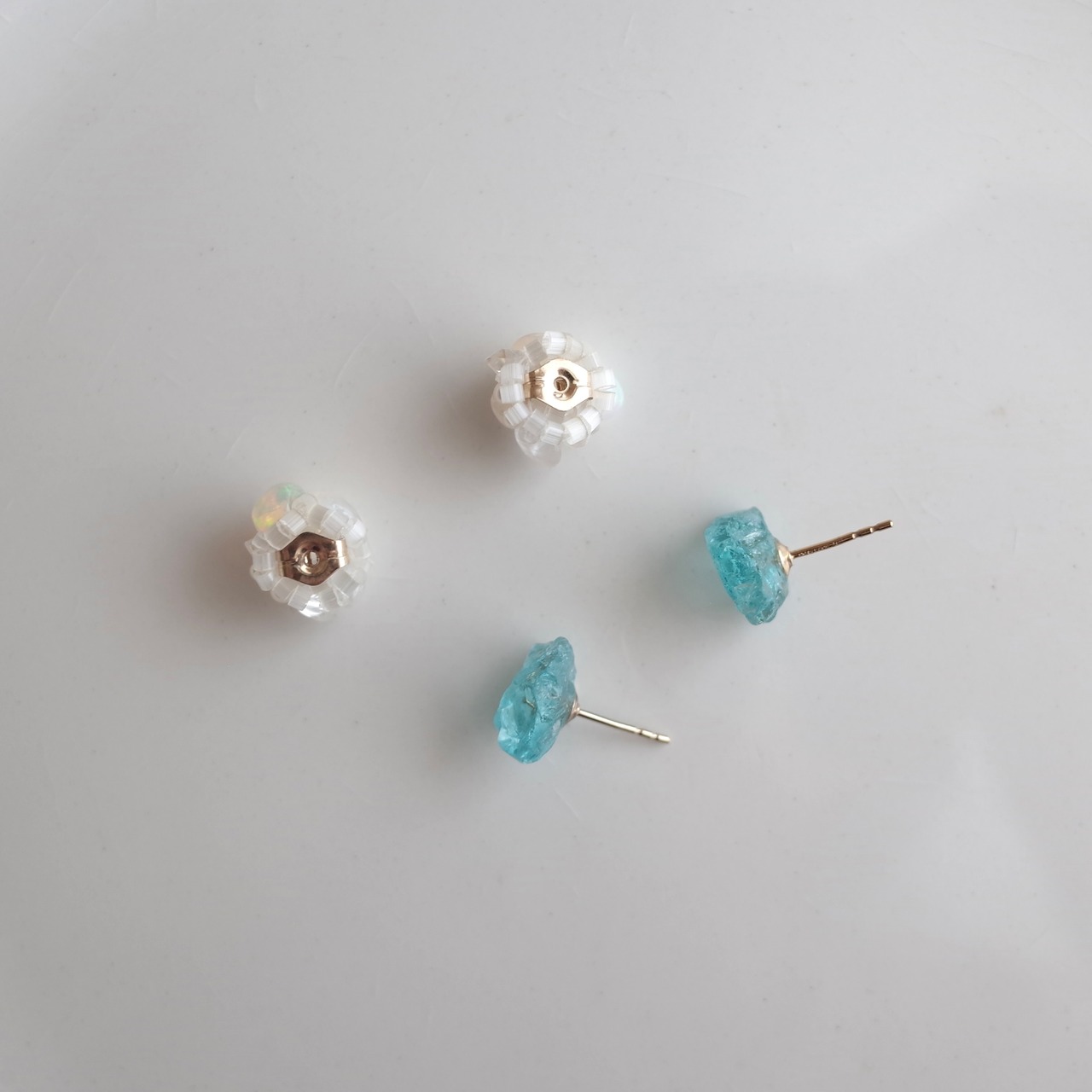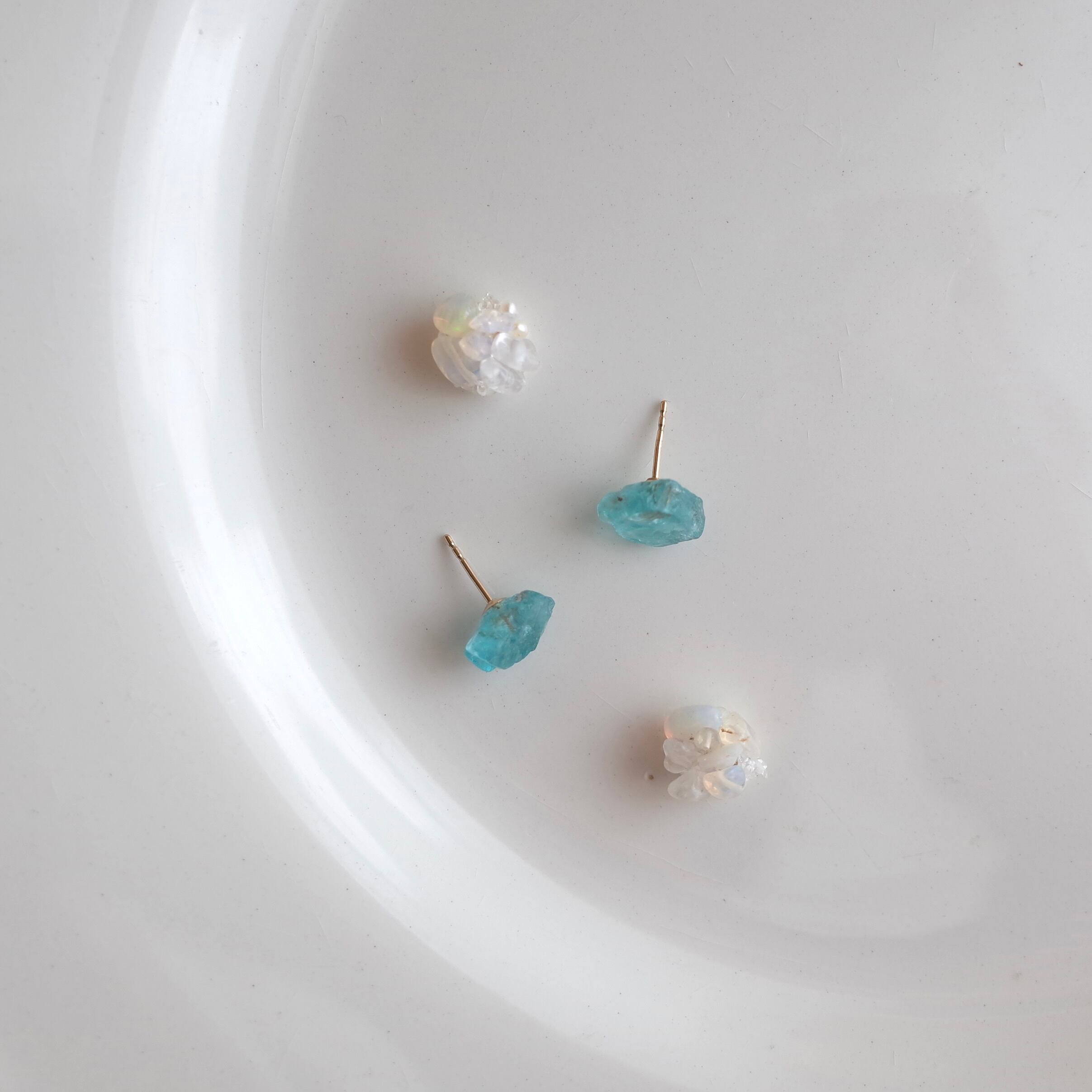 ふぞろい天然石ピアス / ブルーアパタイト / オパールキャッチ / 14kgf