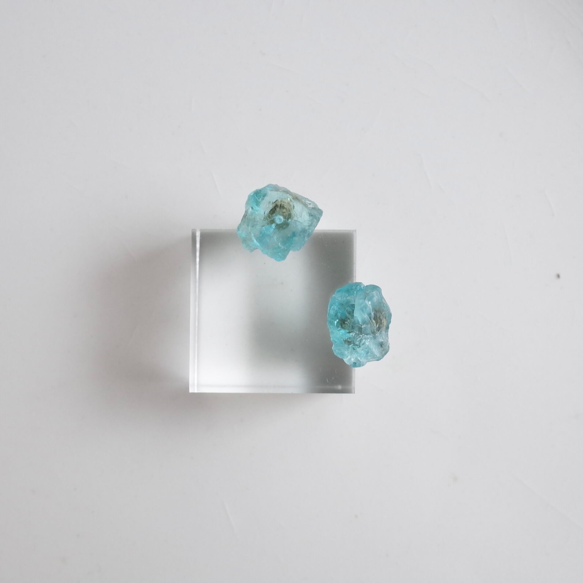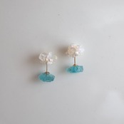 鮮やかな青色をしたアパタイトの原石をピアスに仕上げました。