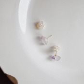 あくまで天然石の持つ個性が際立つデザインであるため、左右のピアスで形の異なる石を使用しています。