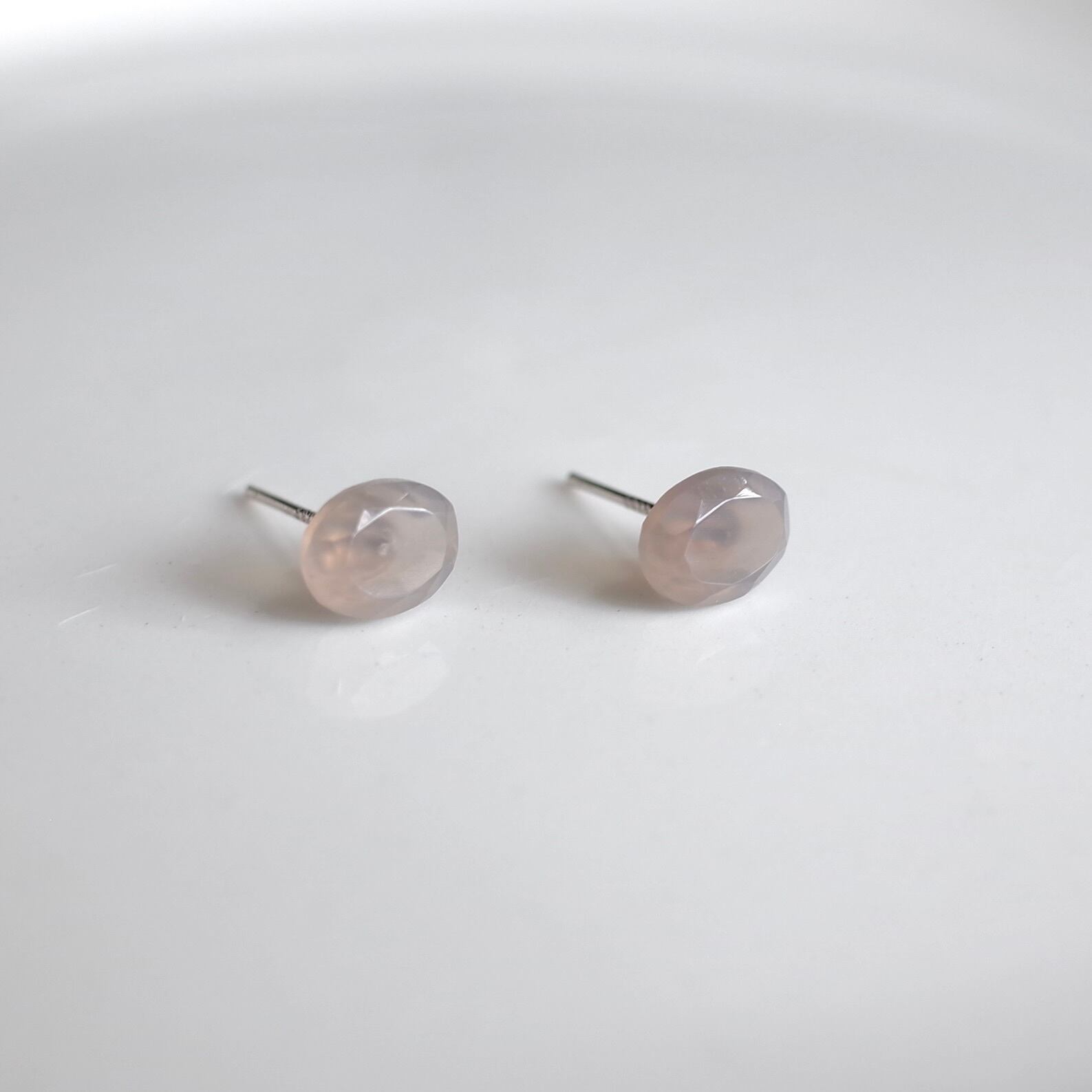オーバル形のグレーオニキスをピアスに仕上げました。