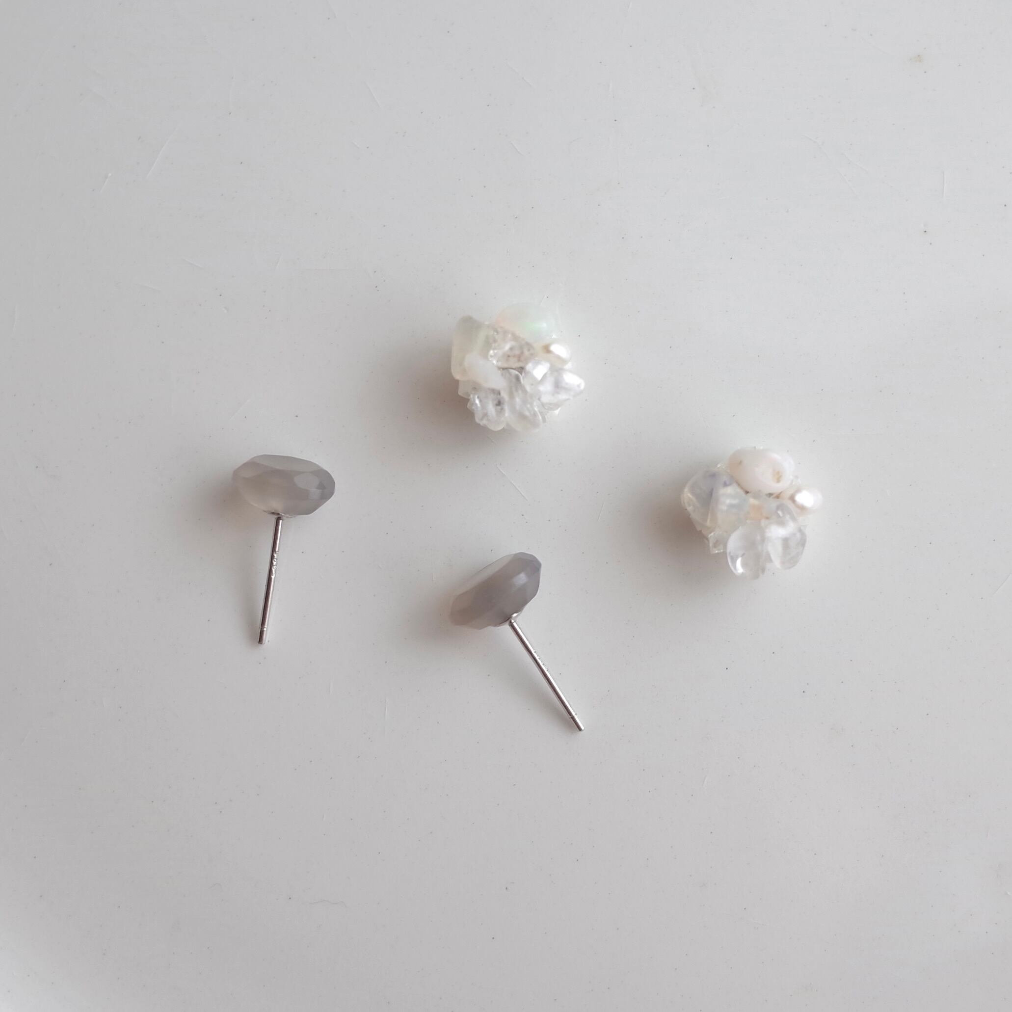 ふぞろい天然石ピアス / グレーオニキス / オパールキャッチ / SILVER925