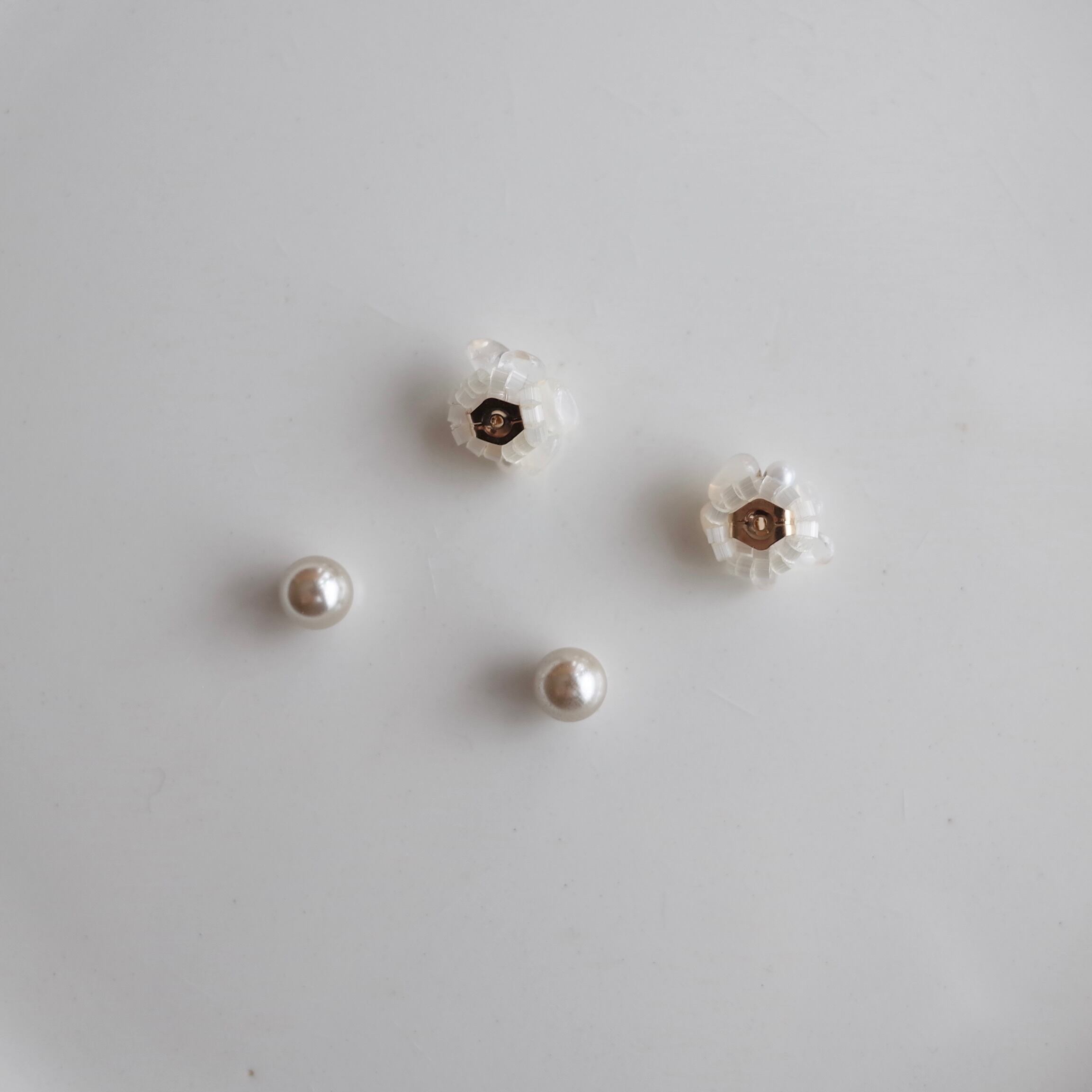 グレーがかったパールのキャッチとオパールキャッチでご用意しました。