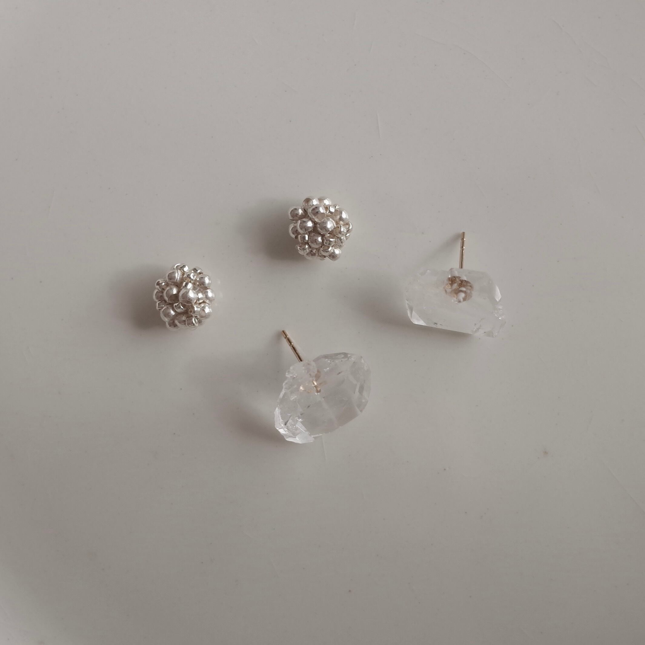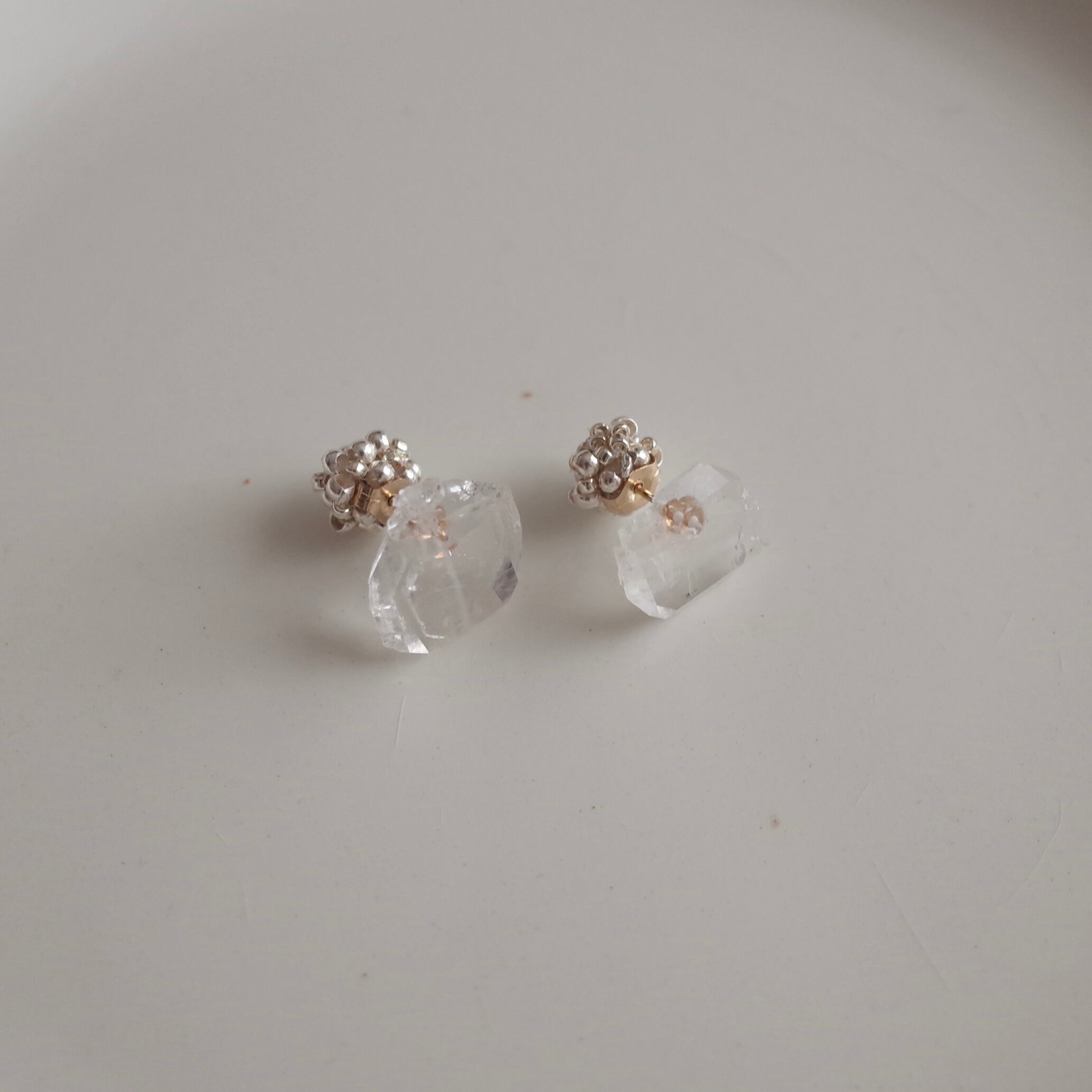 ドイツ語で『糸』を意味するファーデンクォーツの原石をピアスに仕上げました。