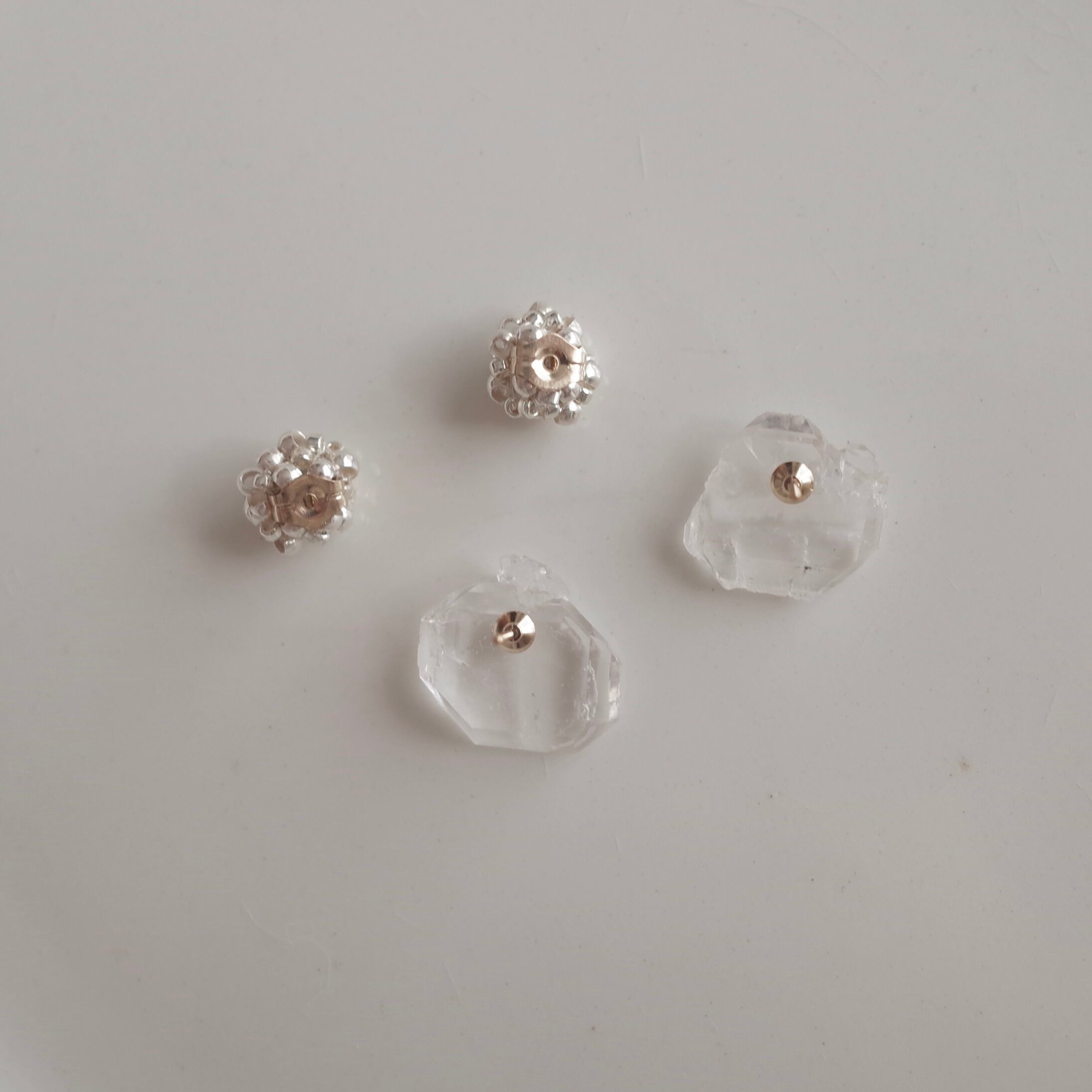 キャッチは編んで作成しているため、キャッチの穴以外にピアスの芯が入る場合があります。