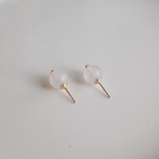 ふぞろい天然石ピアス / ホワイトアゲート / オパールとハーキマーダイヤモンドキャッチ / 14kgf
