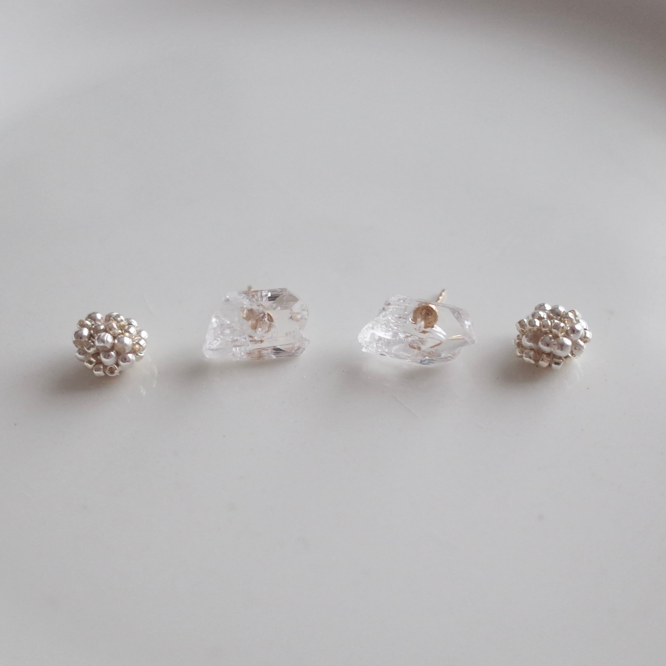 キャッチはカレンシルバーのビーズをベースに、日本製のシルバーカラービーズを組み合わせています。