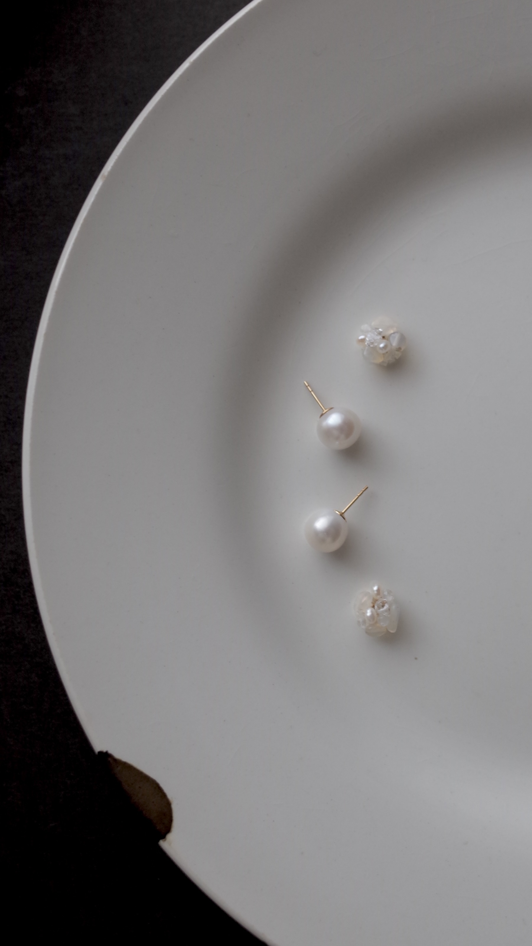左右ふぞろいの淡水パールをピアスに仕上げました。